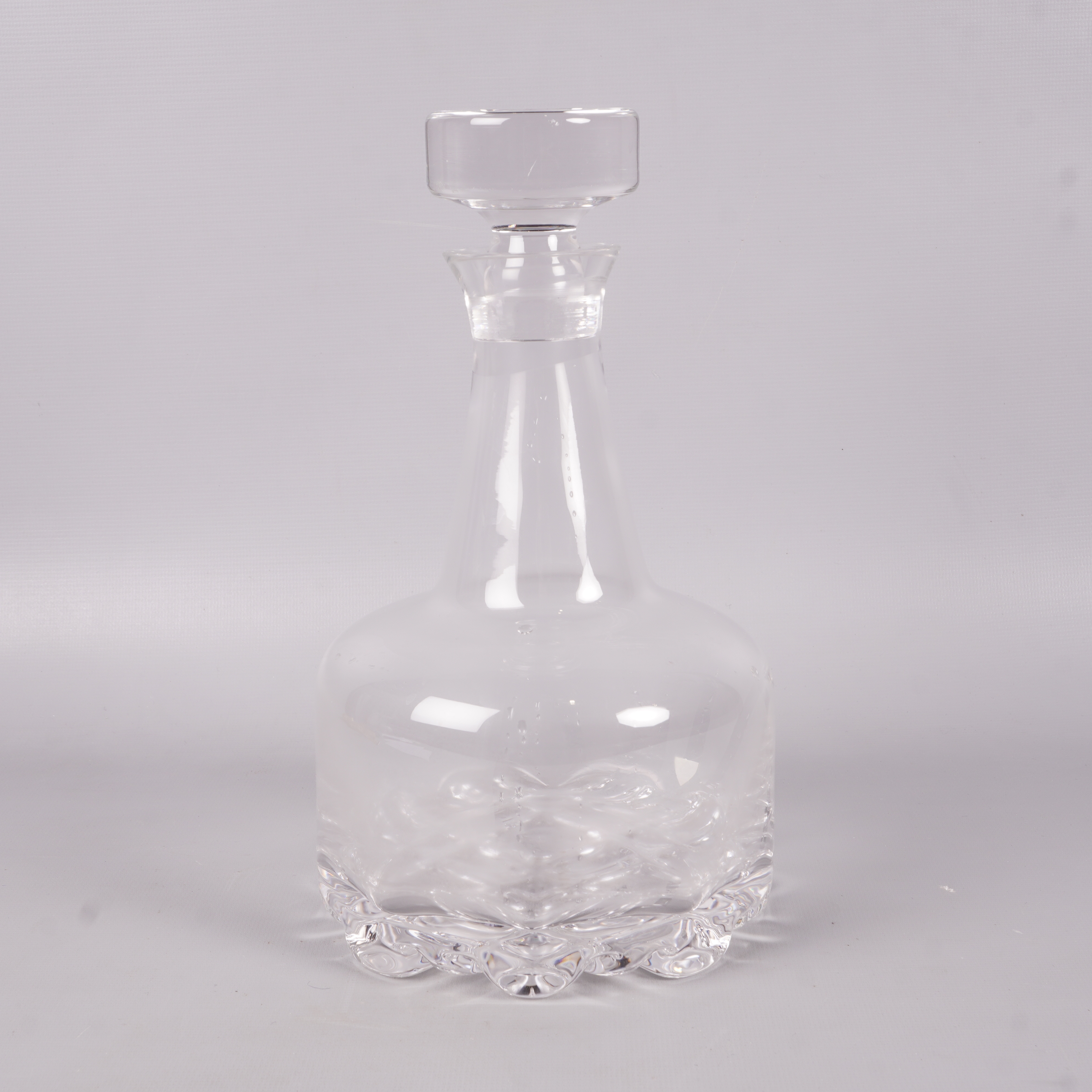 Elegant kristallkaraff med rundade former och slipad botten, perfekt för att ge din servering en lyxig touch. Karaffen har en rejäl stopp och genomskinlig finish som ger ett stilrent och modernt intryck i hemmets alla rum.