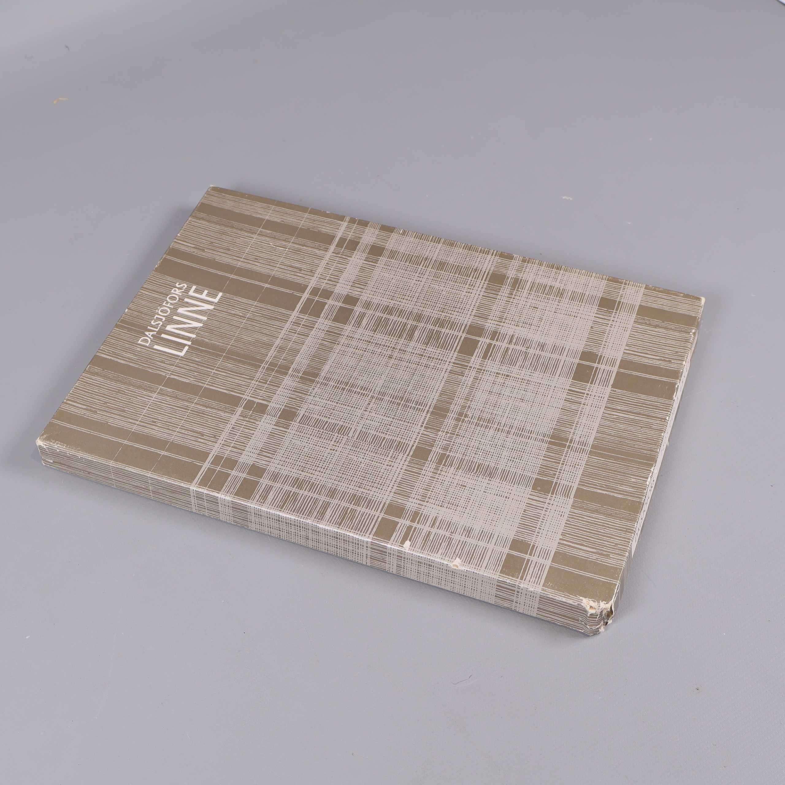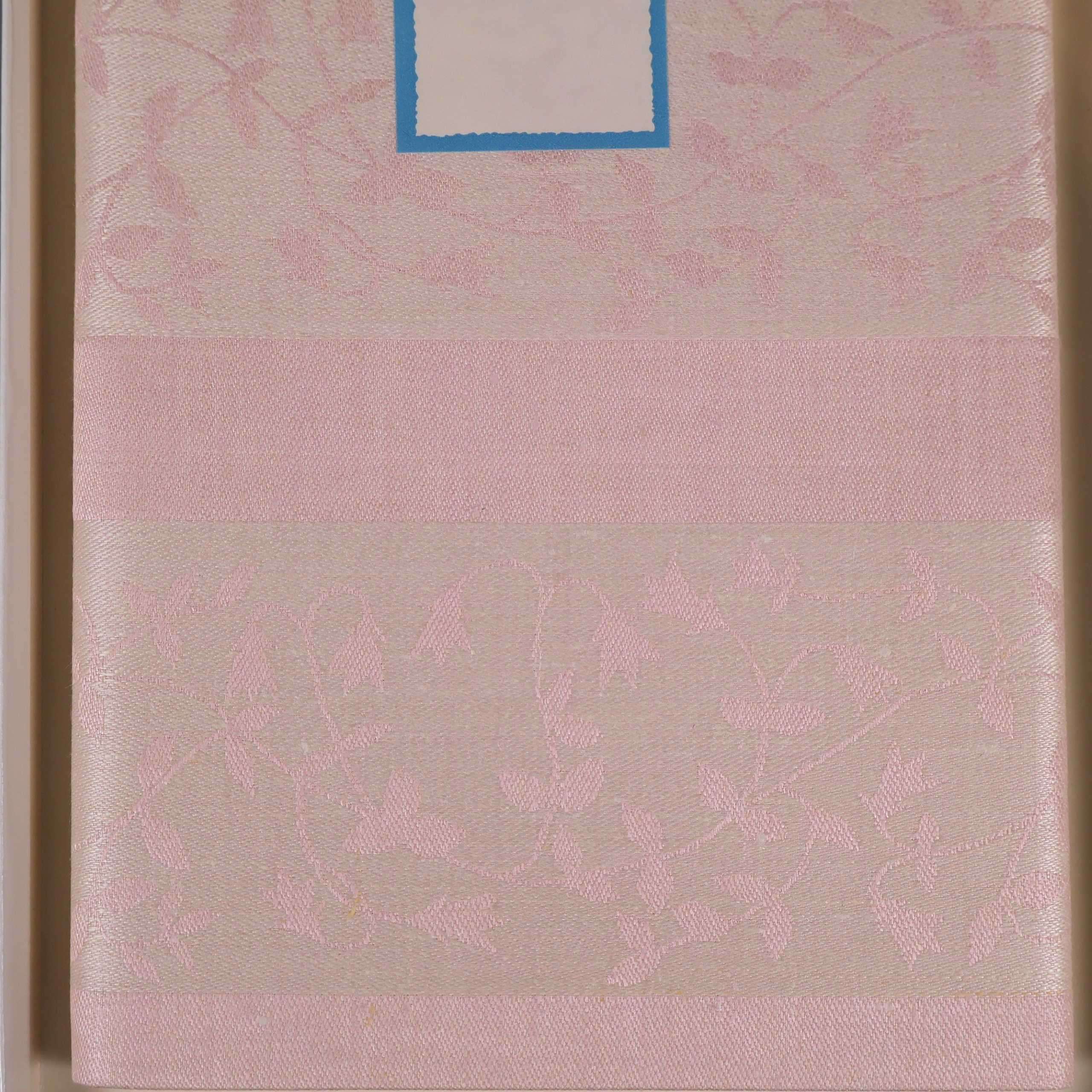 Stilren linneduk i ljus ton med diskret blommönster.