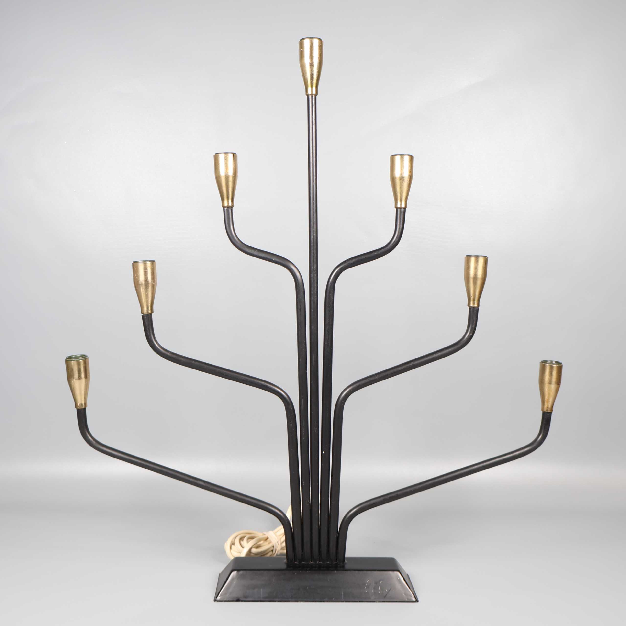 Osram Osram Svart ljusstake med sju armar 299 kr Product variation Antal st Beskrivning Stilren elektrisk ljusstake med sju armar och ljushållare i mässing. Det finns sprickor i fem ljushållare. Ljusstaken har en gammal kontakt. Visa all beskrivning Skick Gott skick Produkten har använts men är av fin kvalitet och ska inte ha några skador eller förslitningar. Läs mer om hur vi bedömer Dimensions Höjd: 53 cm Bredd: 7 cm Längd: 49 cm Färg Svart Varumärke Osram Produkten är unik och finns enbart som 1 st i lager. Fri frakt på alla köp över 990 kr. 14 dagars ångerrät.