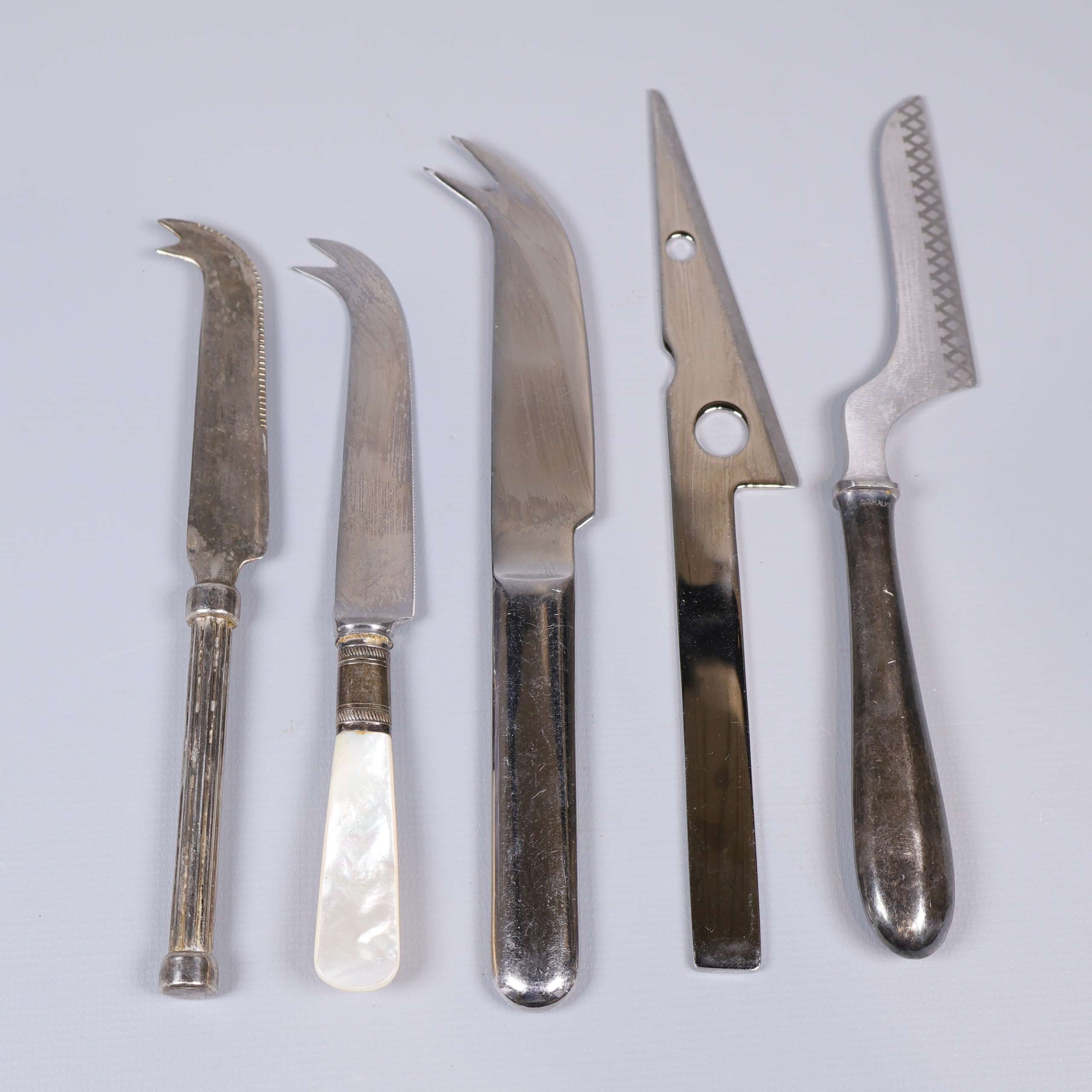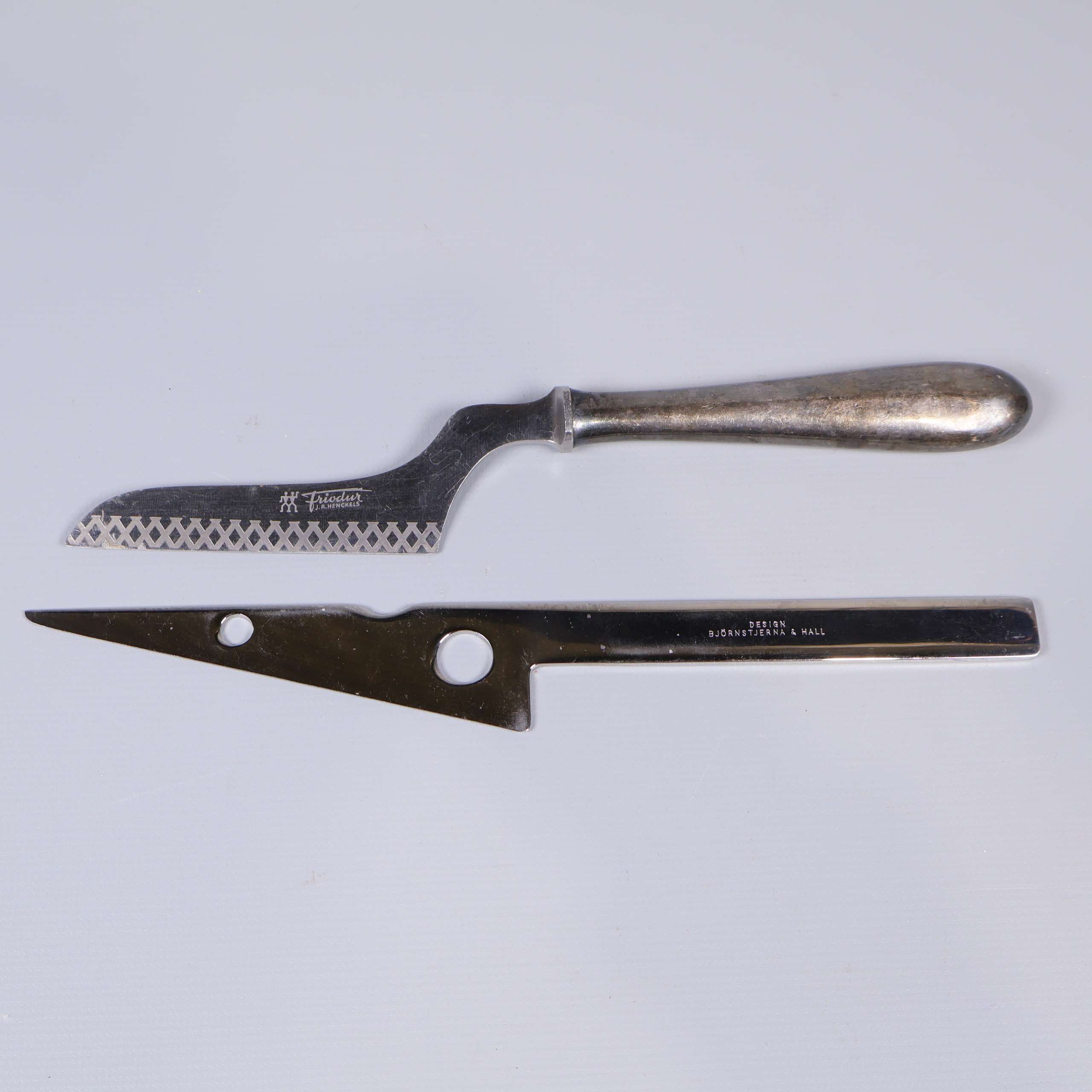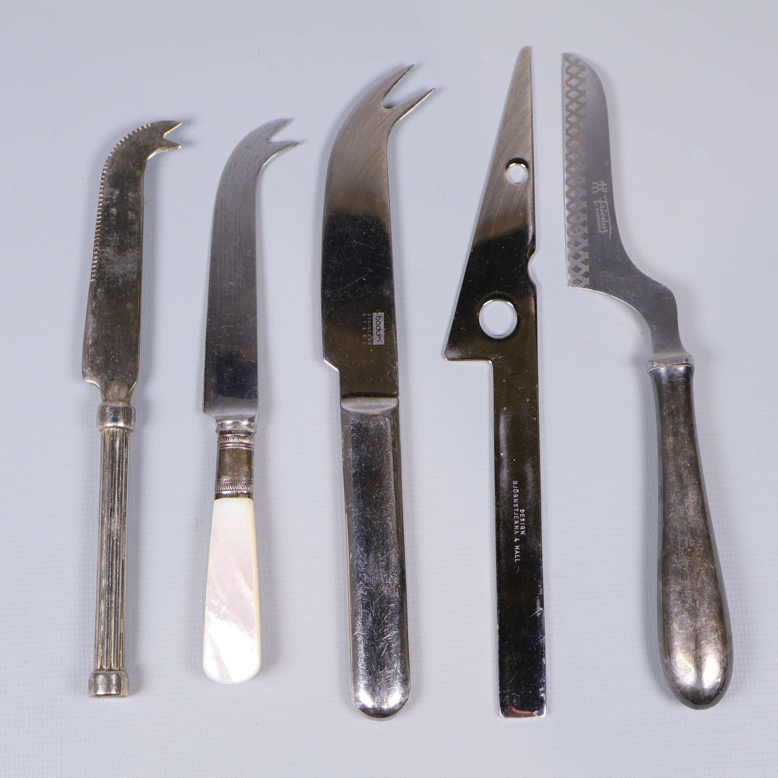 Ostknivar 5 st - Olika märken 189 kr Product variation Antal st Beskrivning Fem olika ostknivar med unika former och klassisk design. Visa all beskrivning Detaljer Längd: 18–22 cm Skick Gott skick Produkten har använts men är av fin kvalitet, det kan förekomma mindre förslitningar. Läs mer om hur vi bedömer Dimensions Längd: 18–22 cm Produkten är unik och finns enbart som 1 st i lager. Fri frakt på alla köp över 990 kr. 14 dagars ångerrät.