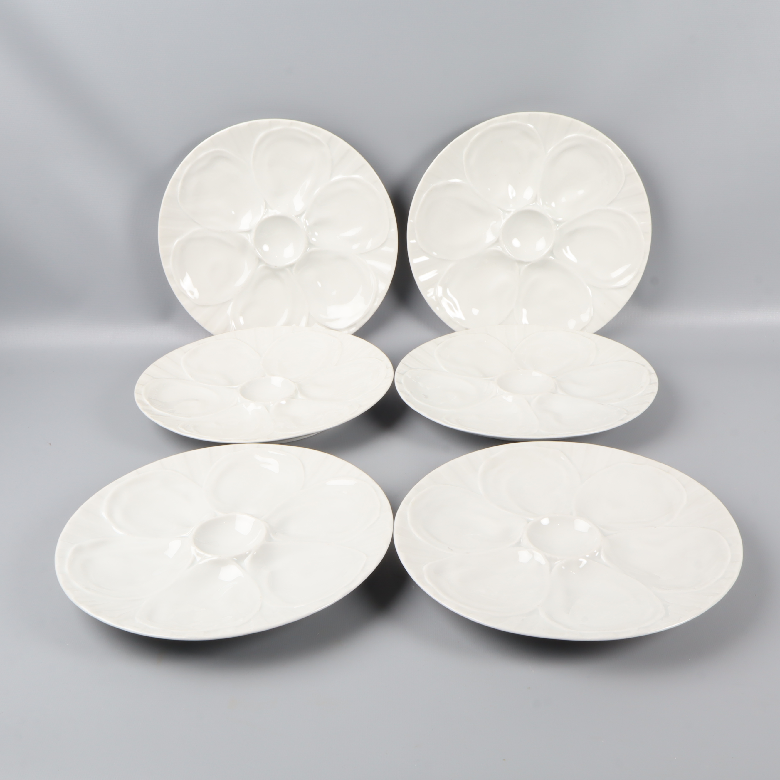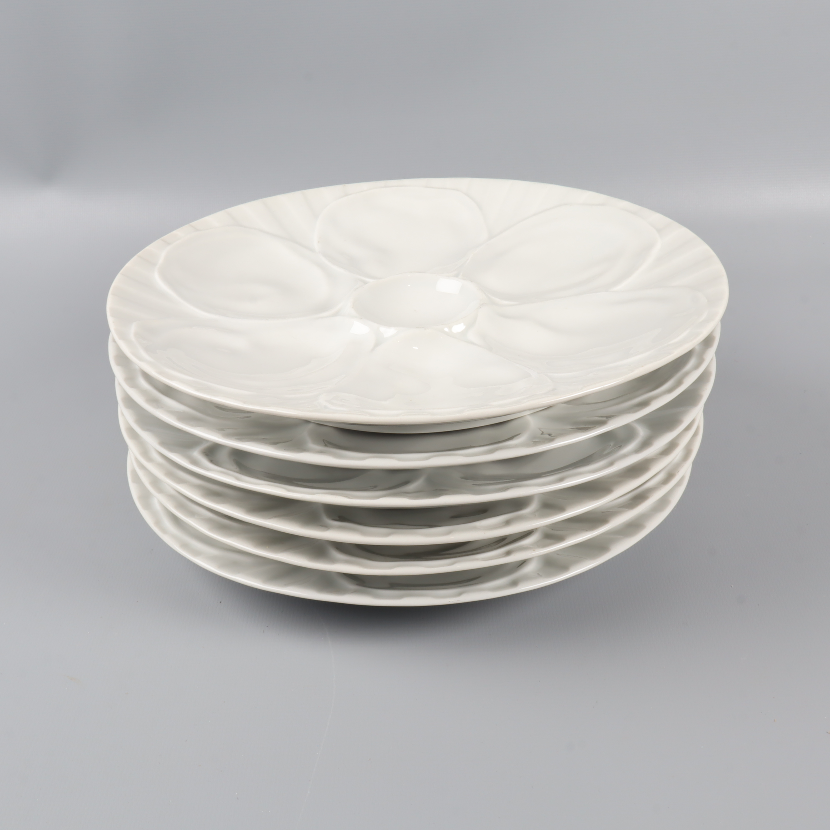 Set med sex vita ostronfat från Pillivuyt, tillverkade i Frankrike. Fatens yta har tydliga fack för ostron och en klassisk glänsande finish i porslin som passar både modern och vintage-inspirerad dukning. Elegant och tålig design – perfekt för dig som vill addera känsla till serveringen.