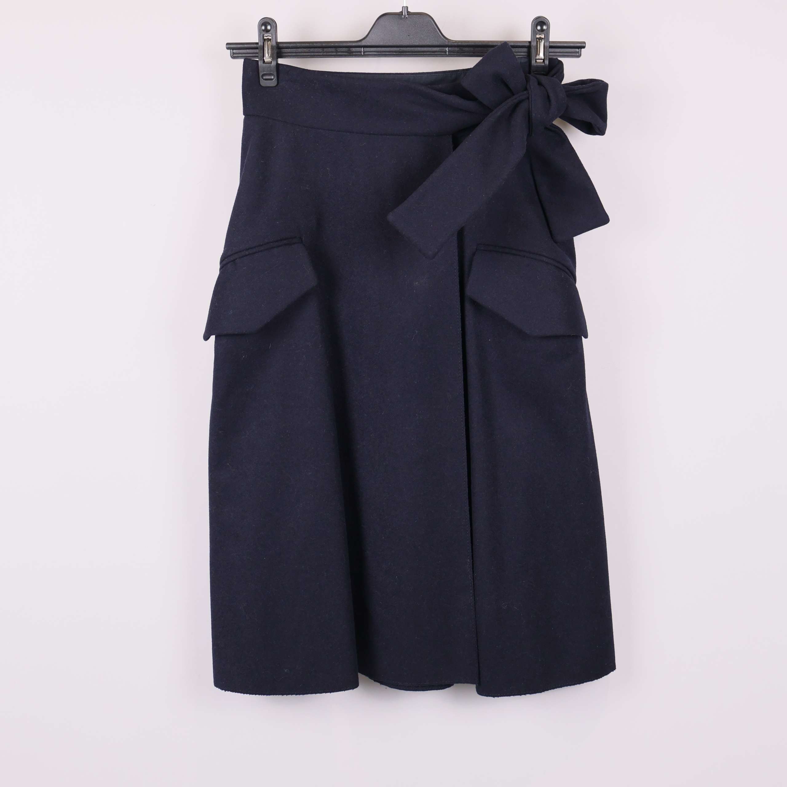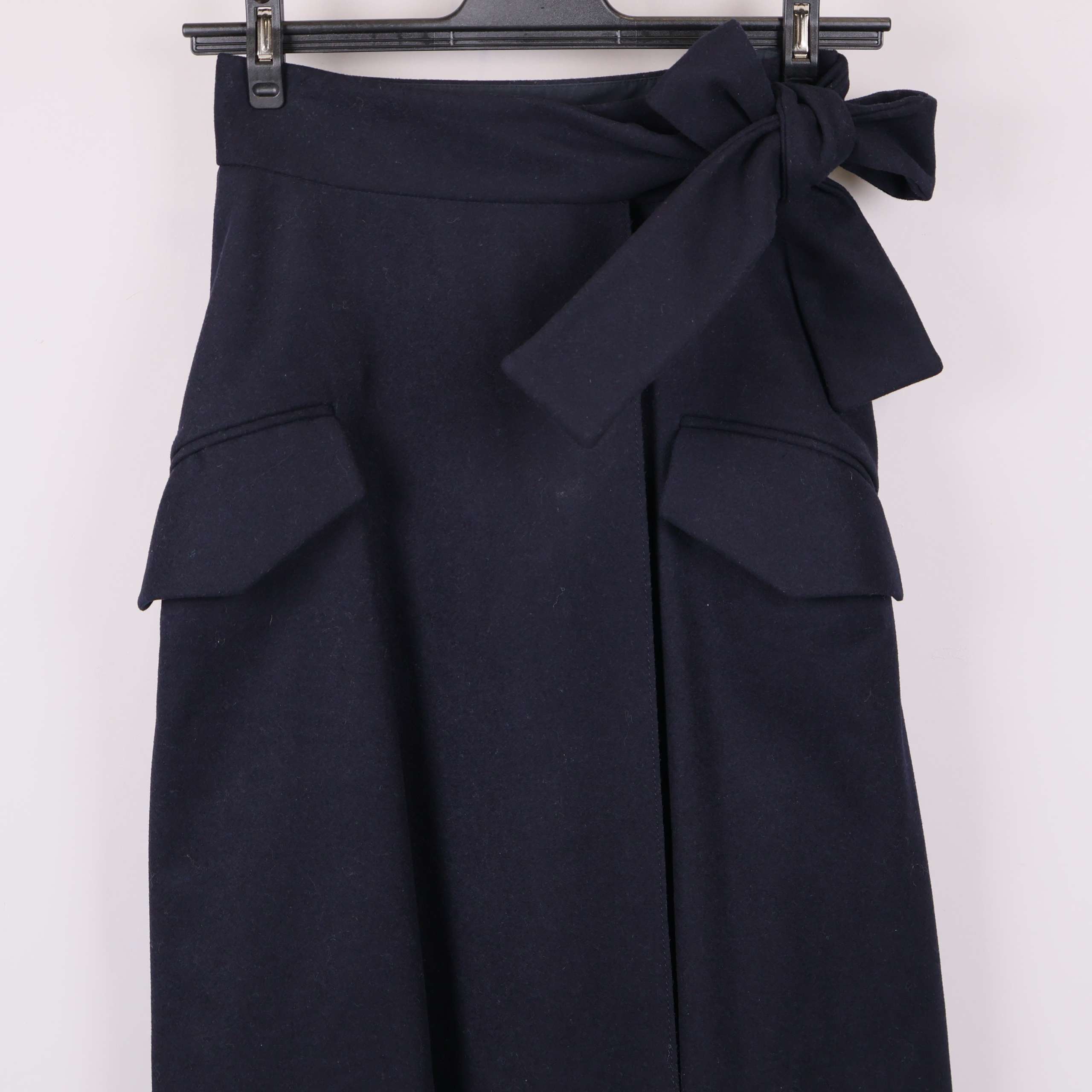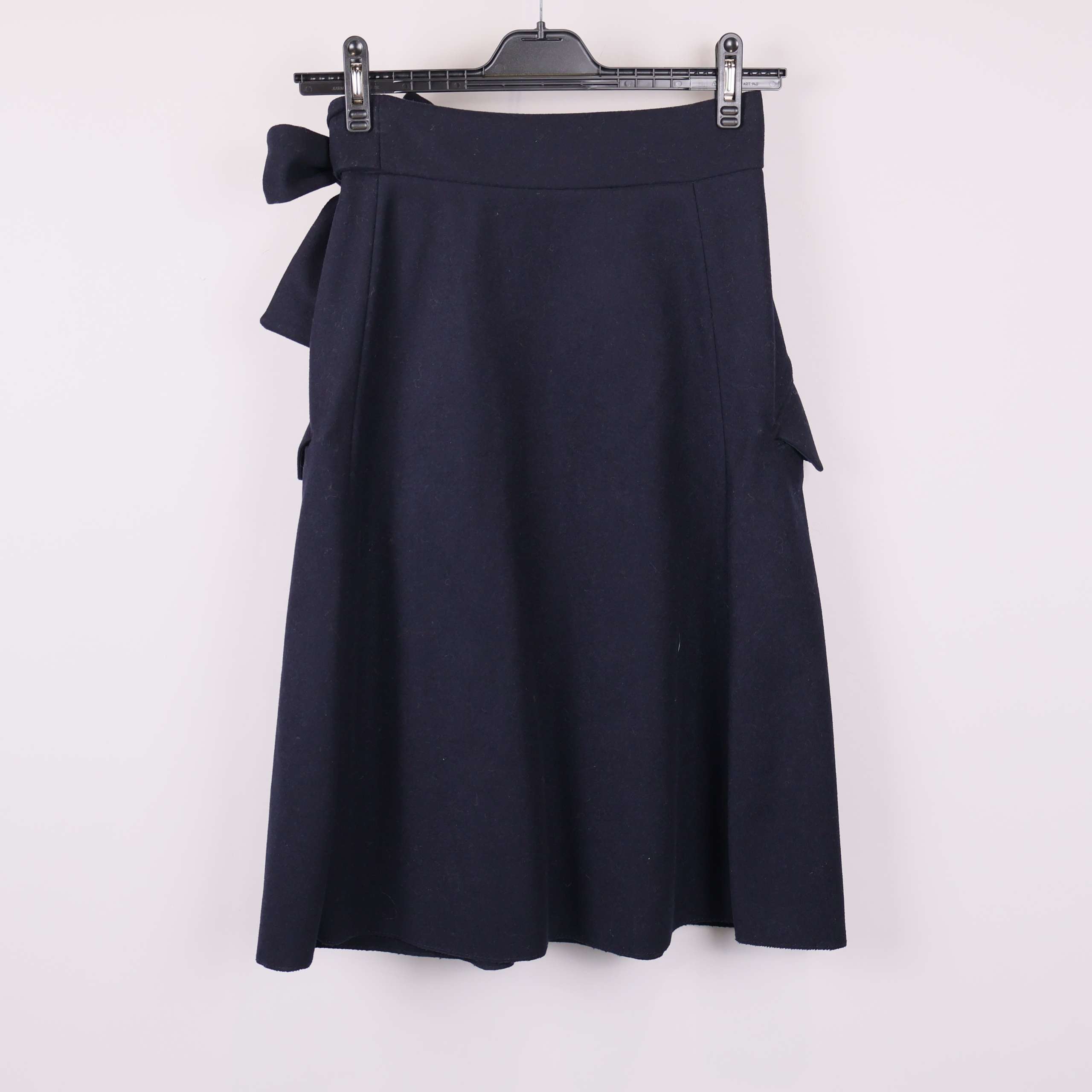 Kjol från & Other Stories med omlottknytning i midjan. Den mörkblå färgen ger en klassisk och tidlös känsla medan de stora fickorna och den breda knytbandet bidrar till en modern touch.