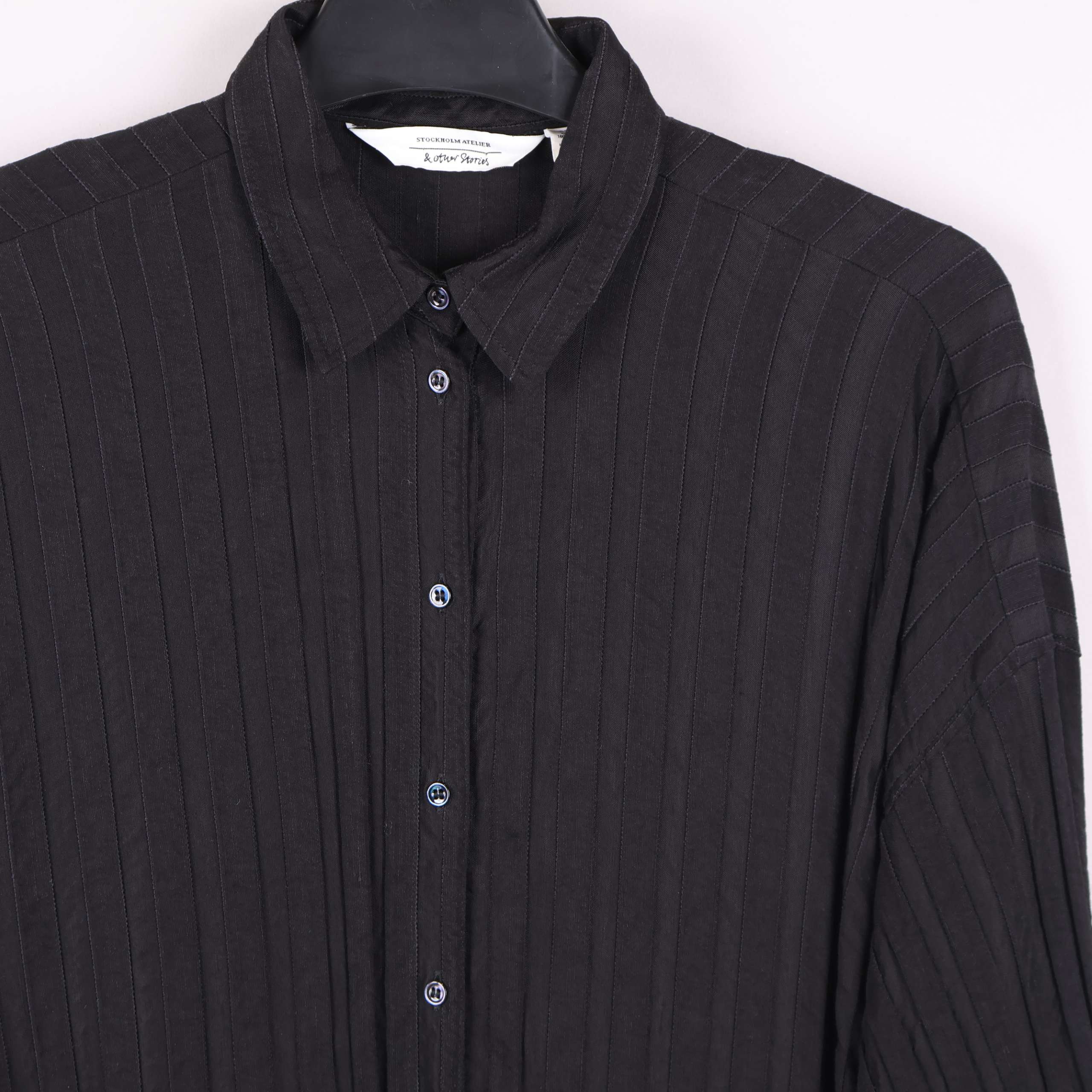 Svart skjorta med subtilt randigt mönster. Tillverkad av en blandning av bomull och linne för en mjuk och bekväm känsla.