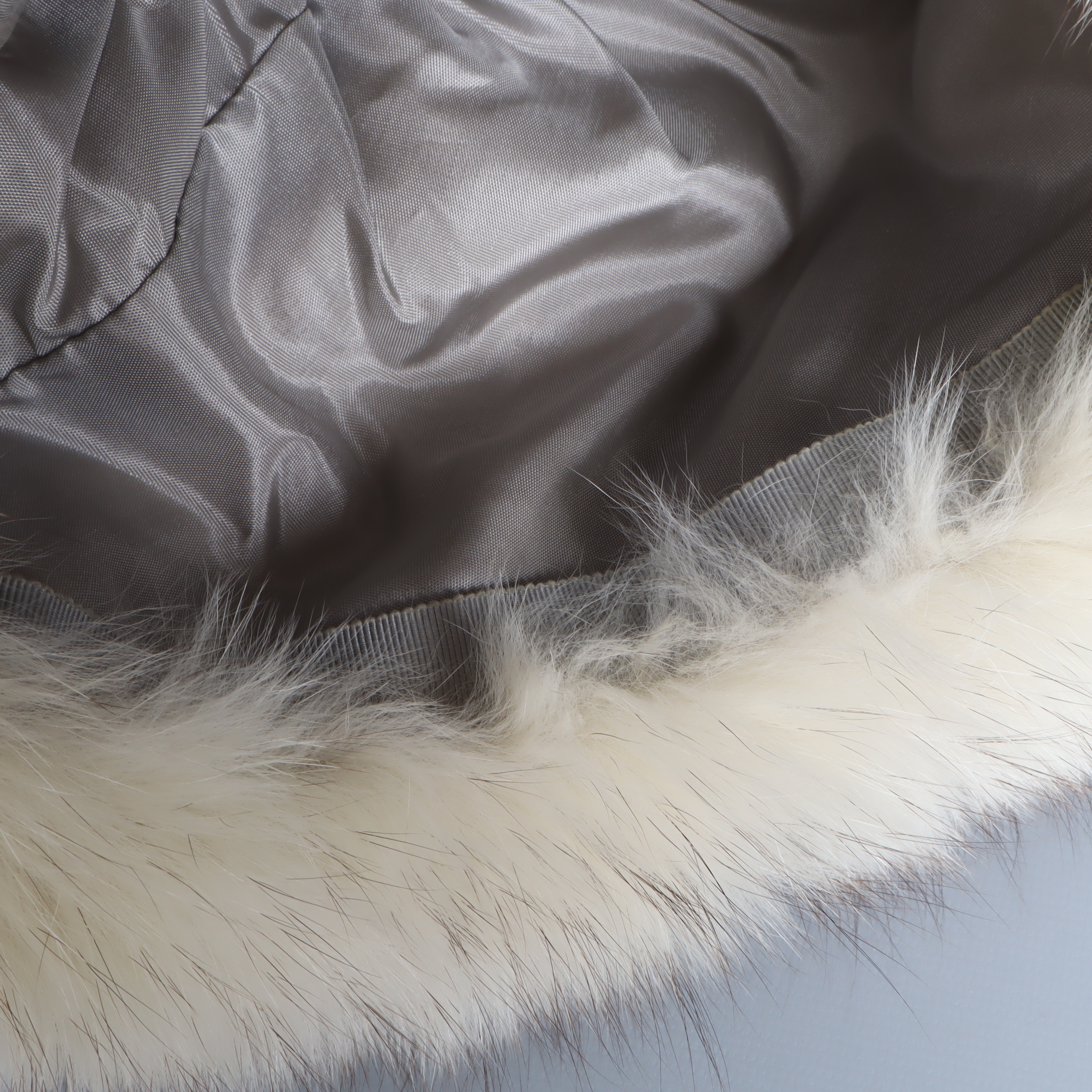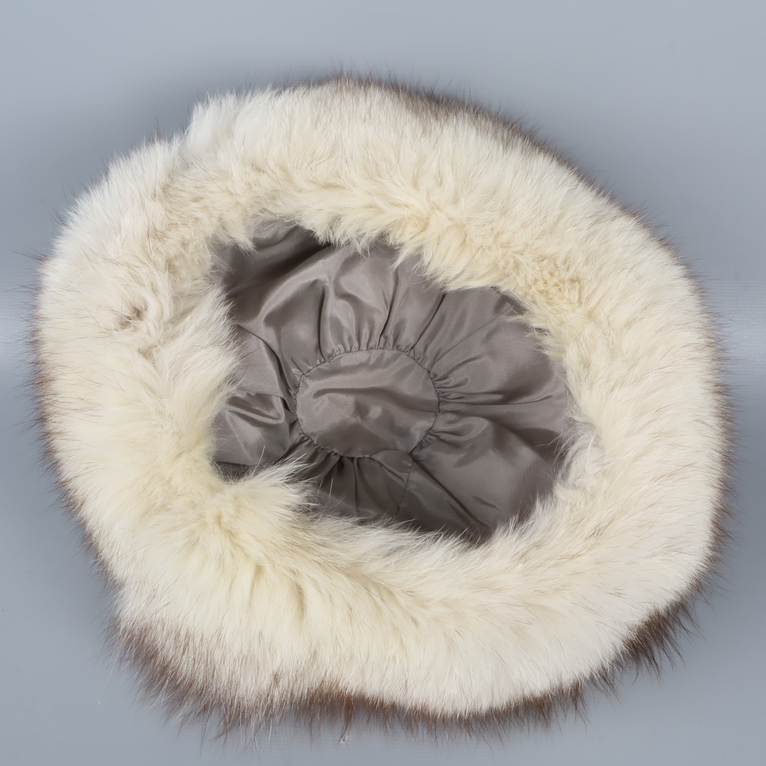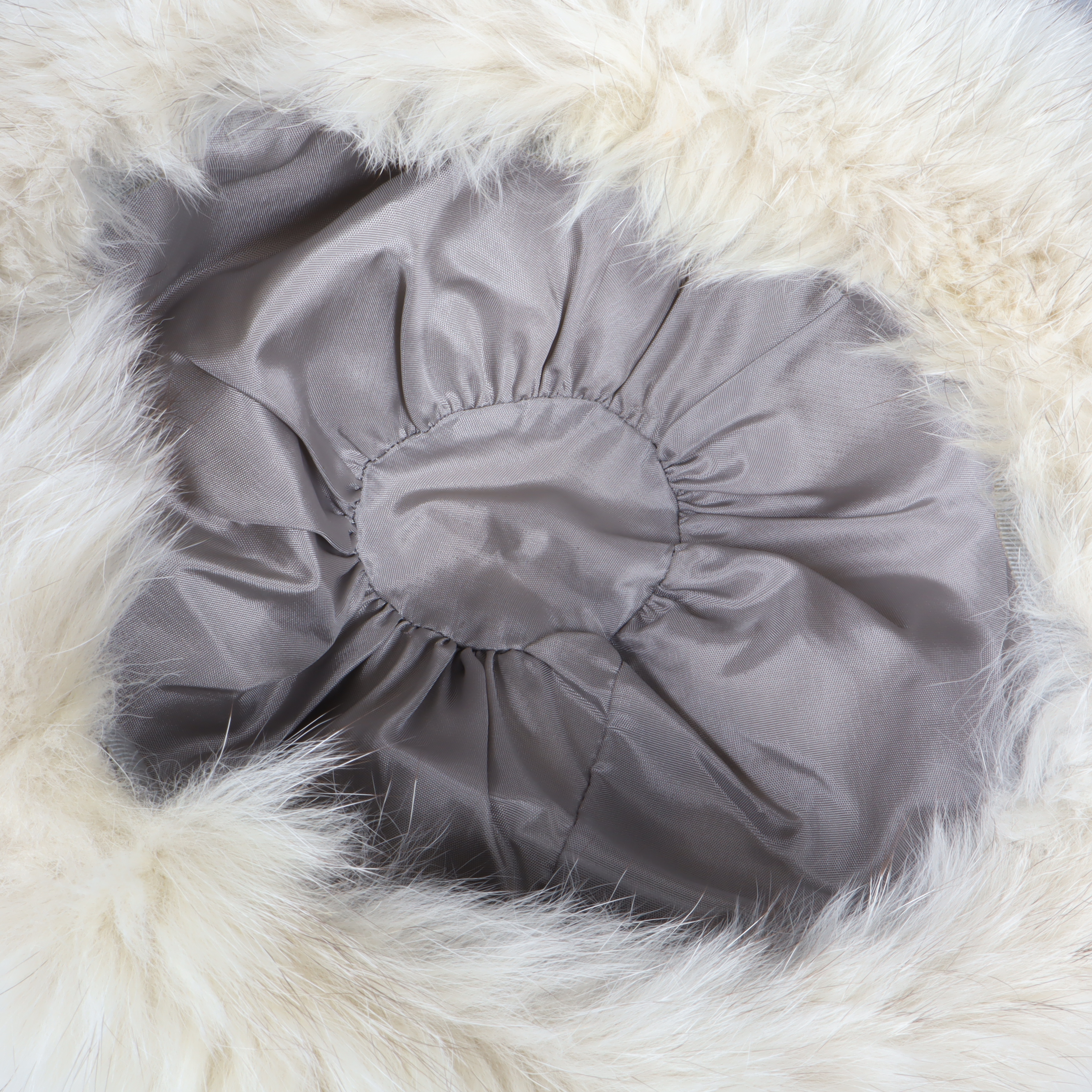 Stilren pälshatt med mjukt, fluffigt yttre i ljusa och gråbruna toner. Hatten har ett glansigt grått innerfoder och elastisk insida för bekväm och flexibel passform. Fjädrig struktur ger en touch av vintage vibe och värmande känsla. Perfekt som accessoar med statement-look.