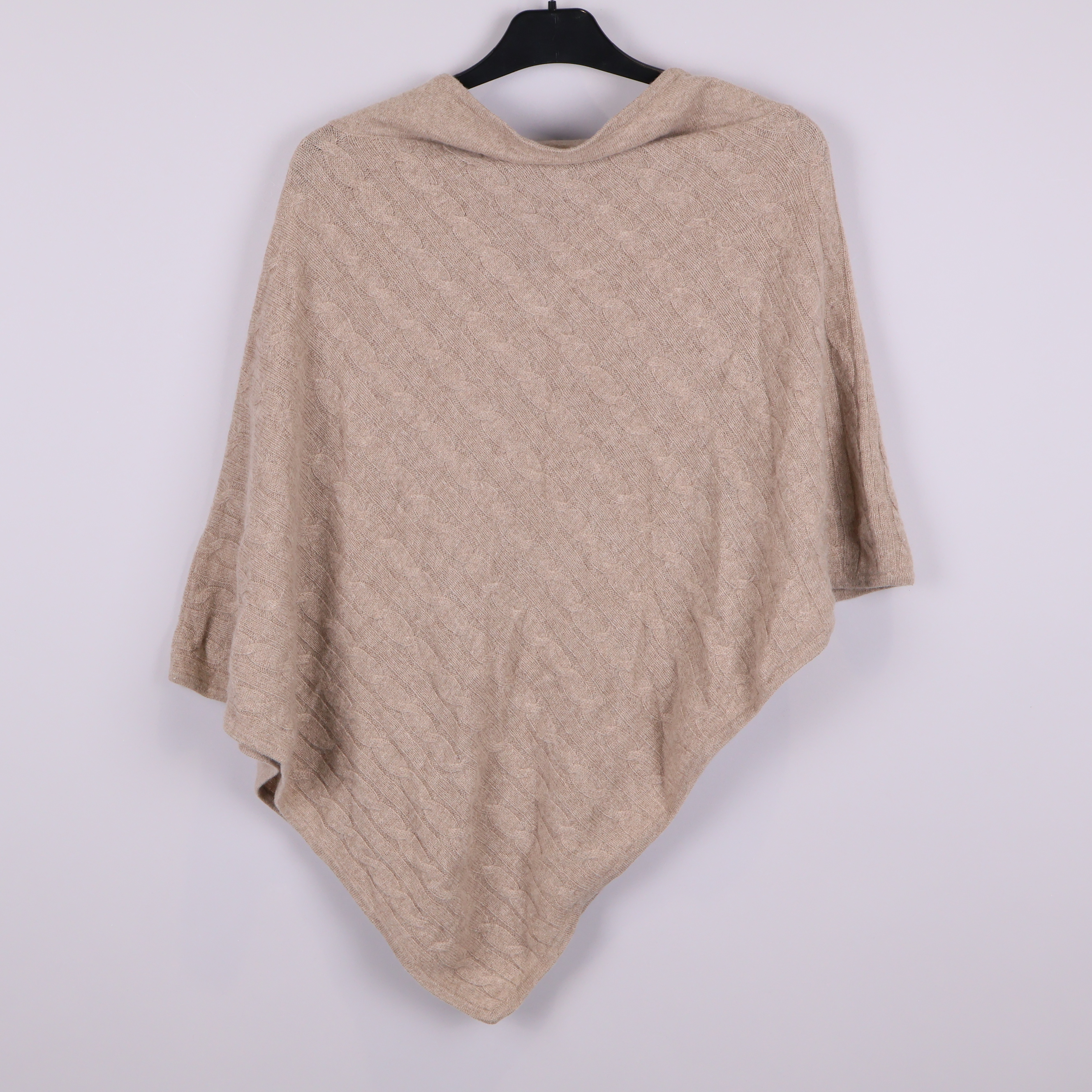 Mjuk och lyxig poncho i beige kashmir med diskret stickat mönster som ger en tidlös och elegant känsla. Den har en avslappnad design och en lätt textur som känns extra skön mot huden.