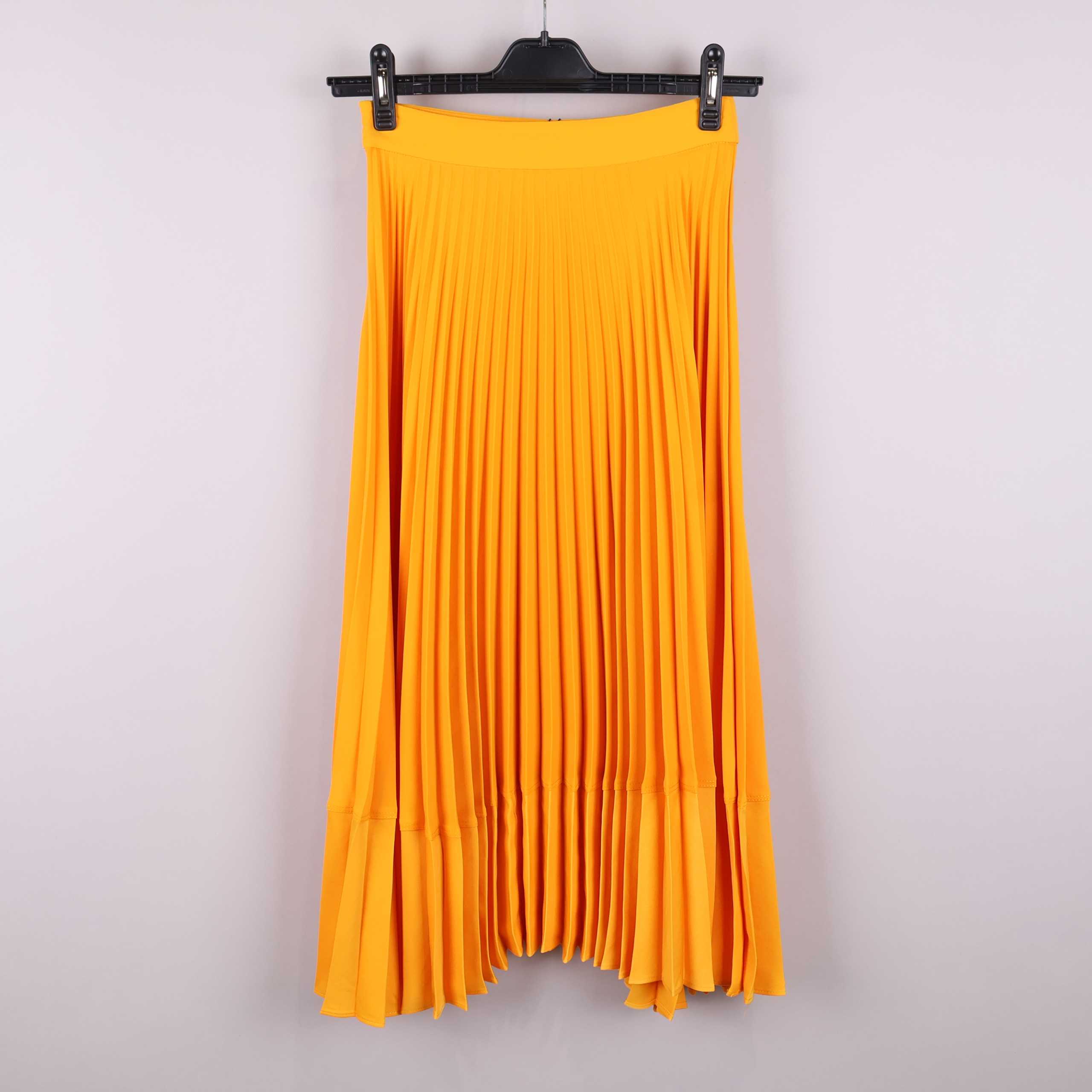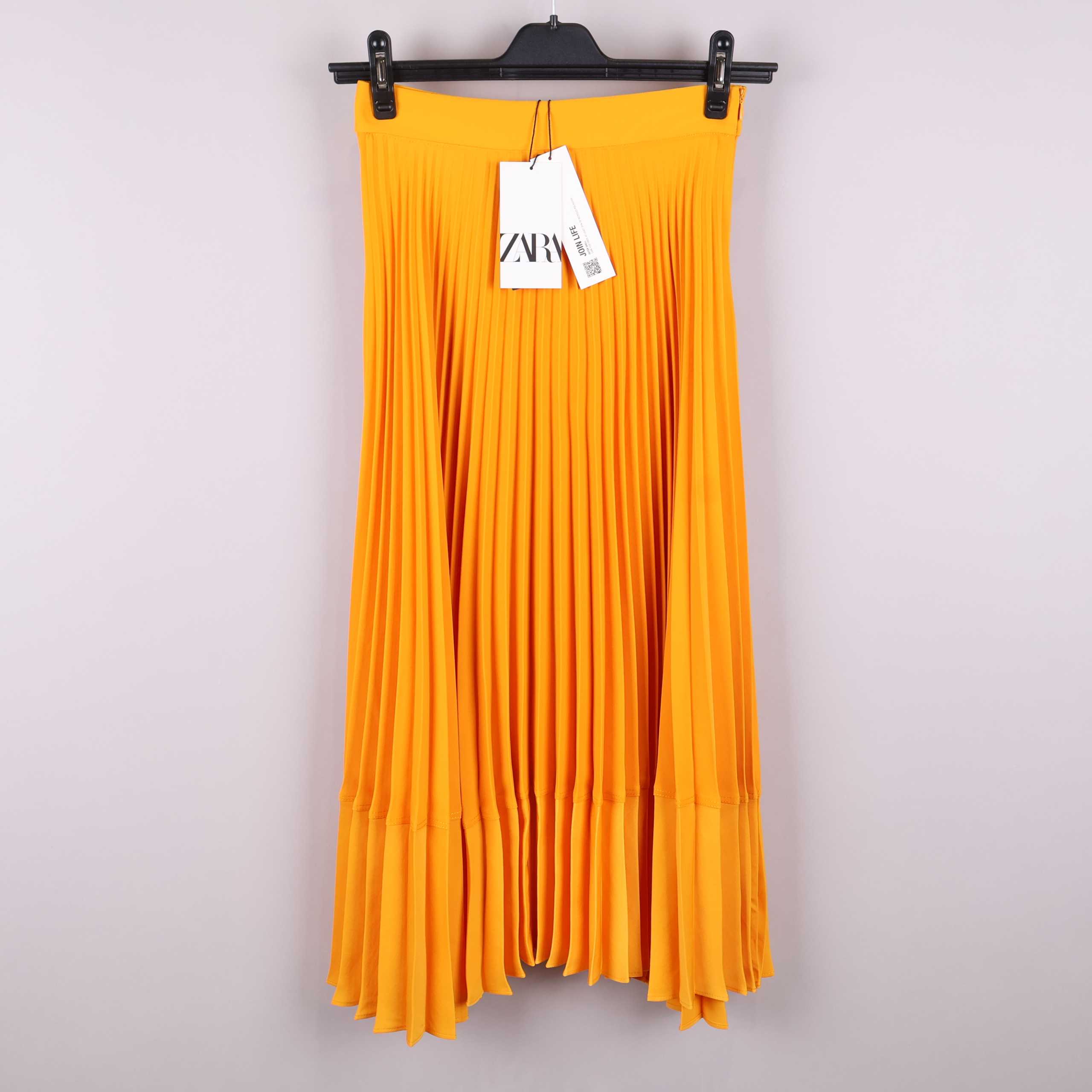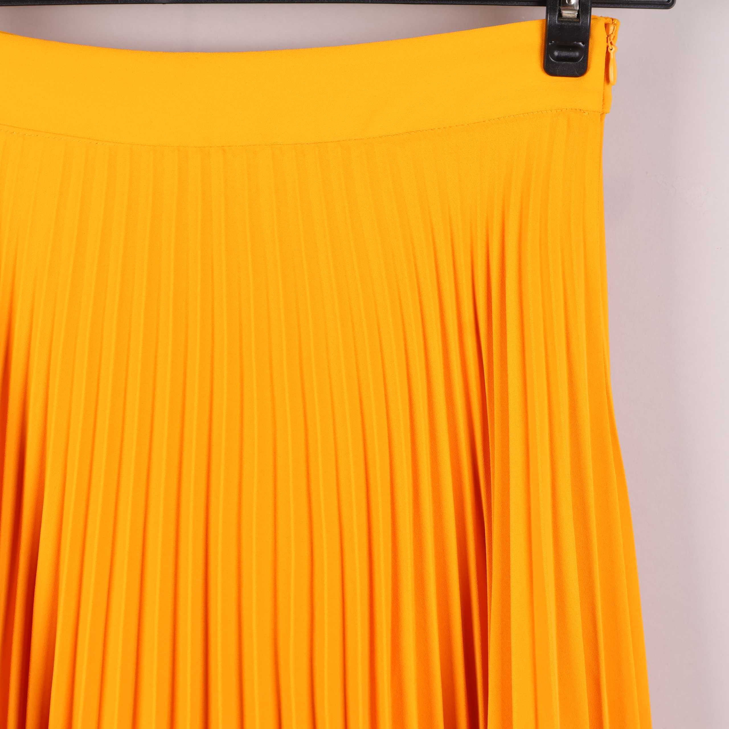 Ursnygg plisserad kjol i en klar gul nyans. Kjolen har en smickrande A-linjeformad silhuett.