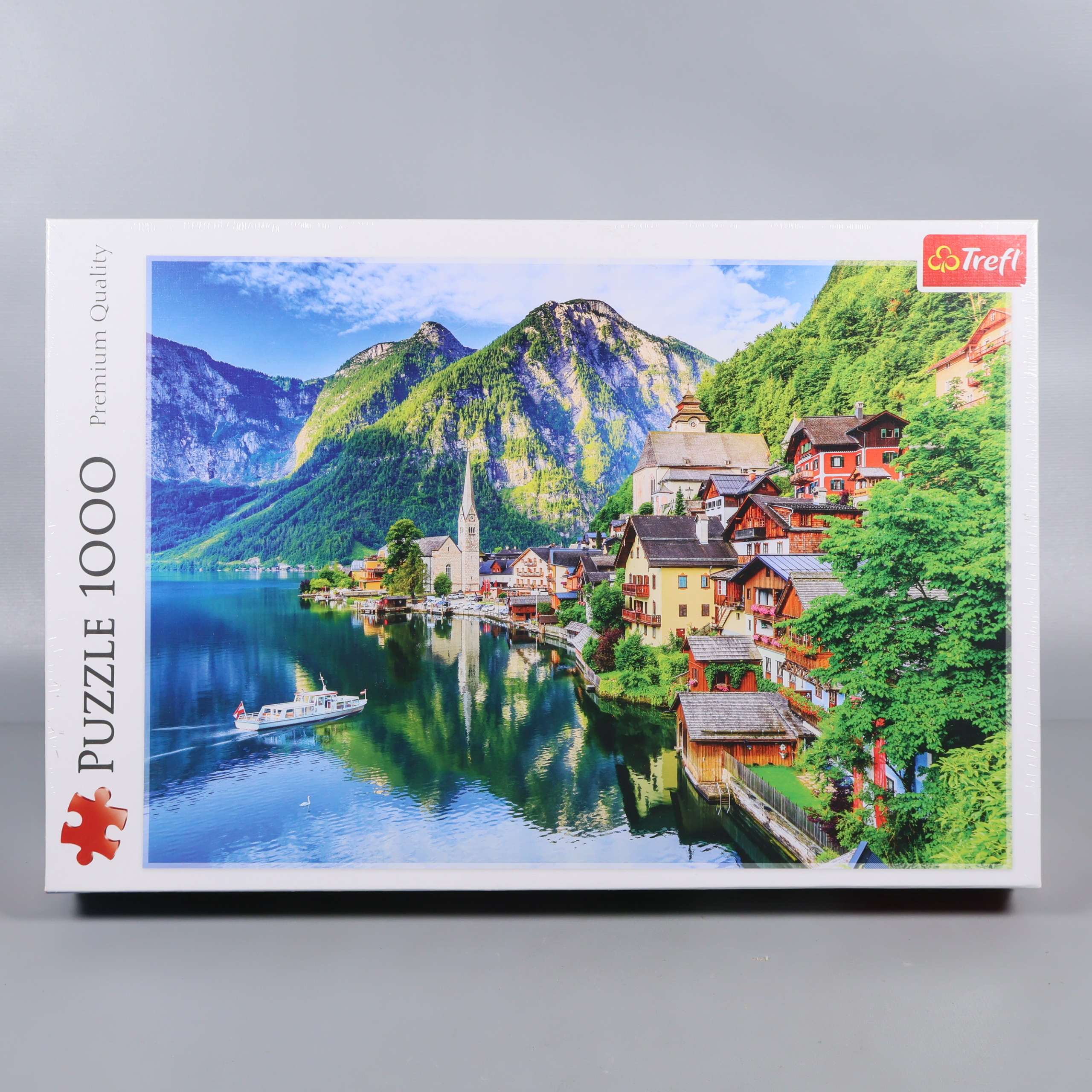 Färgstarkt pussel med vackert motiv av Hallstatt i Österrike och imponerande berg i bakgrunden. Innehåller 1000 bitar och mäter 68,3 x 48 cm när det är färdiglagt. Levereras i en stadig kartong med en inspirerande och detaljrik bild, perfekt för dig som gillar natur och stadslandskap.