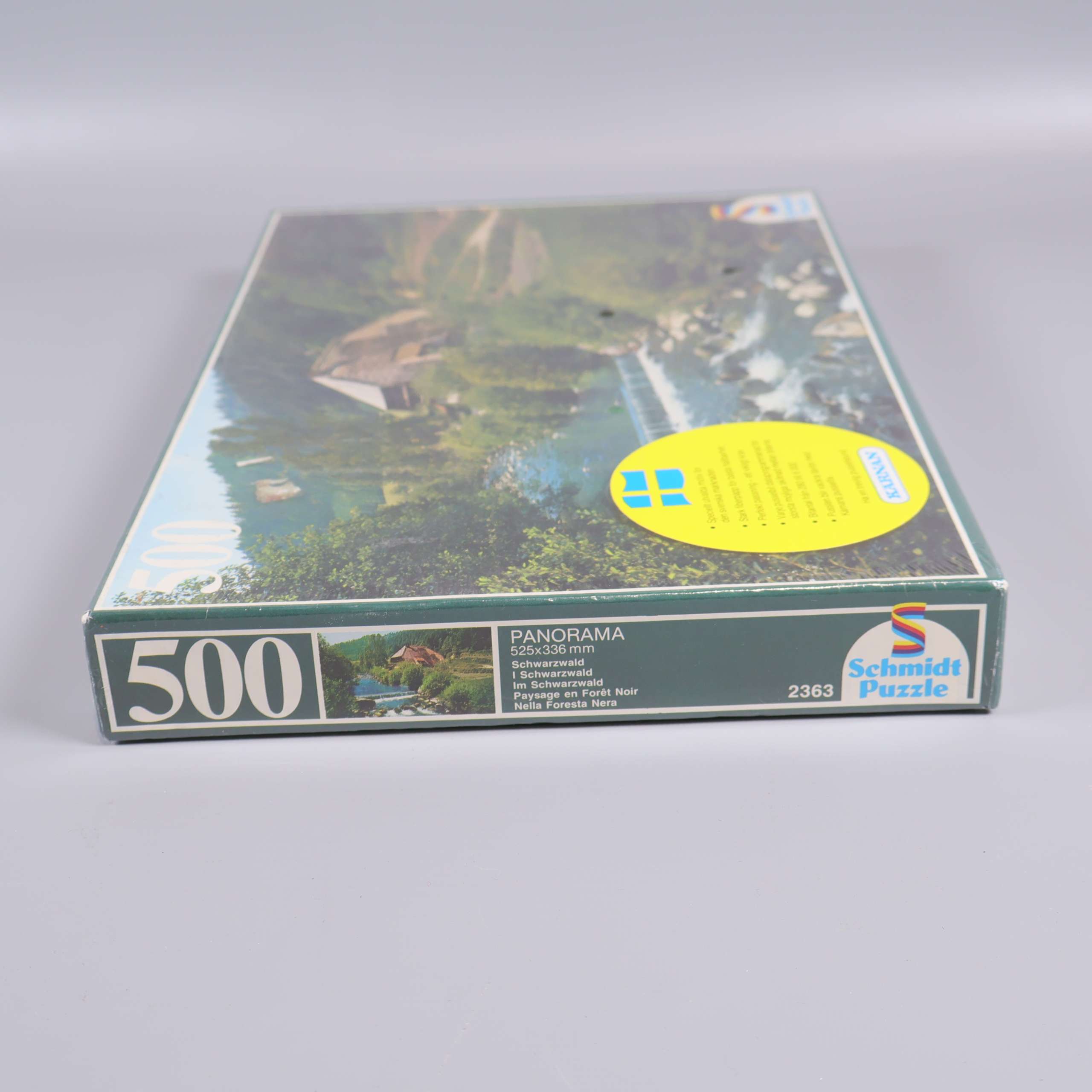 Schmidt Puzzle Pussel Panorama natur 500 bitar 99 kr Product variation Antal st Beskrivning Panoramapussel med vackert landskapsmotiv som visar en lugn flod och gröna omgivningar, inramat av klassisk design. Visa all beskrivning Skick Nytt skick Produkten är som ny. Kan till och med ha orginalprislapp kvar eller ligga i originalförpackning. Läs mer om hur vi bedömer Number of pieces 500 Dimensions Höjd: 33,6 cm Bredd: 52,5 cm Varumärke Schmidt Puzzle Produkten är unik och finns enbart som 1 st i lager. Fri frakt på alla köp över 990 kr. 14 dagars ångerrät.