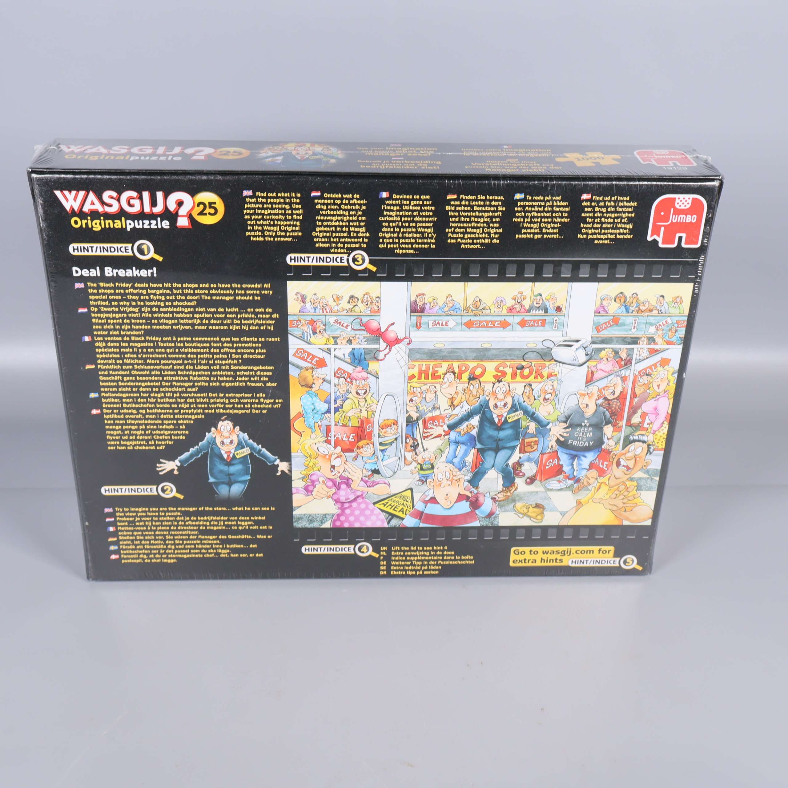 Wasgij Originalpuzzle 25 är ett färgglatt och fantasifullt pussel med motiv av ett livligt affärsscenarie tecknat i humoristisk stil.