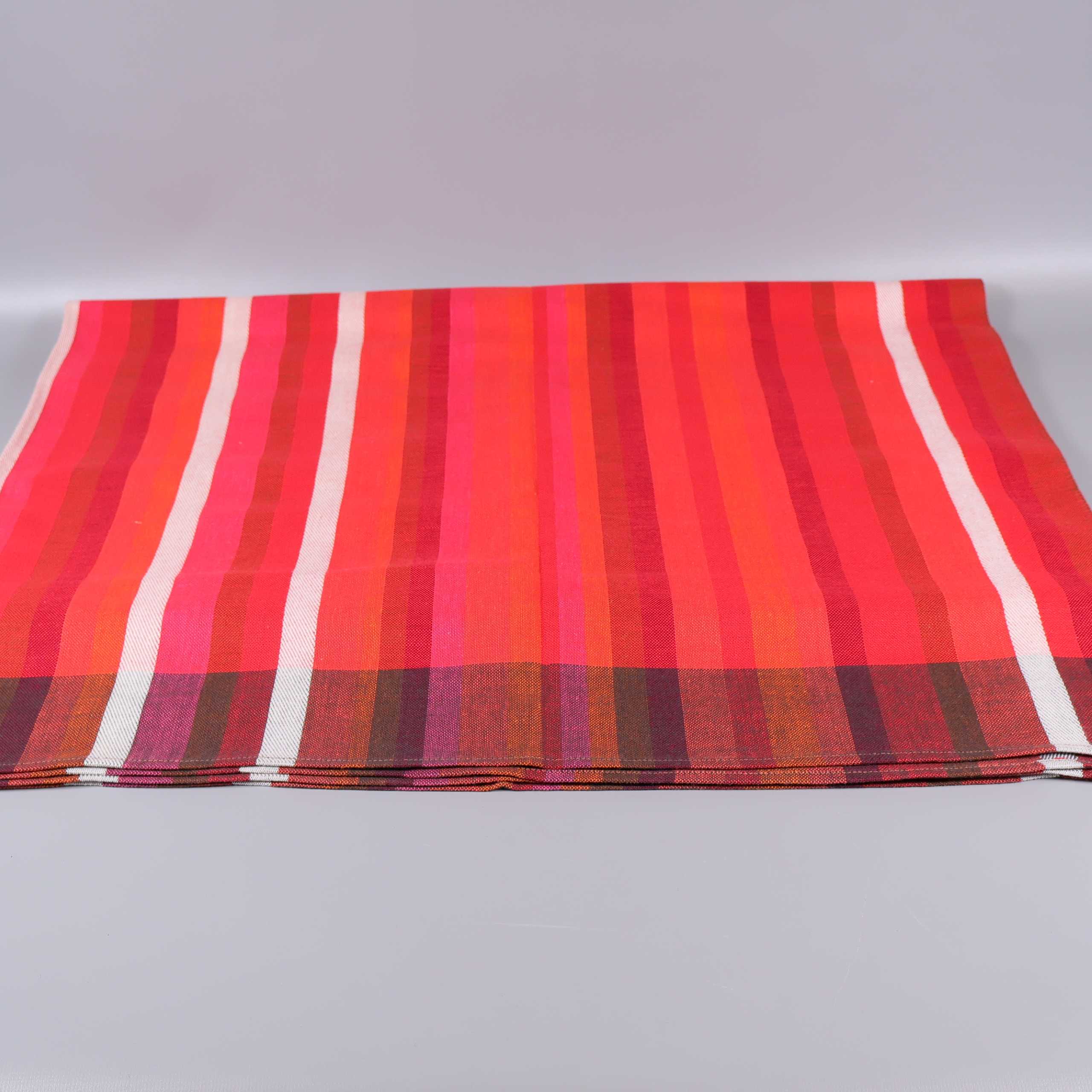 Randig duk med färgstarka toner Pris 129 kr Product variation Antal st Beskrivning Den här duken har livfulla ränder i olika röda och rosa nyanser med kontrasterande inslag av vitt. Den känns klassisk men ändå modern, perfekt att lägga fram för att ge ett färgglatt lyft till hemmet. Visa all beskrivning Detaljer Längd: ca 180cmBredd: ca 125cm Skick Mycket gott skick Produkten är sparsamt använd, är av fin kvalitet och ska inte ha några skador eller förslitningar. Läs mer om hur vi bedömer Dimensions Längd: ca 180cm, Bredd: ca 125cm Färg Röd Produkten är unik och finns enbart som 1 st i lager. Fri frakt på alla köp över 990 kr. 14 dagars ångerrät.