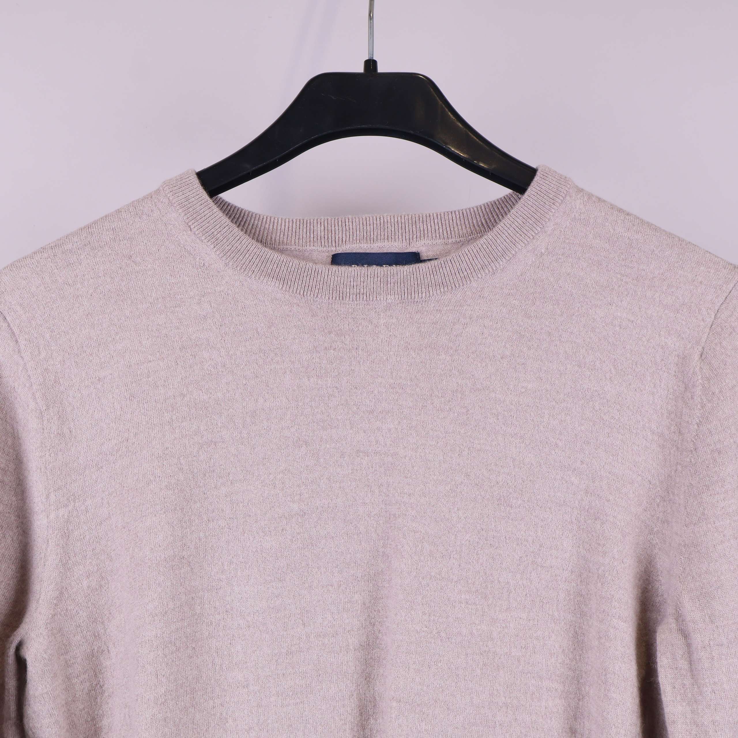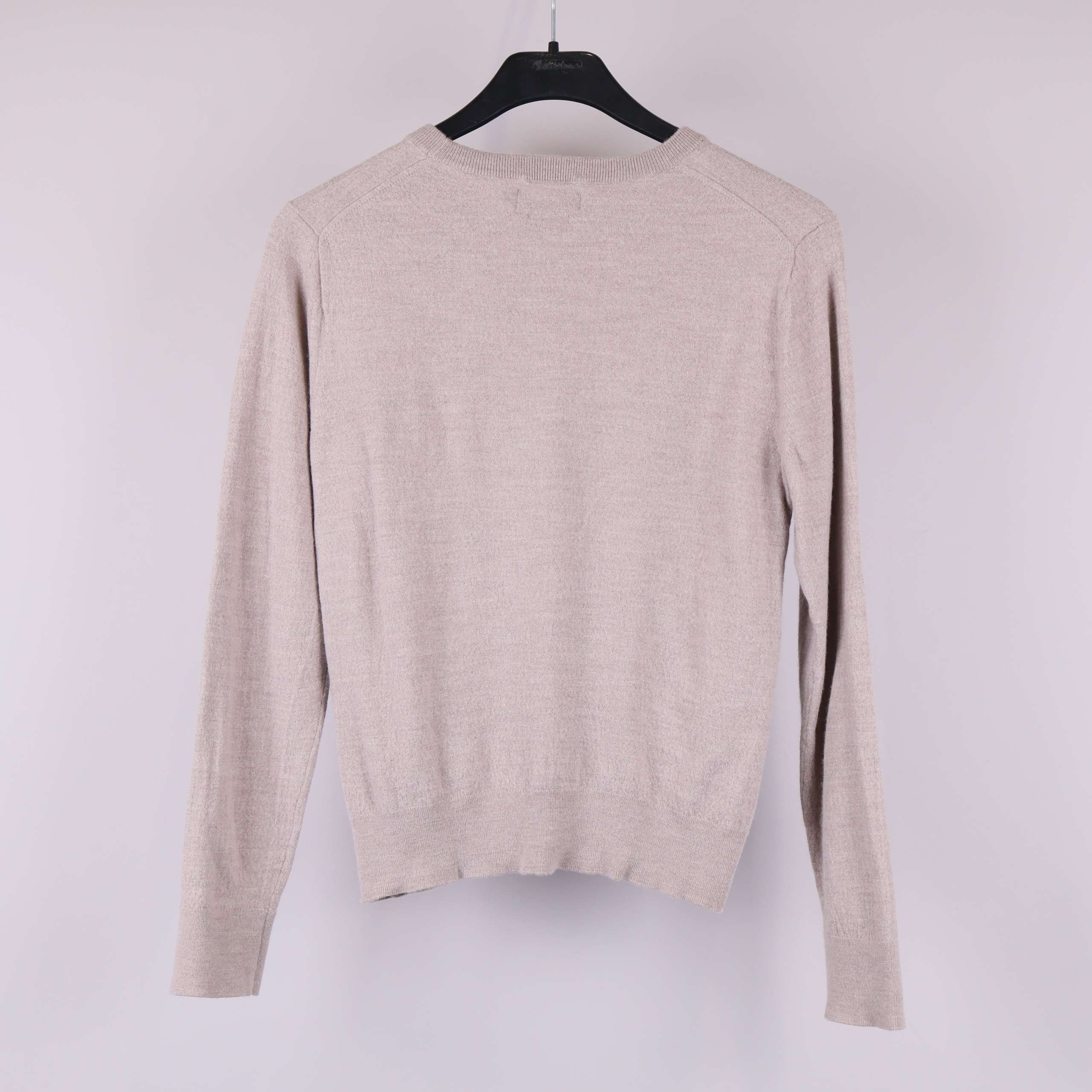 Mjuk och klassisk stickad tröja i beige merinoull med rund halsringning. Tidlös design som funkar till många olika outfits. Lätt och följsam kvalitet ger en bekväm känsla, perfekt för lager på lager. Diskret ribbade muddar vid ärmslut och midja ger en snygg avslutning.