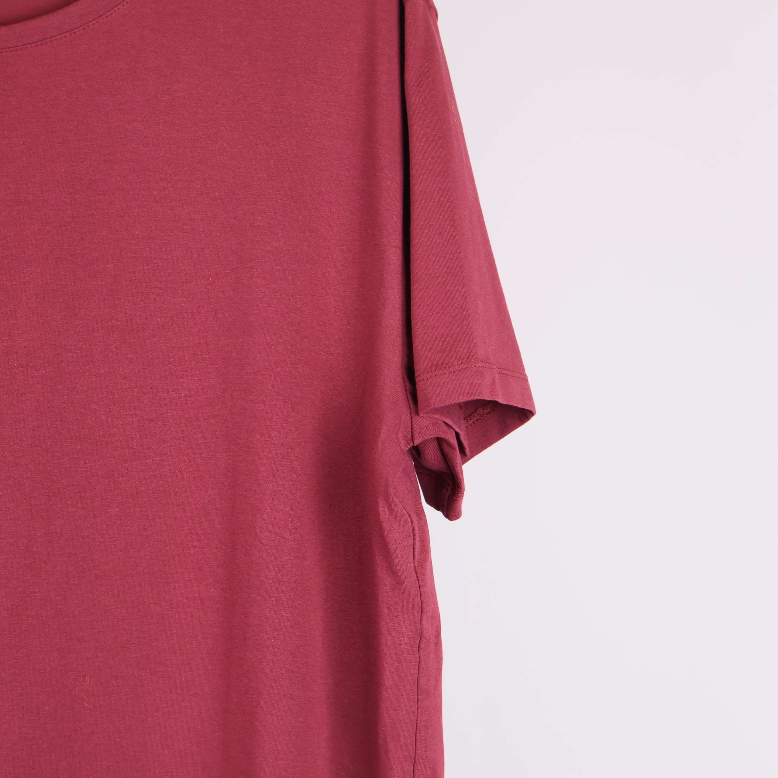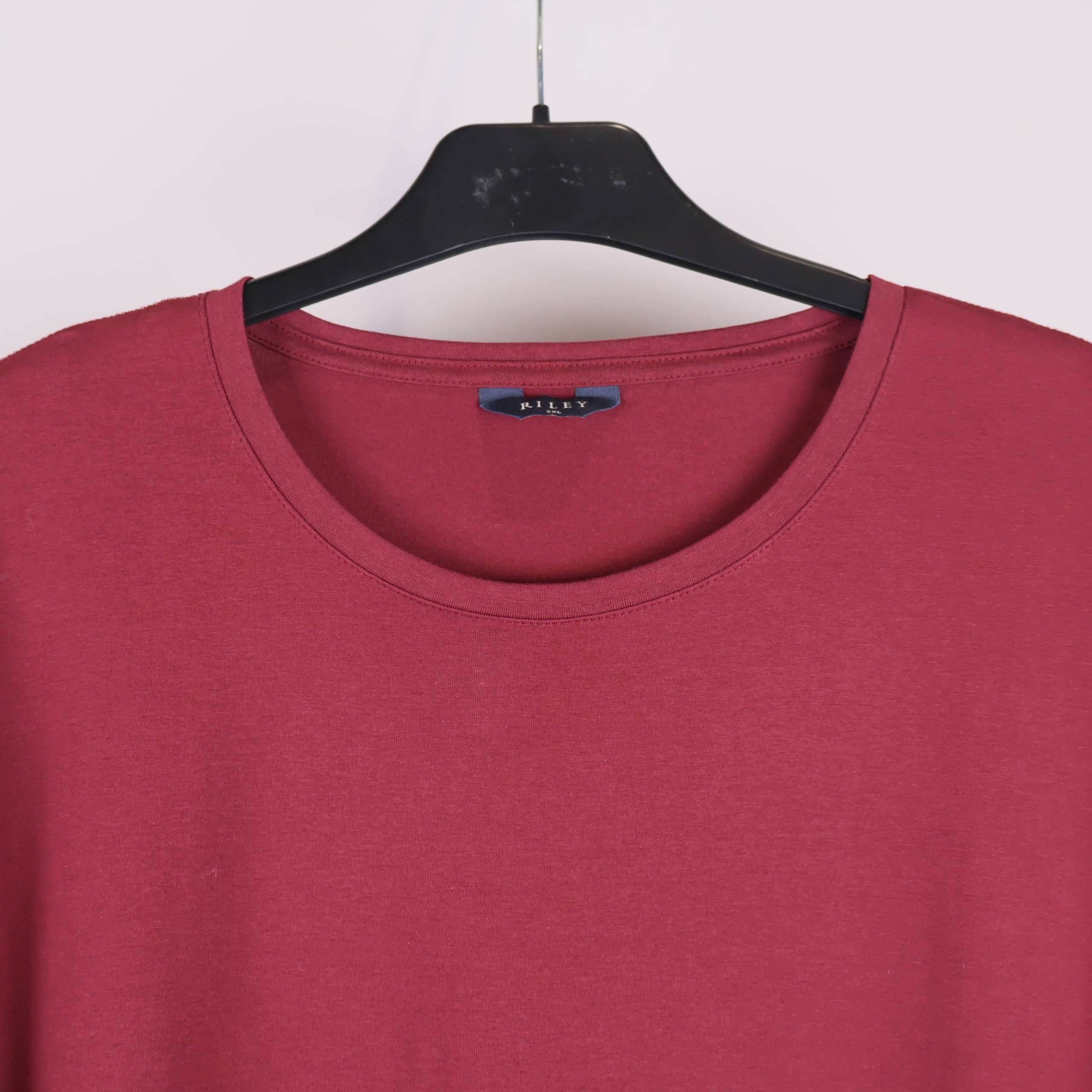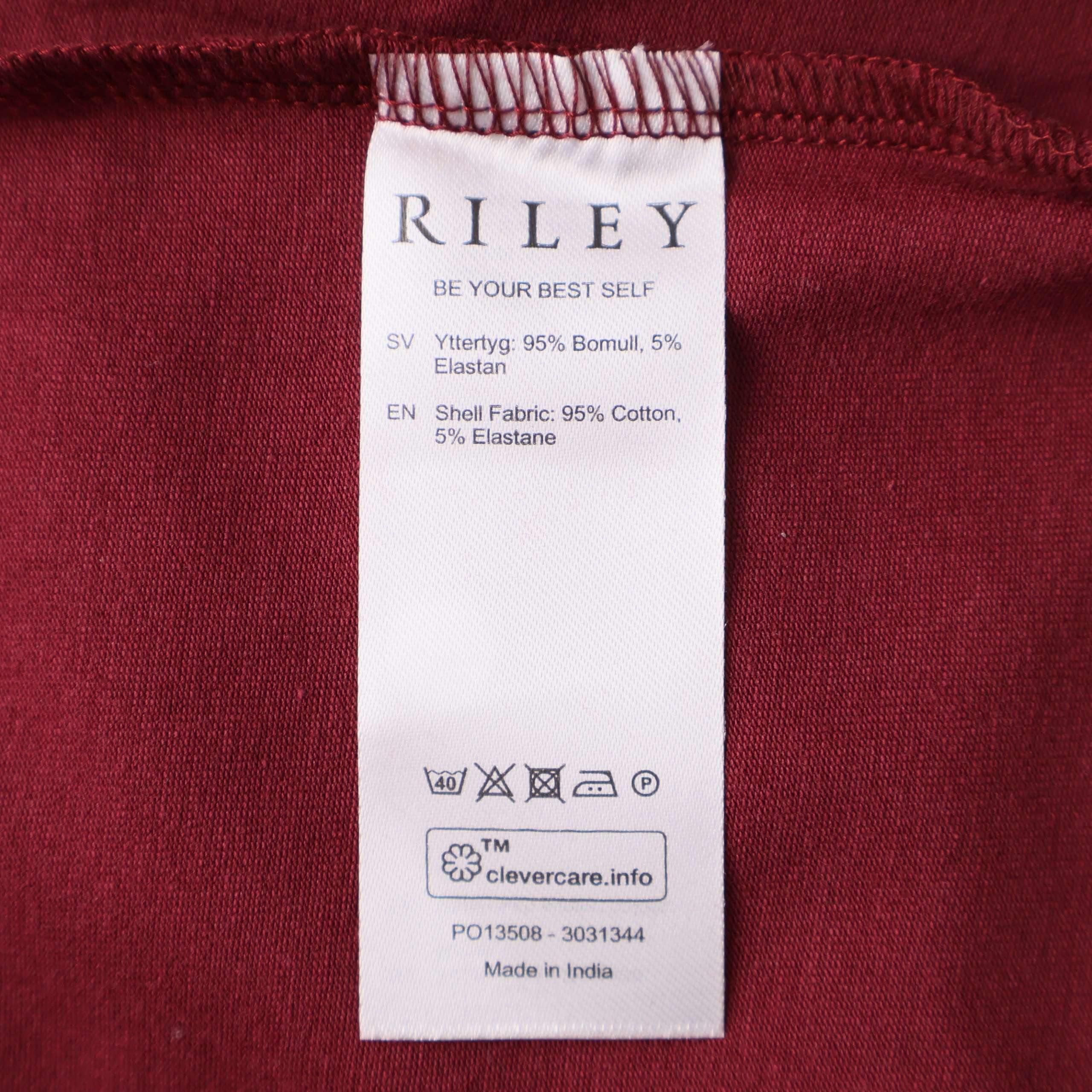 Den här t-shirten från Riley har en mjuk och slät känsla med klassisk rund hals. Enkel, stilren design i en vinröd färg som passar till mycket. T-shirten är tillverkad i bomull med inslag av elastan för extra stretch och komfort.