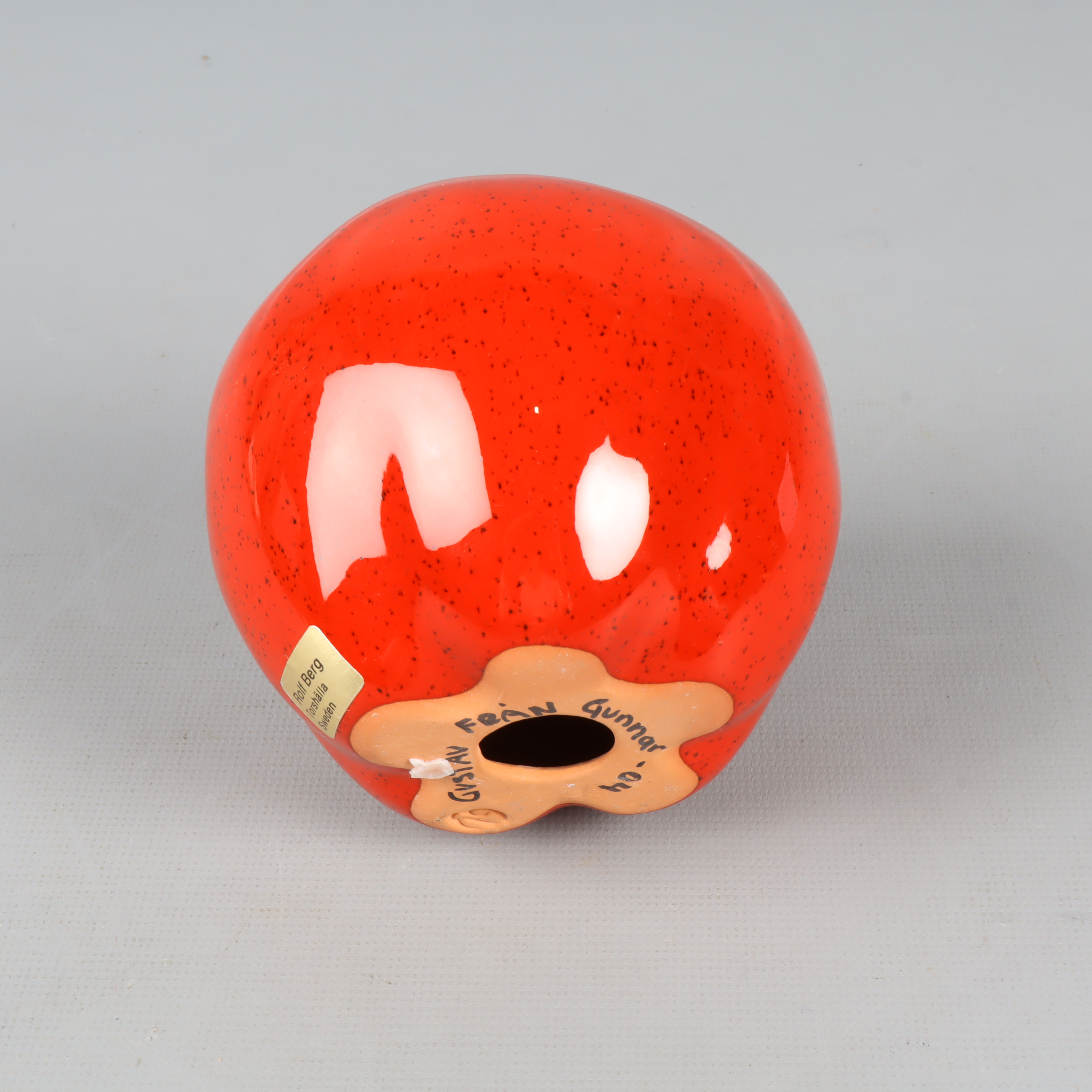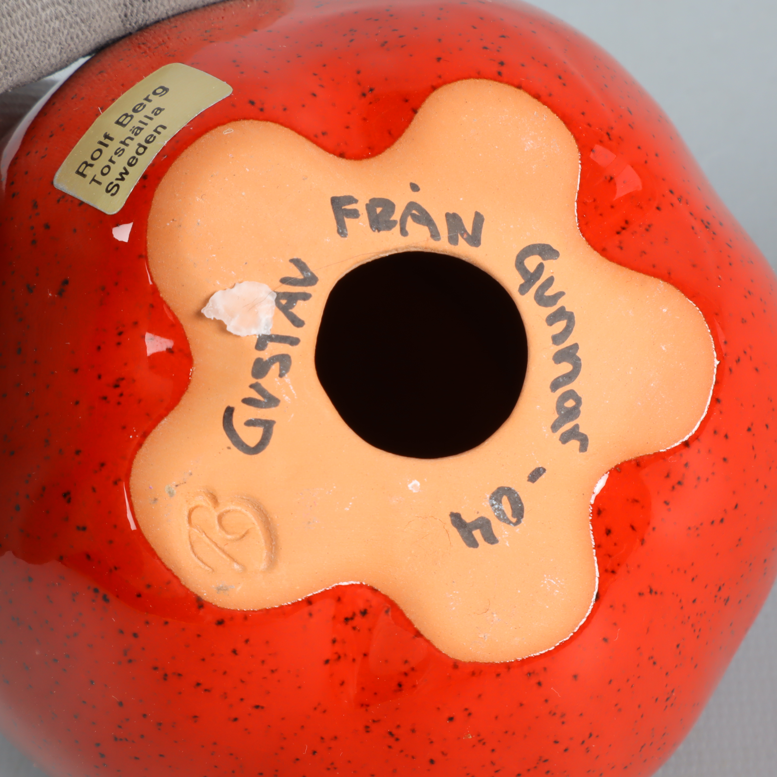 Ljuslykta i glaserad keramik med röd yta som ger ett färgstarkt intryck i rummet. Rundad form skapar en mjuk look med handgjord känsla och tydlig design från Rolf Berg. Övrigt: Namnad under.