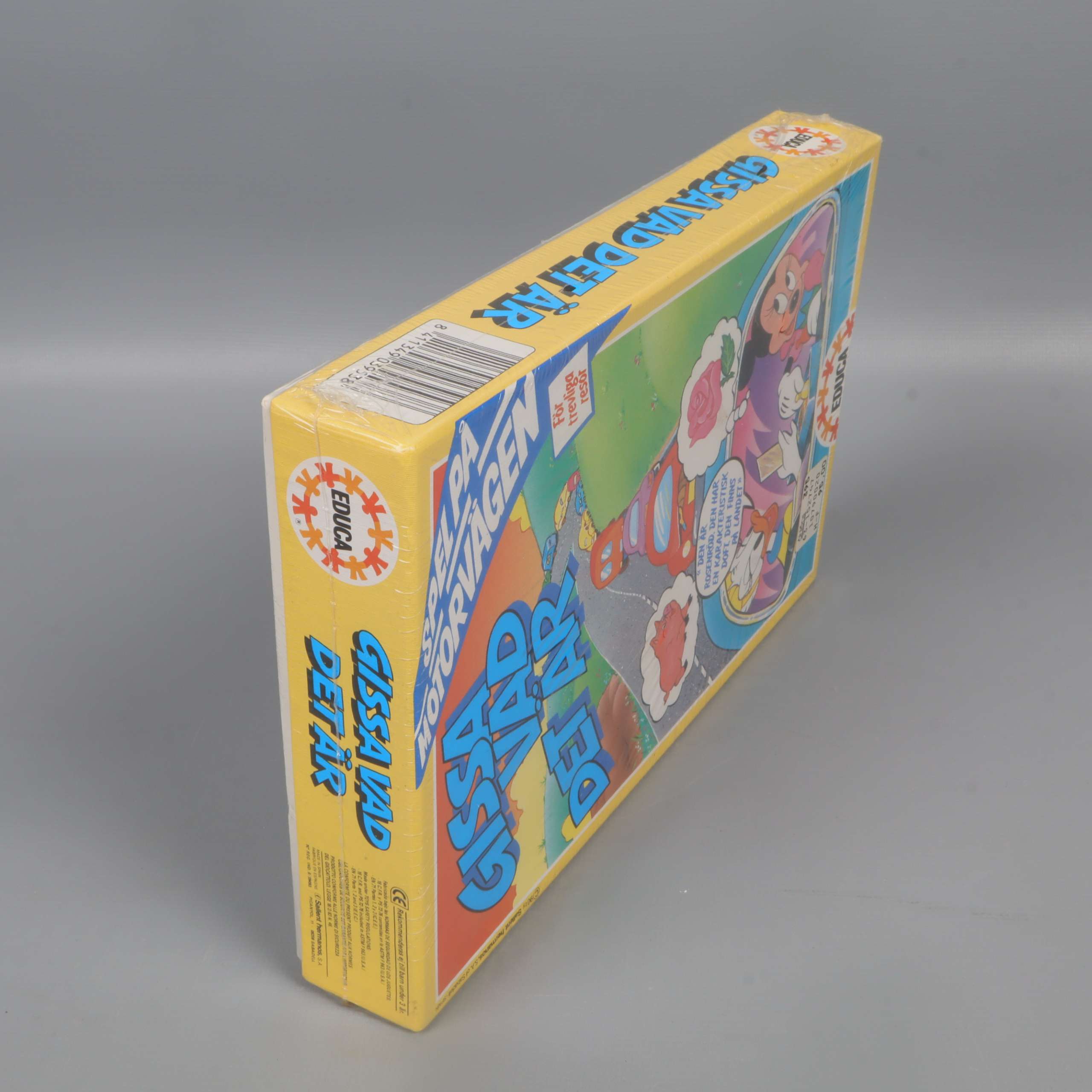 Ett färgglatt och lekfullt sällskapsspel i kompakt förpackning som bjuder på många skratt. Omslaget pryds av tydliga illustrationer och spelets innehåll består av 24 kort, poängtavla och färgade spelpjäser. Boxen har tryckt logotyp från Educa och baksidan finns tydliga beskrivningar på lättförståelig svenska. Perfekt för spelkvällar med vänner eller familj.