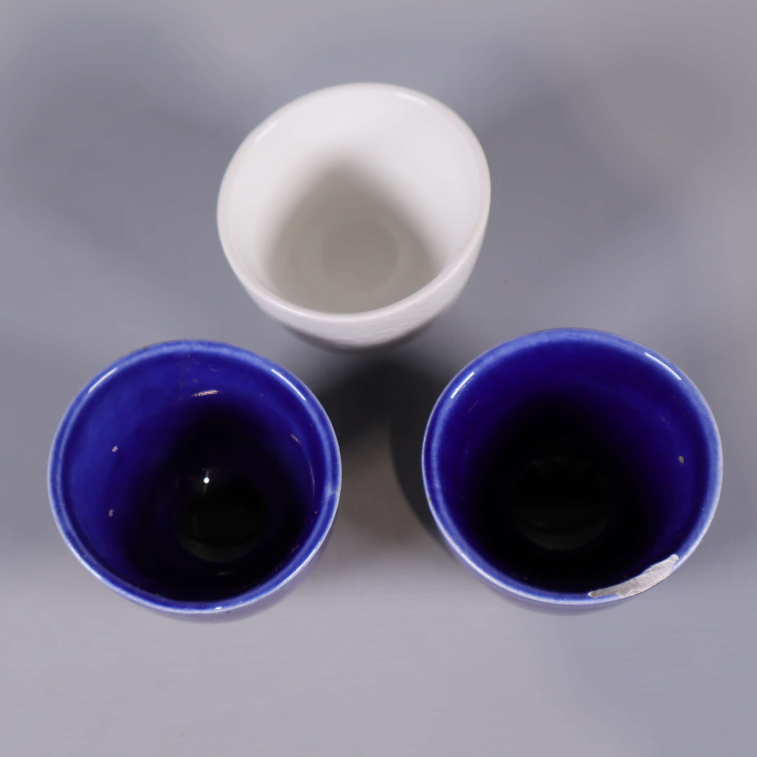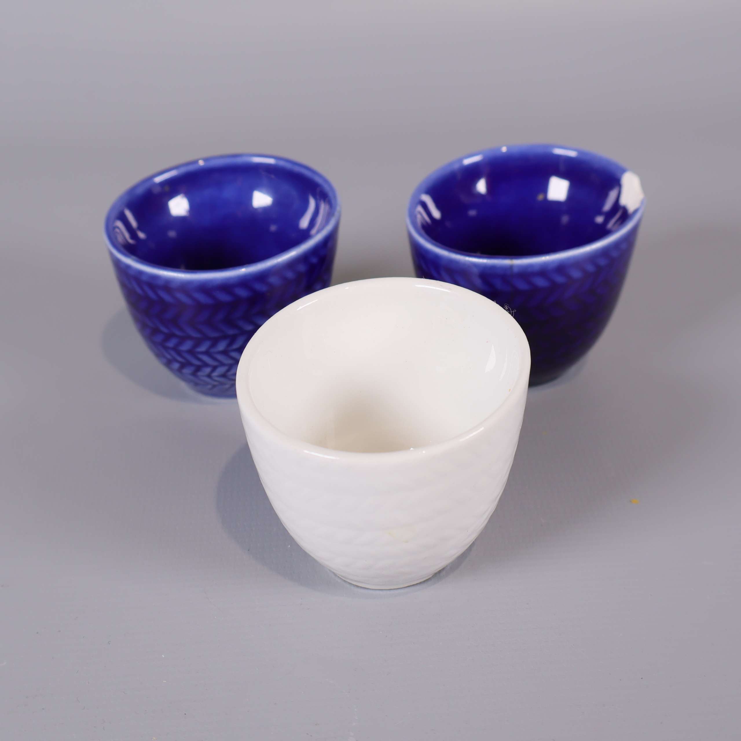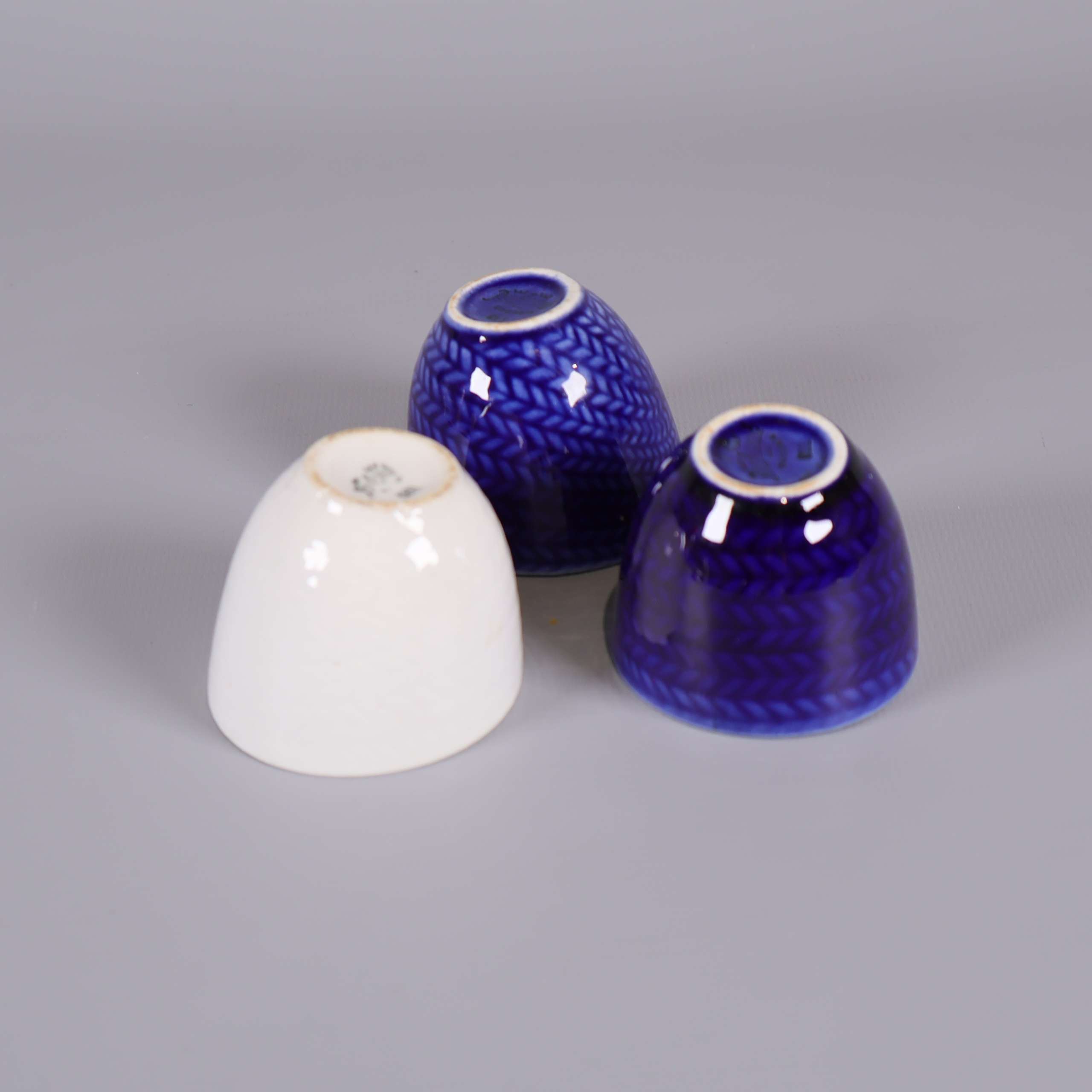 Rörstrand Rörstrand - Blå eld - Hertha Bengtson - Äggkoppar - 3-pack 159 kr Product variation Antal st Beskrivning Set om tre äggkoppar, två i djupblått och en i vitt porslin med diskret fiskbensmönster. Perfekt storlek för köksbruk och ett klassiskt formspråk. En blå kopp har en nagg, se närbild för detaljer. Visa all beskrivning Skick Använt skick Produkten har blivit använd och kan ha slitits eller ha mindre skador Läs mer om hur vi bedömer Dimensions Höjd: ca 4cm, Diameter: ca 5cm Färg Flerfärgad Material Porslin Varumärke Rörstrand Produkten är unik och finns enbart som 1 st i lager. Fri frakt på alla köp över 990 kr. 14 dagars ångerrät.