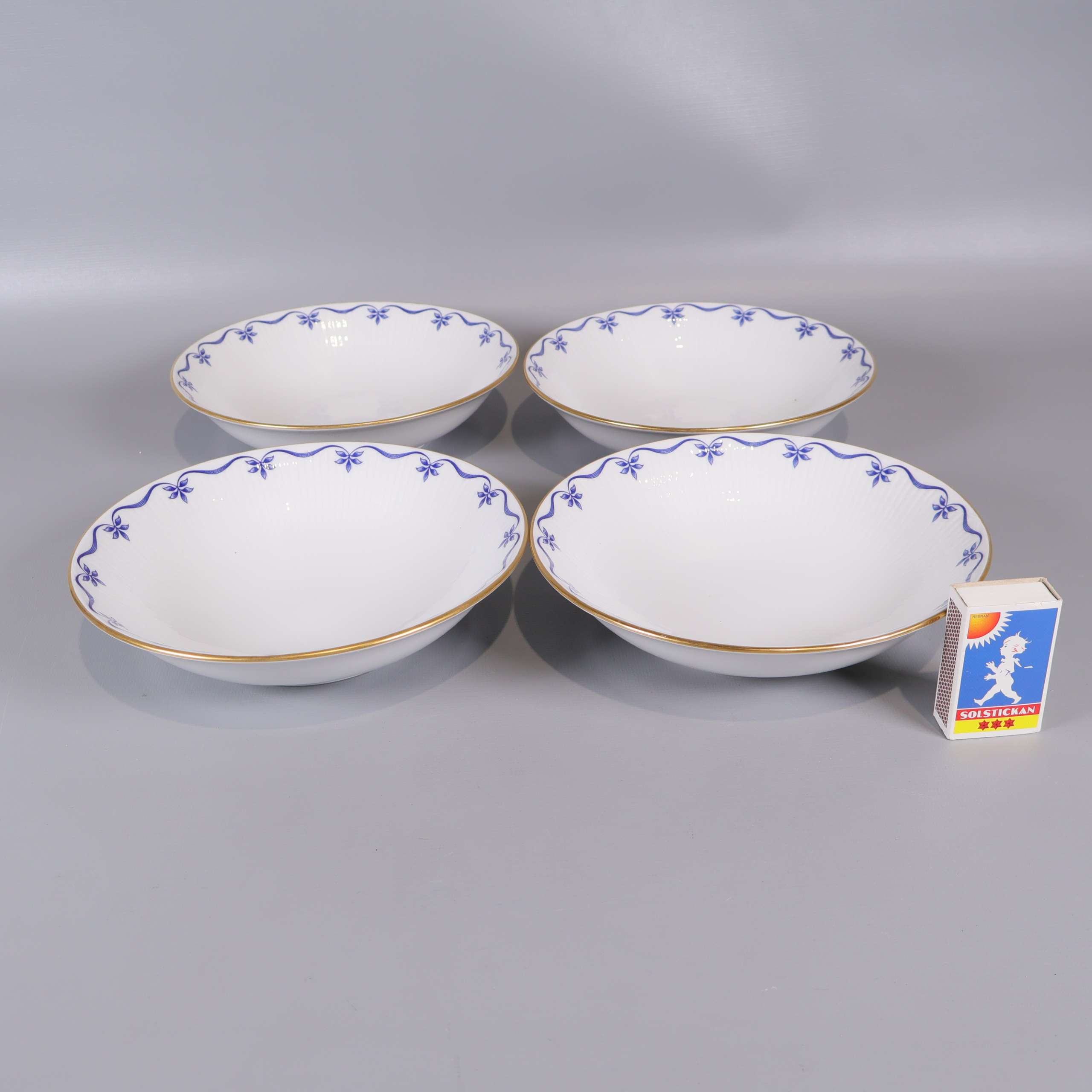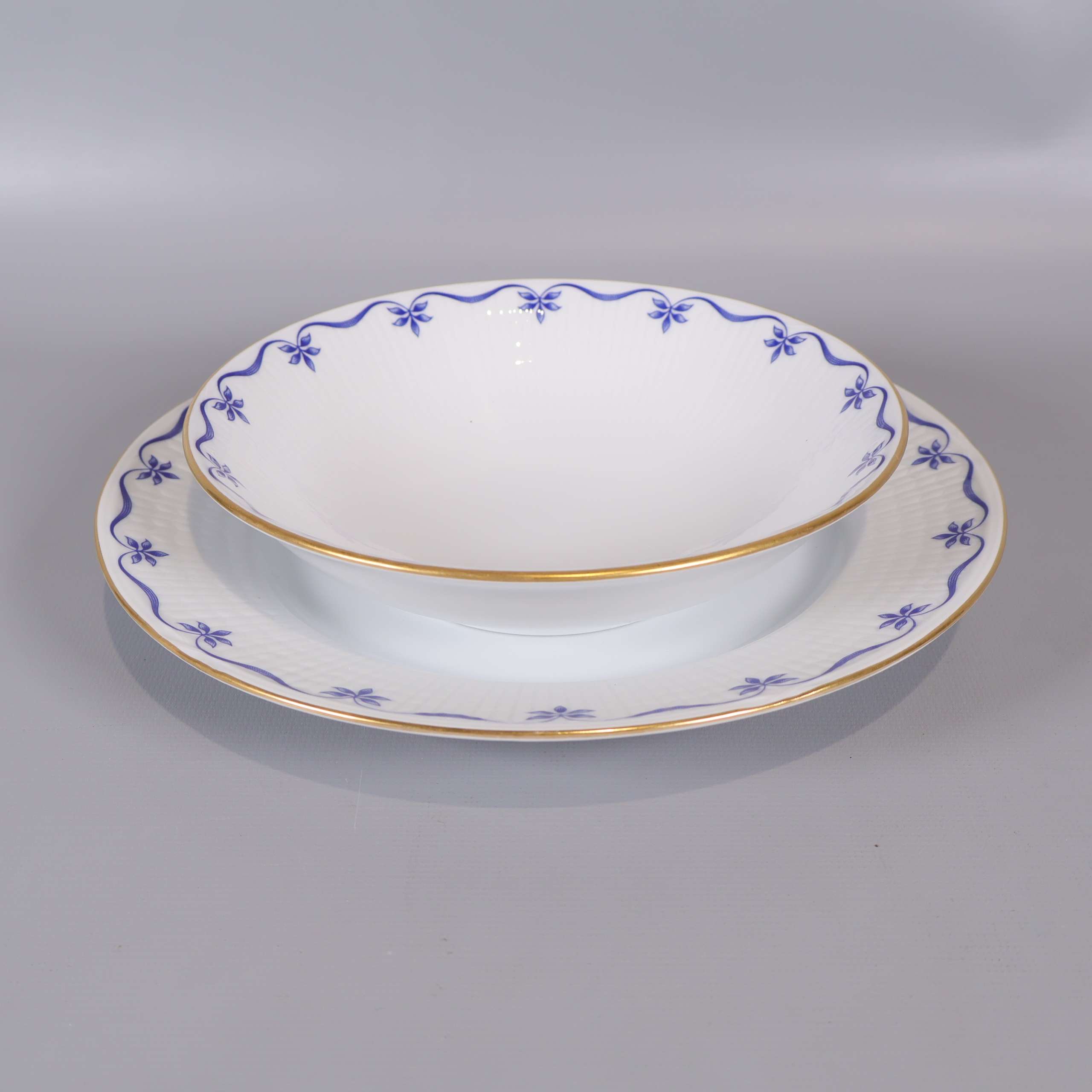 Elegant servisdelsset med klassisk blå dekor och guldkant. Tallrikarna och skålarna har en stilren, tidlös look som passar till både vardag och fest. Serien Mårbacka är signerad Pia Rönndahl för Rörstrand och ger en exklusiv känsla till ditt porslinsskåp.