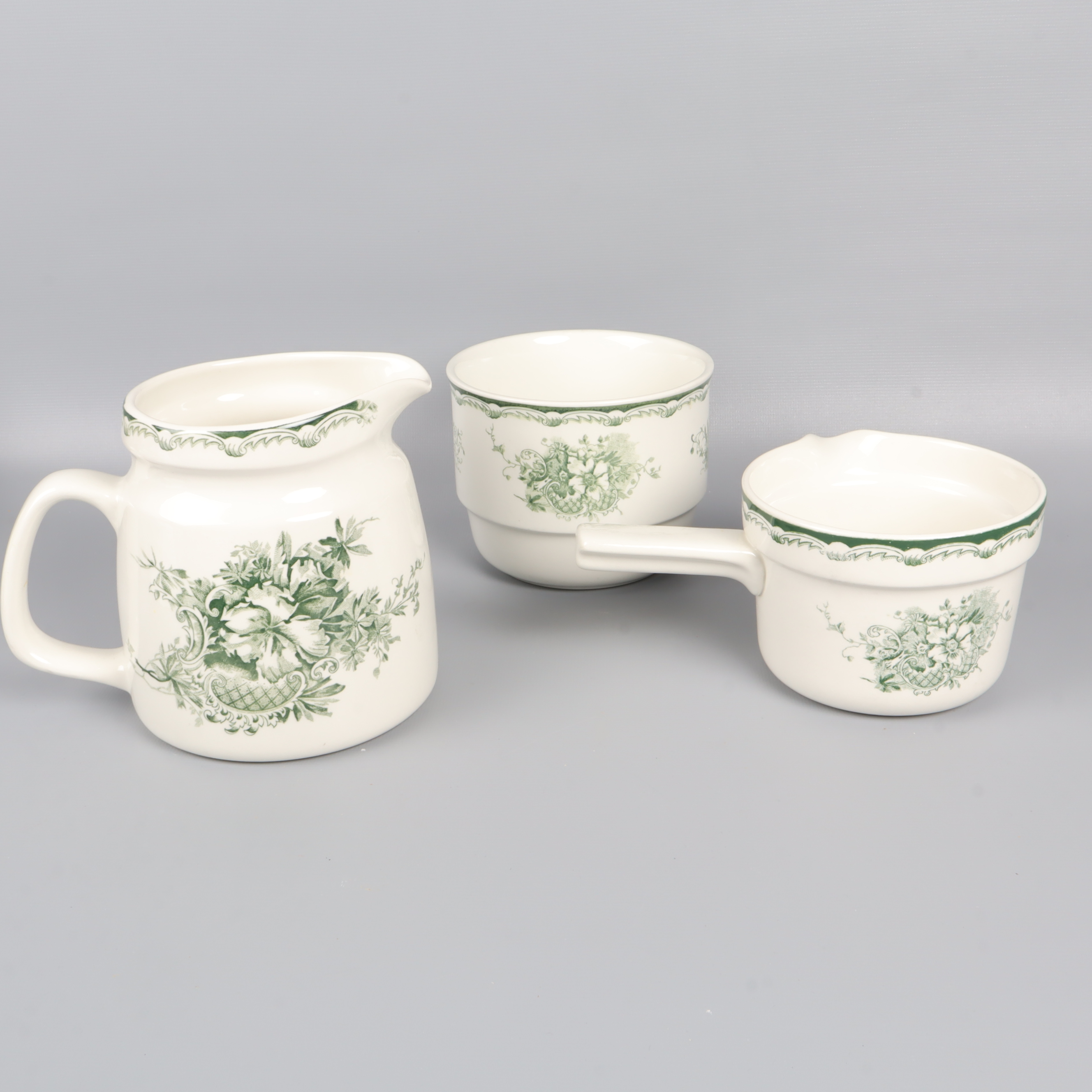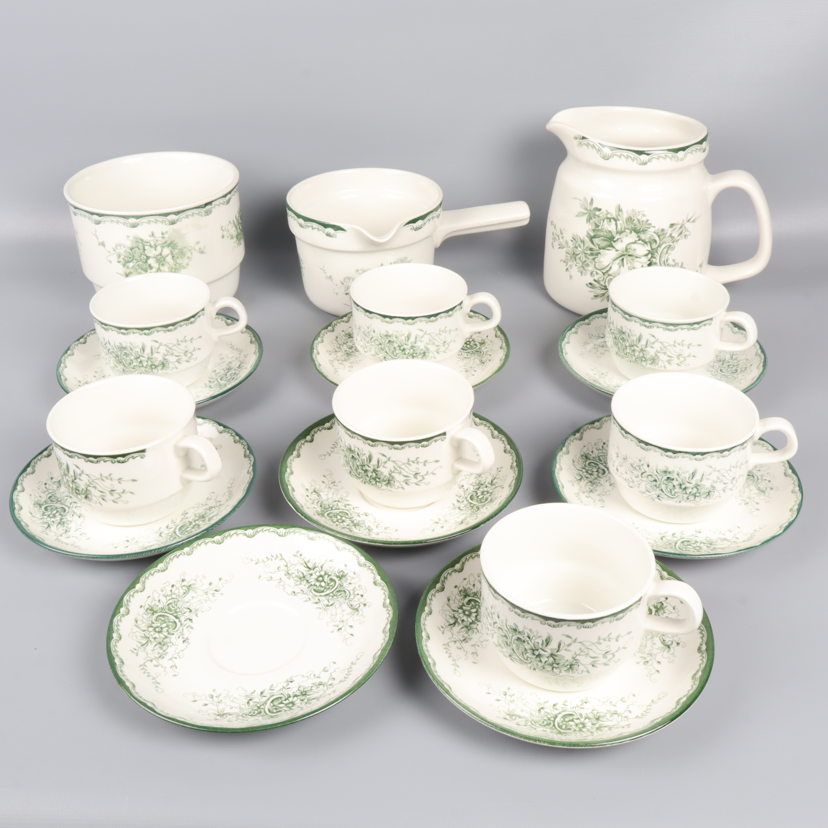Rörstrand Rörstrands Gröna Anna kaffeservis 18 Delar 599 kr Product variation Antal st Beskrivning Charmig servis från Rörstrand med klassiskt grön dekor på vit botten. Servisen består av koppar, fat och kannor, perfekt för en fika med vintage vibe. Visa all beskrivning Detaljer Höjd: ca Koppar: 6cm, Skål: 10cm, Kanna: 14cm, Gräddkanna: 8cmDiameter: ca Koppar: 6cm, Skål: 13cm, Fat: 13cm Skick Mycket gott skick Produkten är sparsamt använd, är av fin kvalitet och ska inte ha några skador eller förslitningar. Läs mer om hur vi bedömer Dimensions Höjd: ca Koppar: 6cm, Skål: 10cm, Kanna: 14cm, Gräddkanna: 8cm Diameter: ca Koppar: 6cm, Skål: 13cm, Fat: 13cm Färg Naturvit Material Porslin Varumärke Rörstrand Produkten är unik och finns enbart som 1 st i lager. Fri frakt på alla köp över 990 kr. 14 dagars ångerrät.