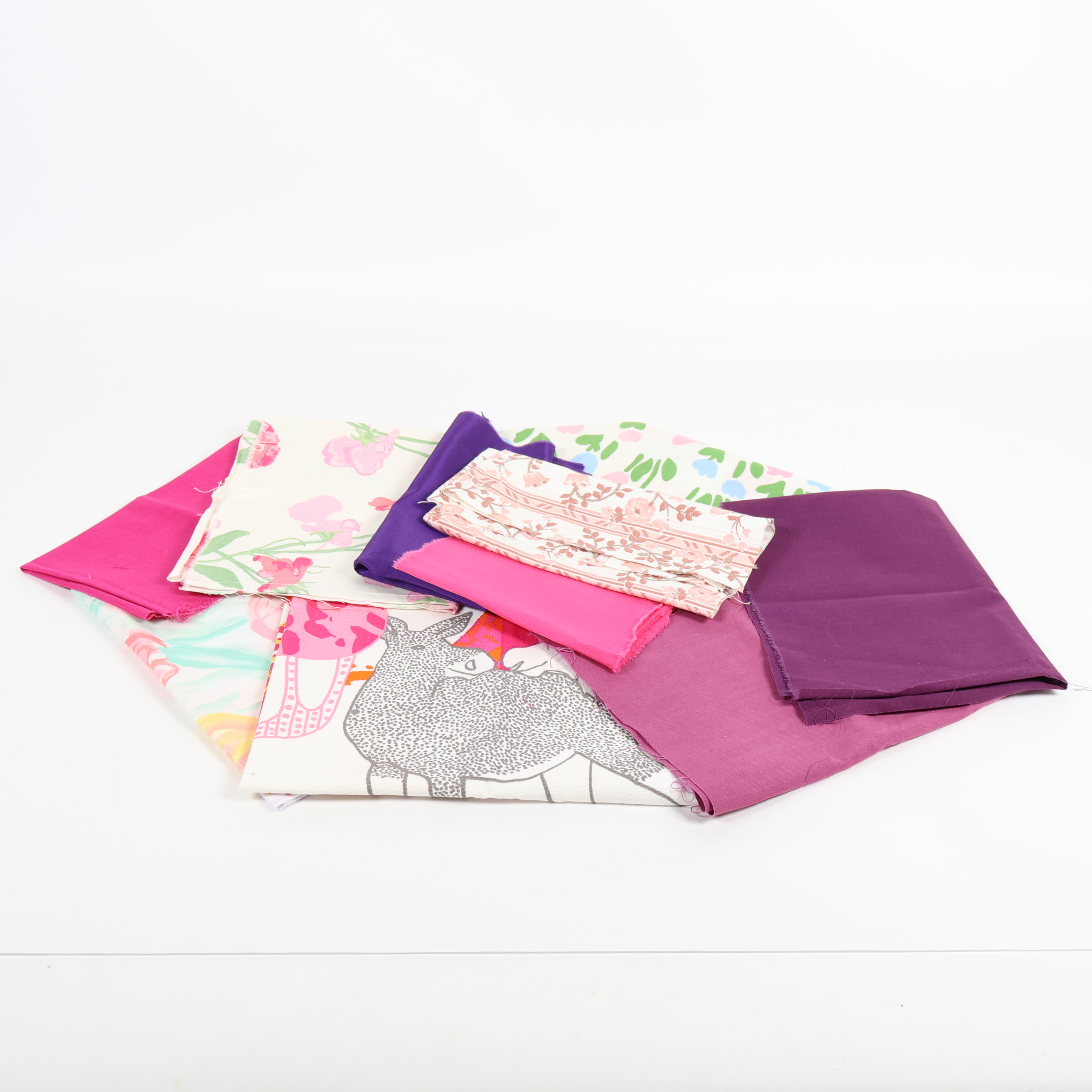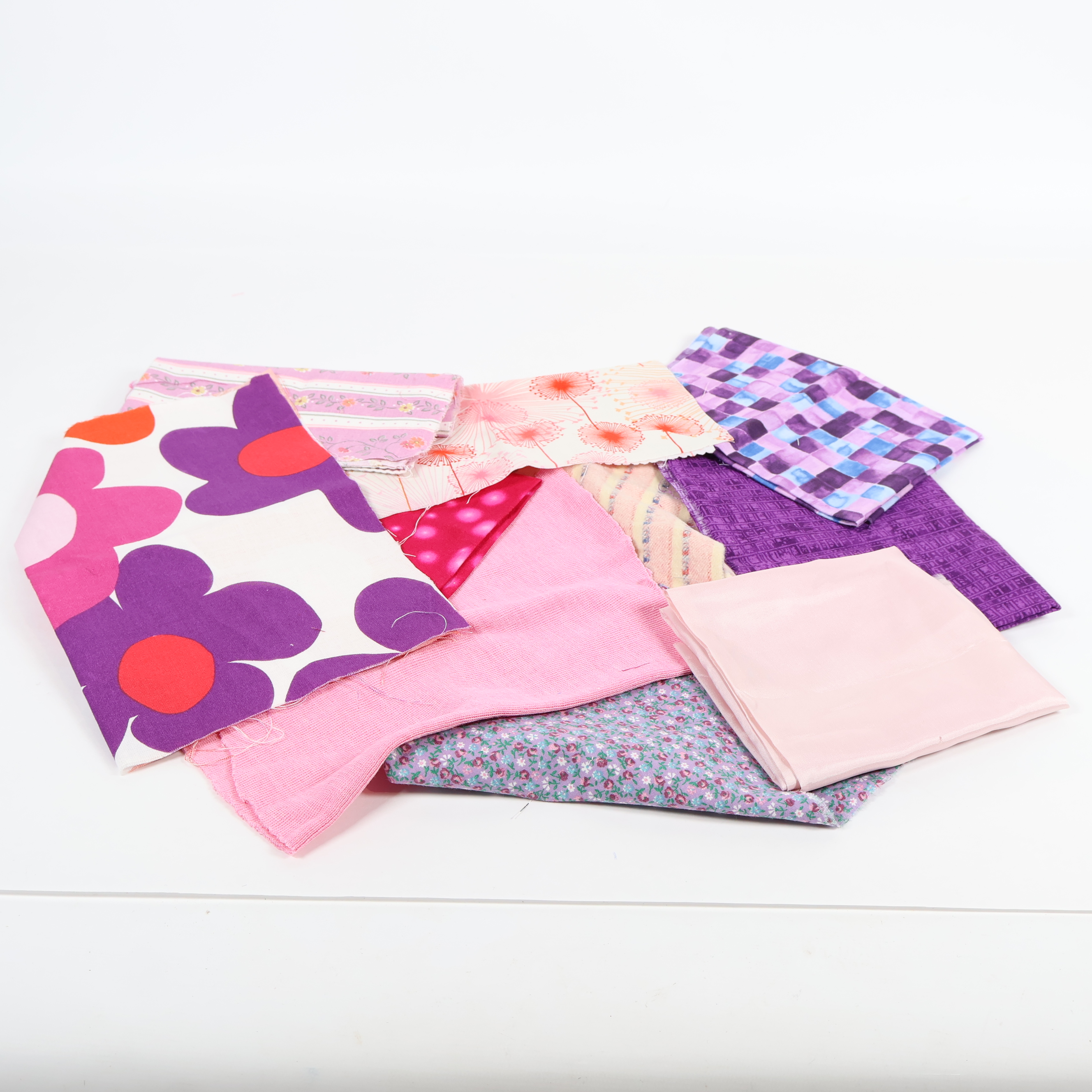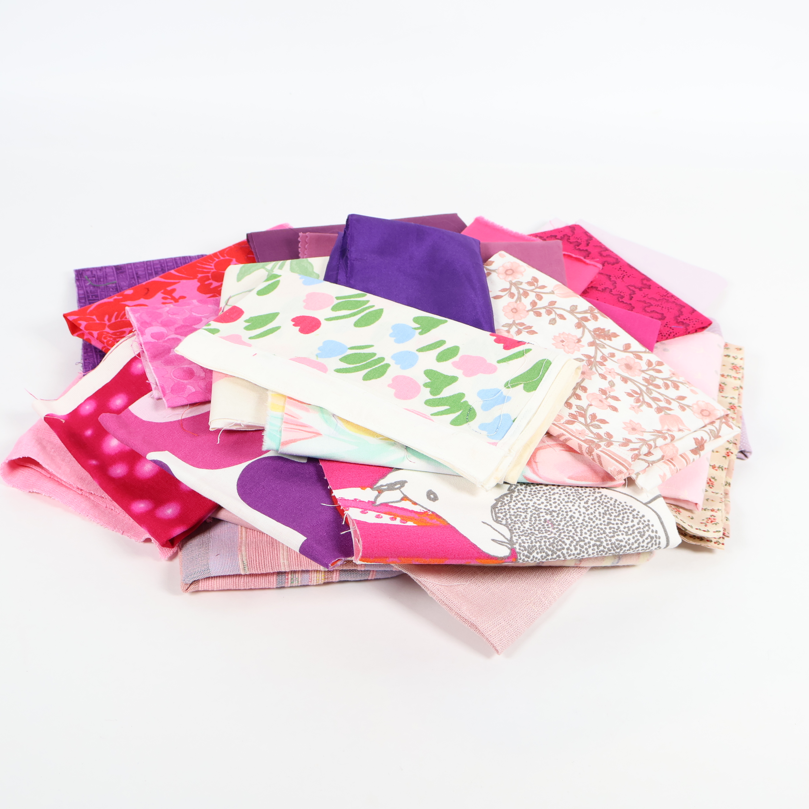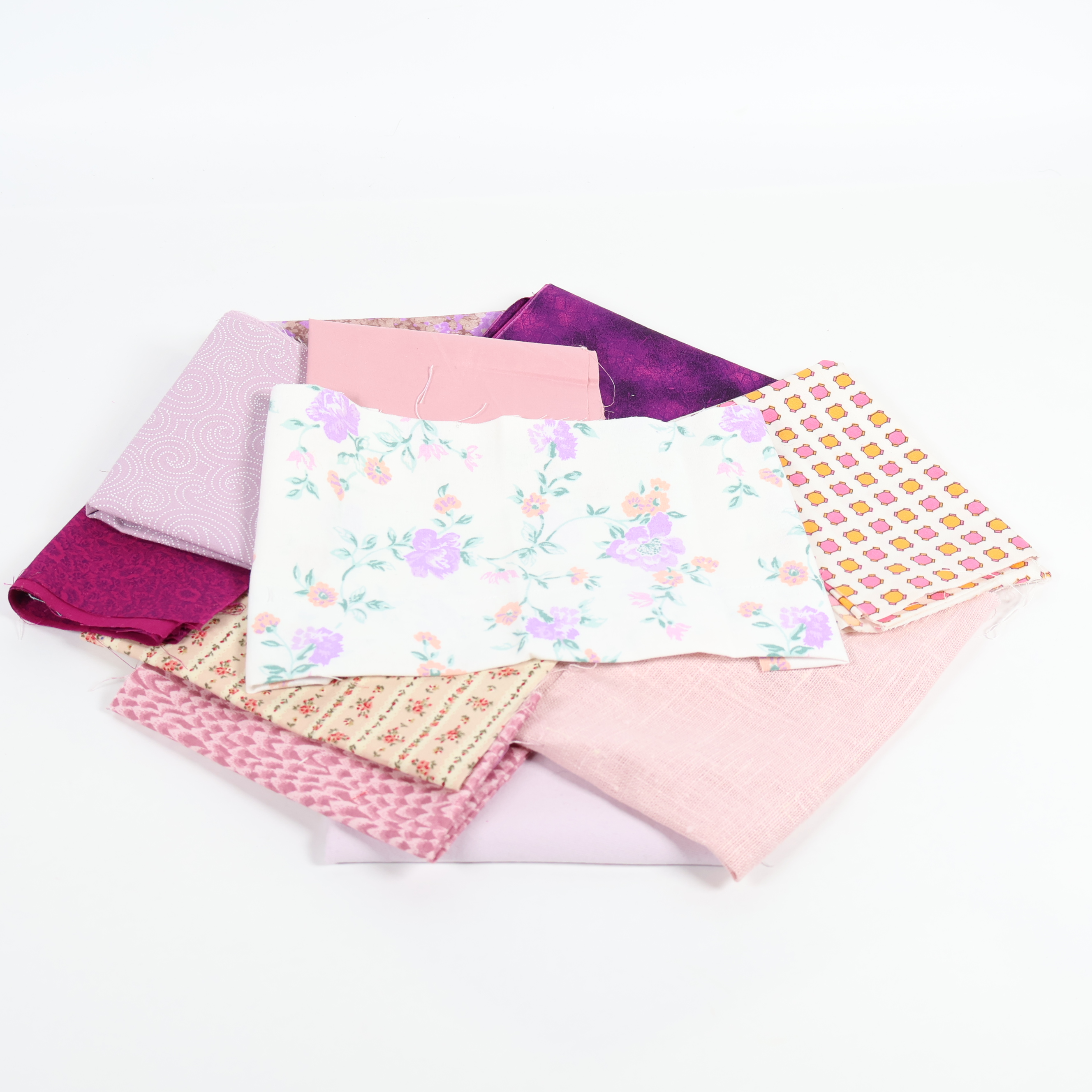 Ett härligt tygpaket med flera olika färger och mönster i rosa, lila och pastelltoner. Innehåller både enfärgade och mönstrade tyger med blommor, grafiska former och lekfulla detaljer. Perfekt för dig som vill ha variation och kreativ frihet när du skapar. Tygerna levereras i ett praktiskt bunt för enkel översikt.