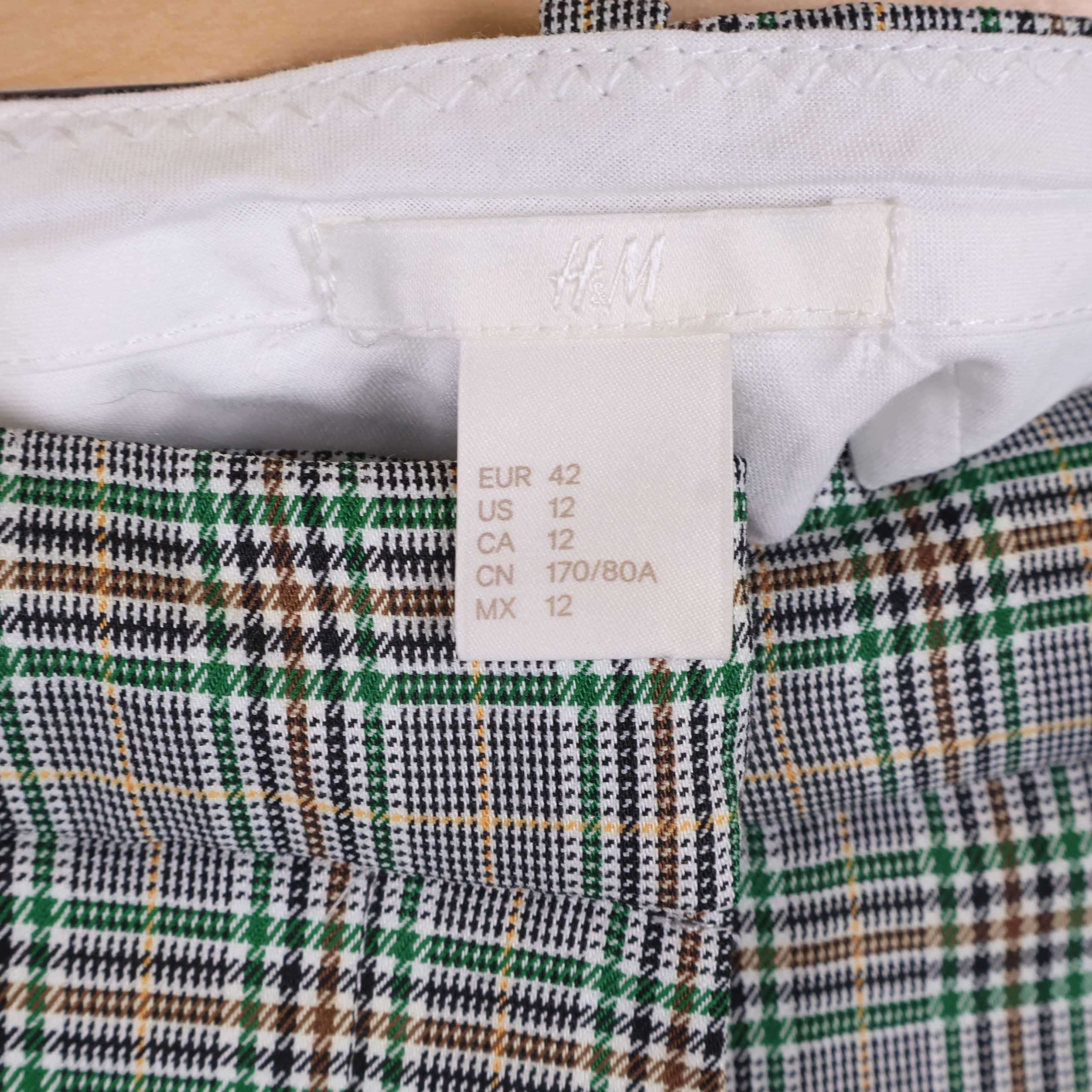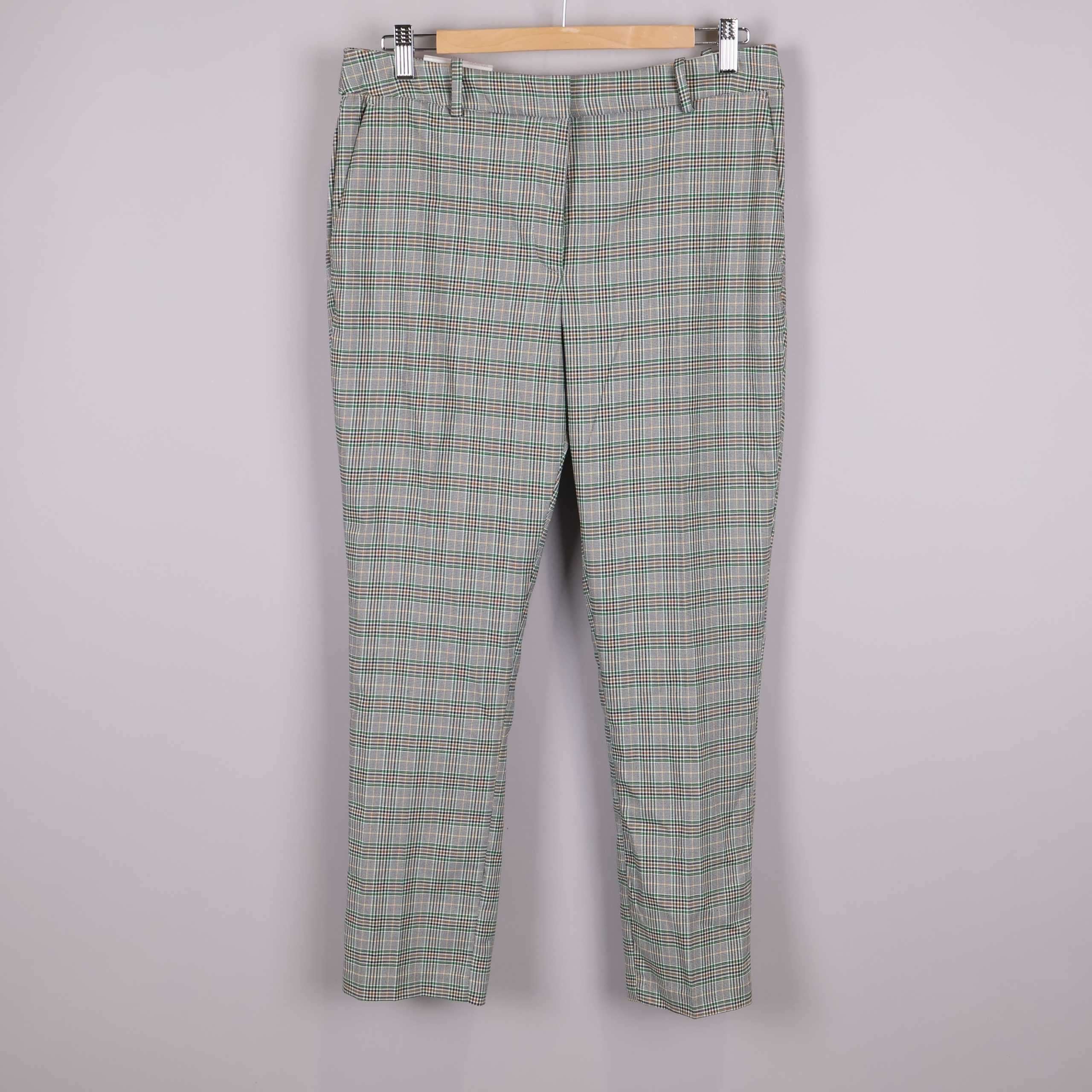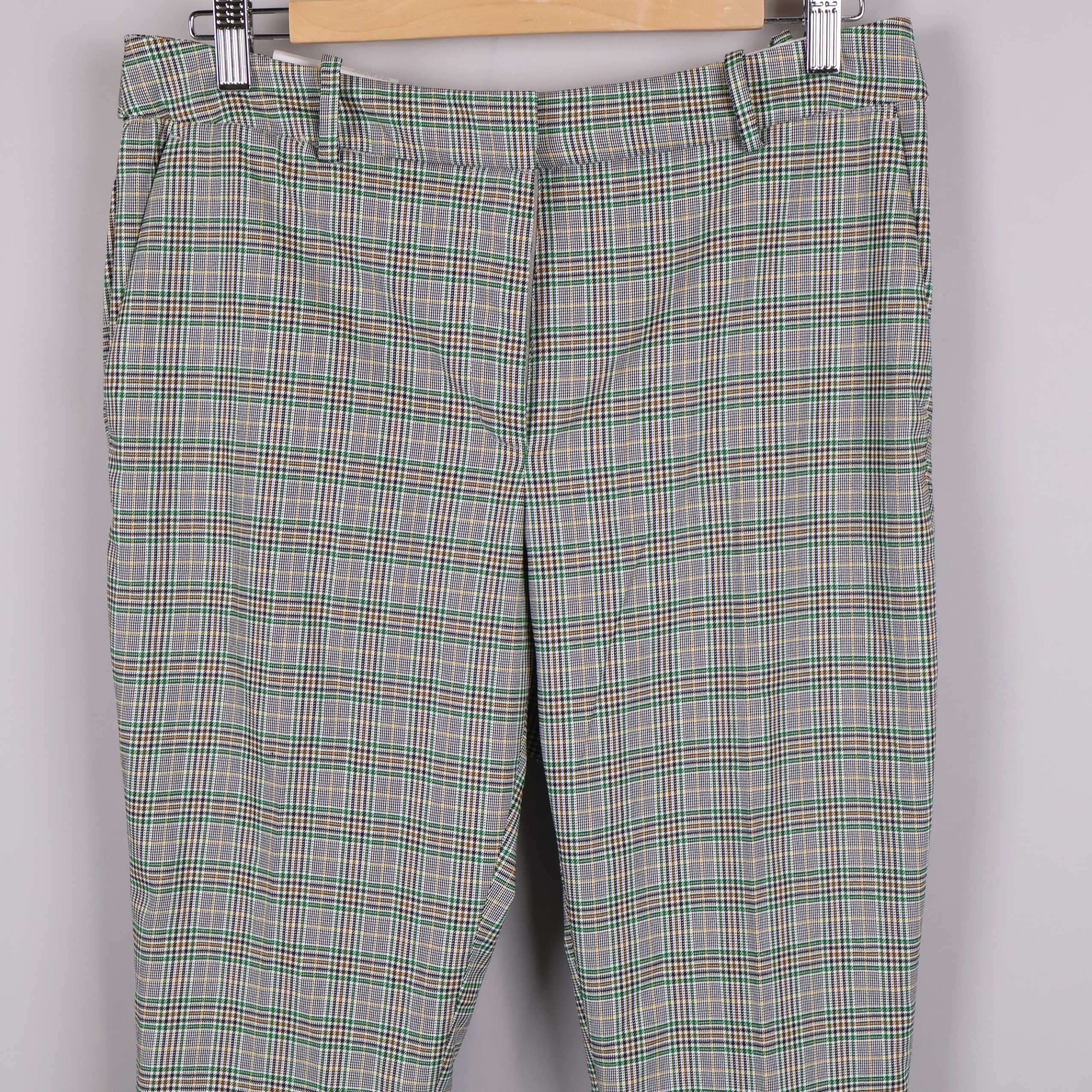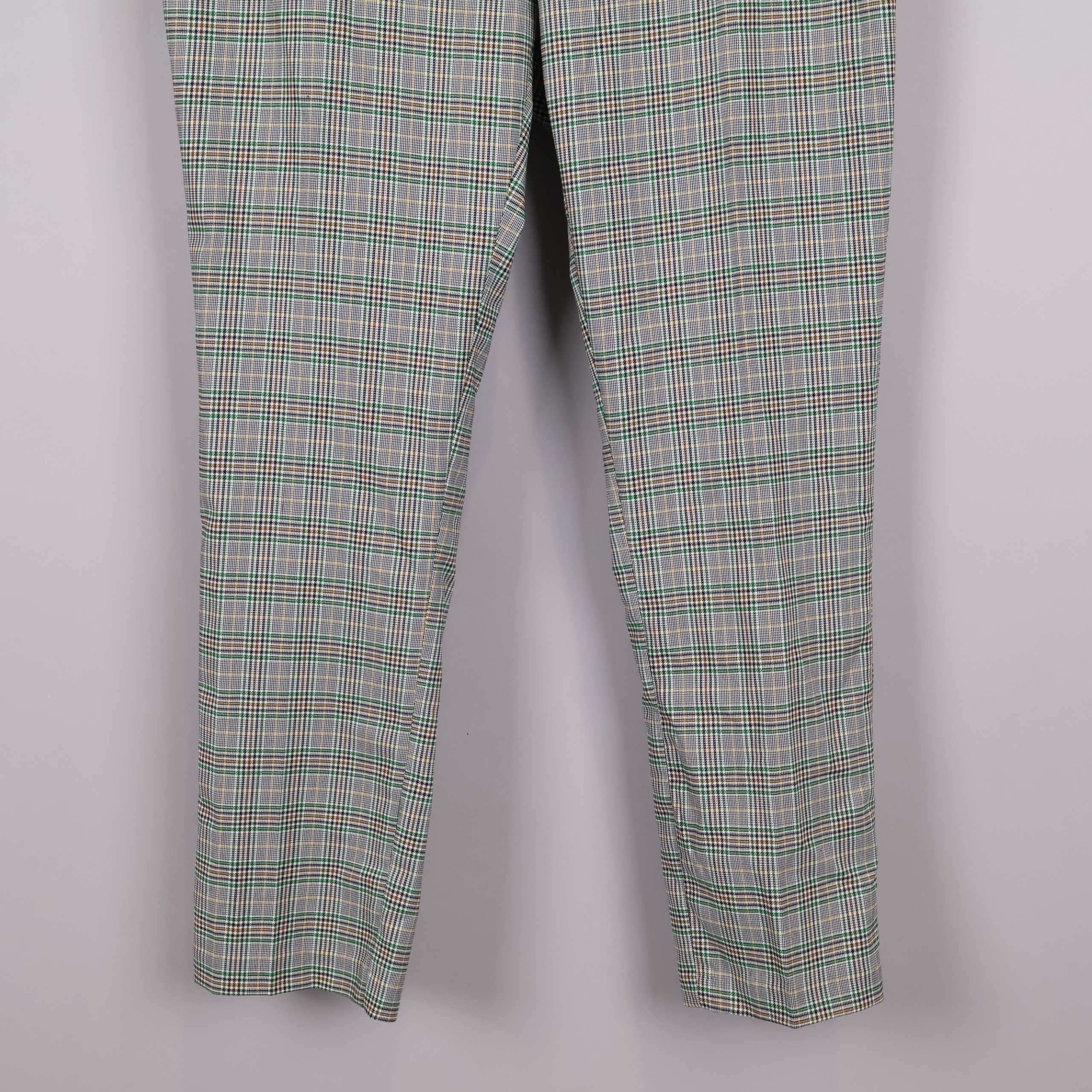 Rutiga slacks med klassisk regular waist och ankelkort längd för en modern touch. Tyget har en snygg rutdesign med inslag av grönt, brunt och vitt som ger byxan en stilfull och samtidigt avslappnad känsla.