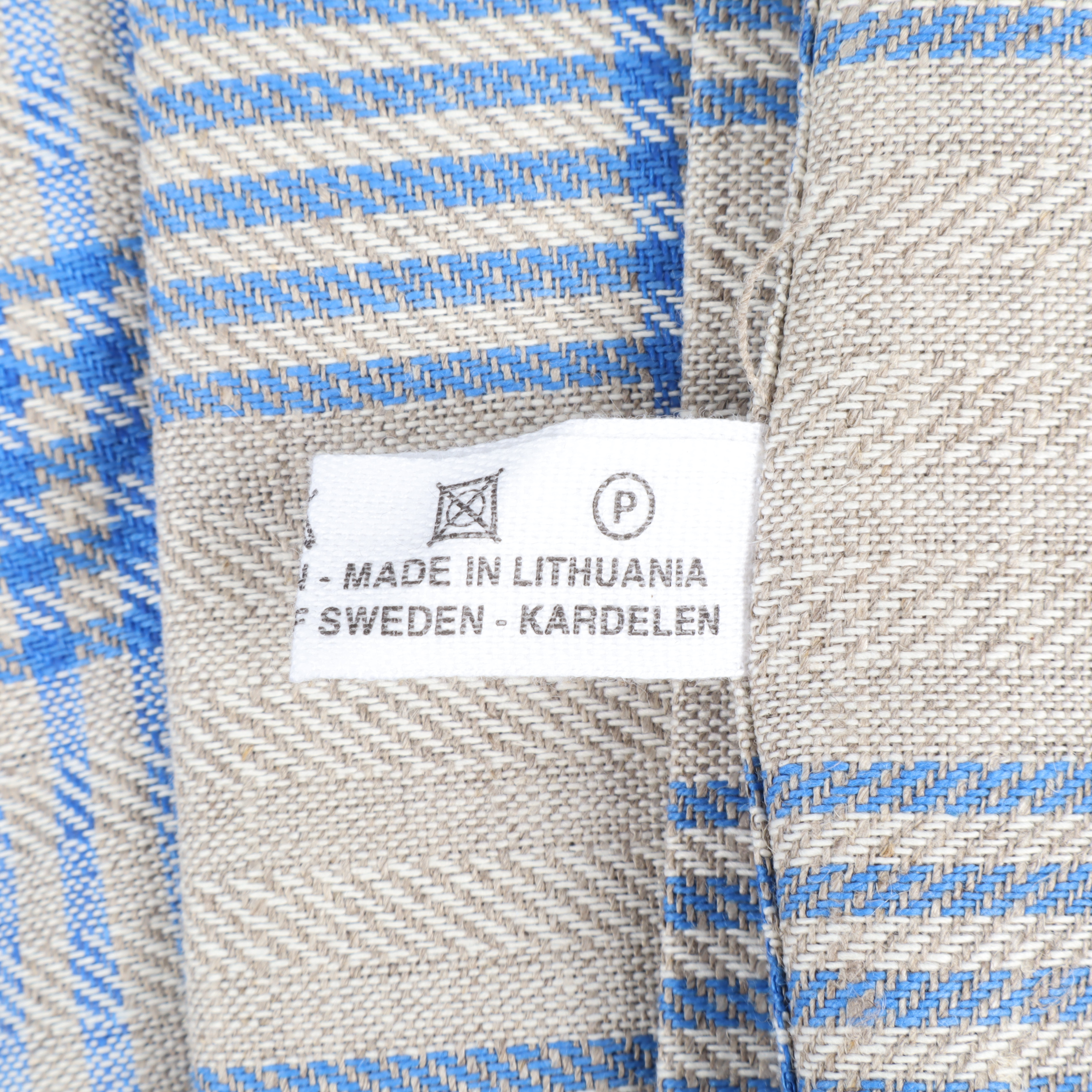 Kardelen Rutigt bordsduk i linneblandning 199 kr Product variation Antal st Beskrivning Denna duk har en klassisk rutdesign i neutrala och blå toner. Tillverkad i en mjuk blandning av linne och bomull för en naturlig känsla som passar både vardag och fest. Ger en elegant men avslappnad look till alla bord. Visa all beskrivning Detaljer Längd: 152 cm Skick Nytt skick Produkten är som ny. Kan till och med ha orginalprislapp kvar eller ligga i originalförpackning. Läs mer om hur vi bedömer Dimensions Längd: 152 cm Bredd: 149 cm Färg Beige Material Linne Varumärke Kardelen Produkten är unik och finns enbart som 1 st i lager. Fri frakt på alla köp över 990 kr. 14 dagars ångerrät.