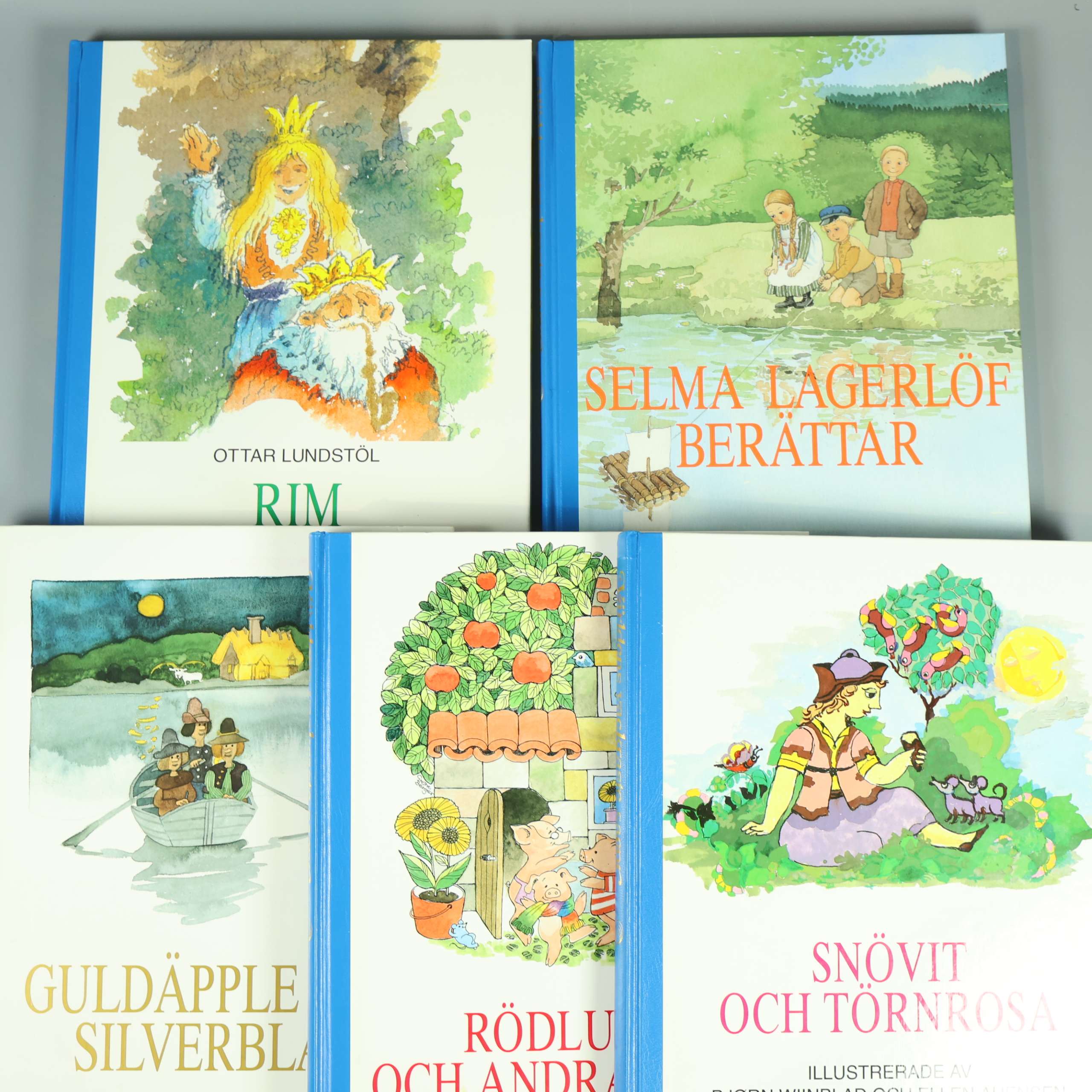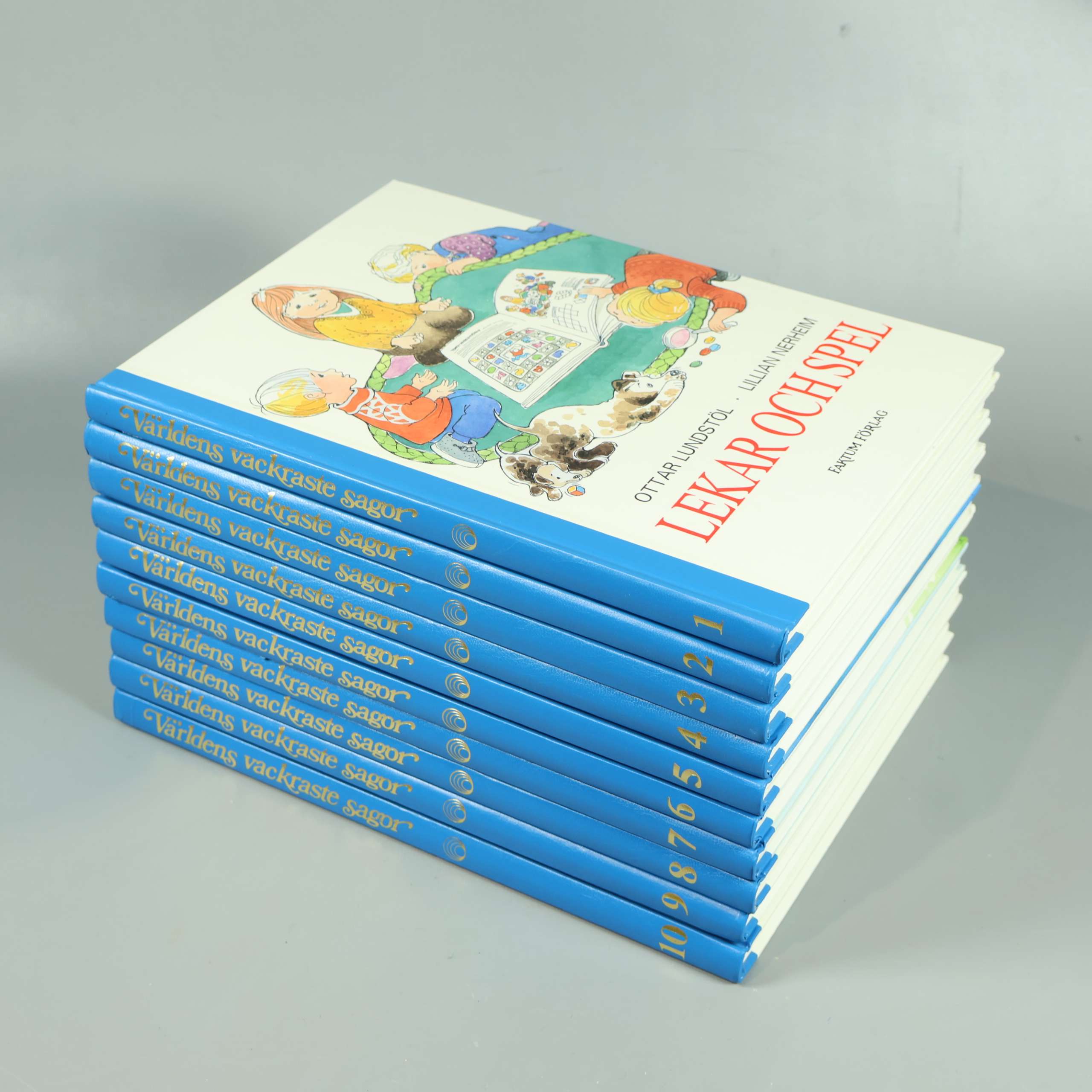 Upptäck ett charmigt bokpaket med tio sagoböcker i enhetlig design med blå ryggar och färgglada illustrationer på omslagen. Böckerna bjuder på klassiska sagor, lekar och rim, perfekta för dig som gillar högläsning eller samlar vackra barnböcker. Paketen innehåller både välkända sagosamlingar och lekfulla berättelser, alla i ett format som är lätt att bläddra i.