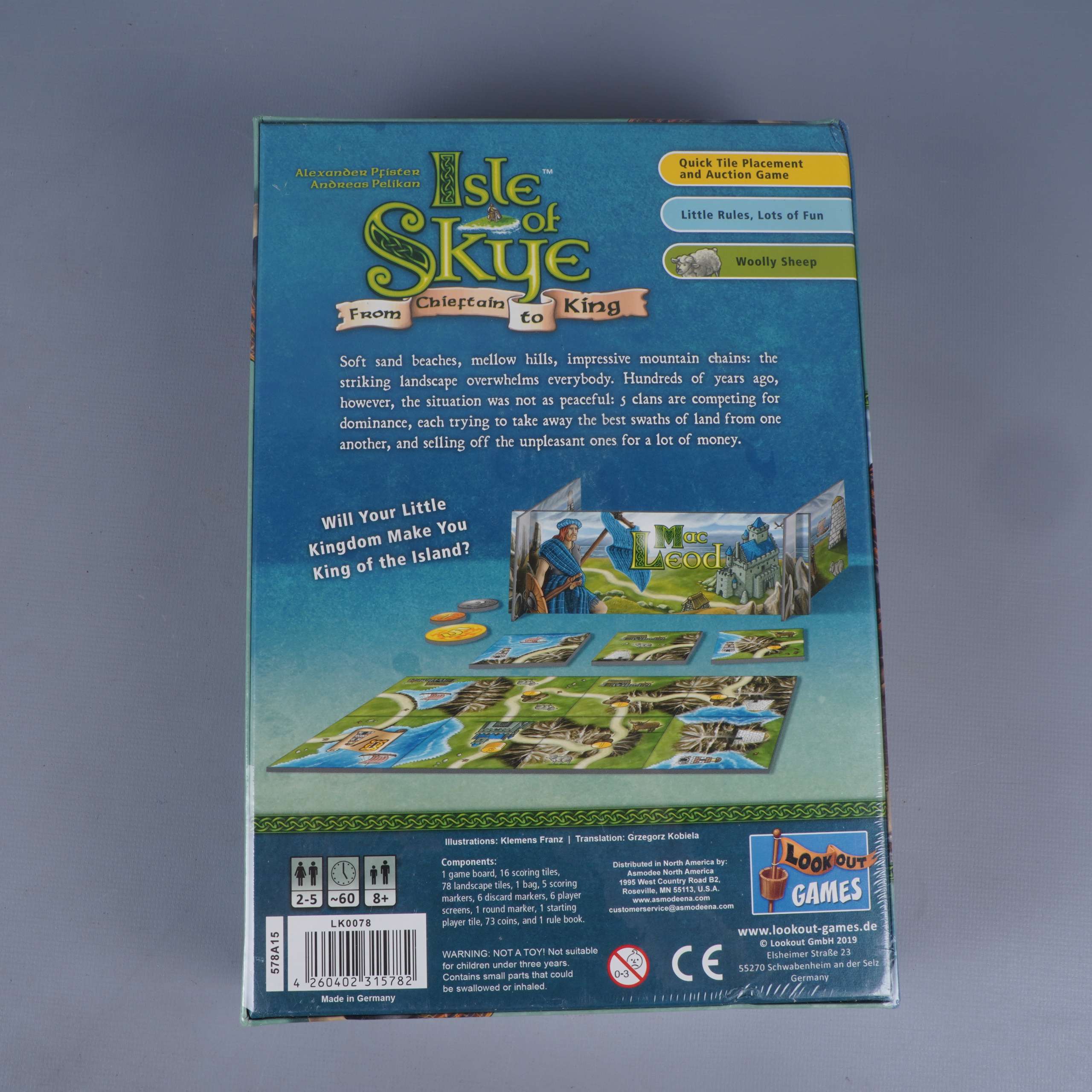 Isle of Skye är ett strategiskt och färgglatt sällskapsspel med keltisk känsla och handmålat omslag. Spelboxen har tydliga illustrationer och symboler som gör det lätt att förstå antalet spelare och rekommenderad ålder. Perfekt för dig som gillar taktiska spel med ett klassiskt men ändå lekfullt uttryck.