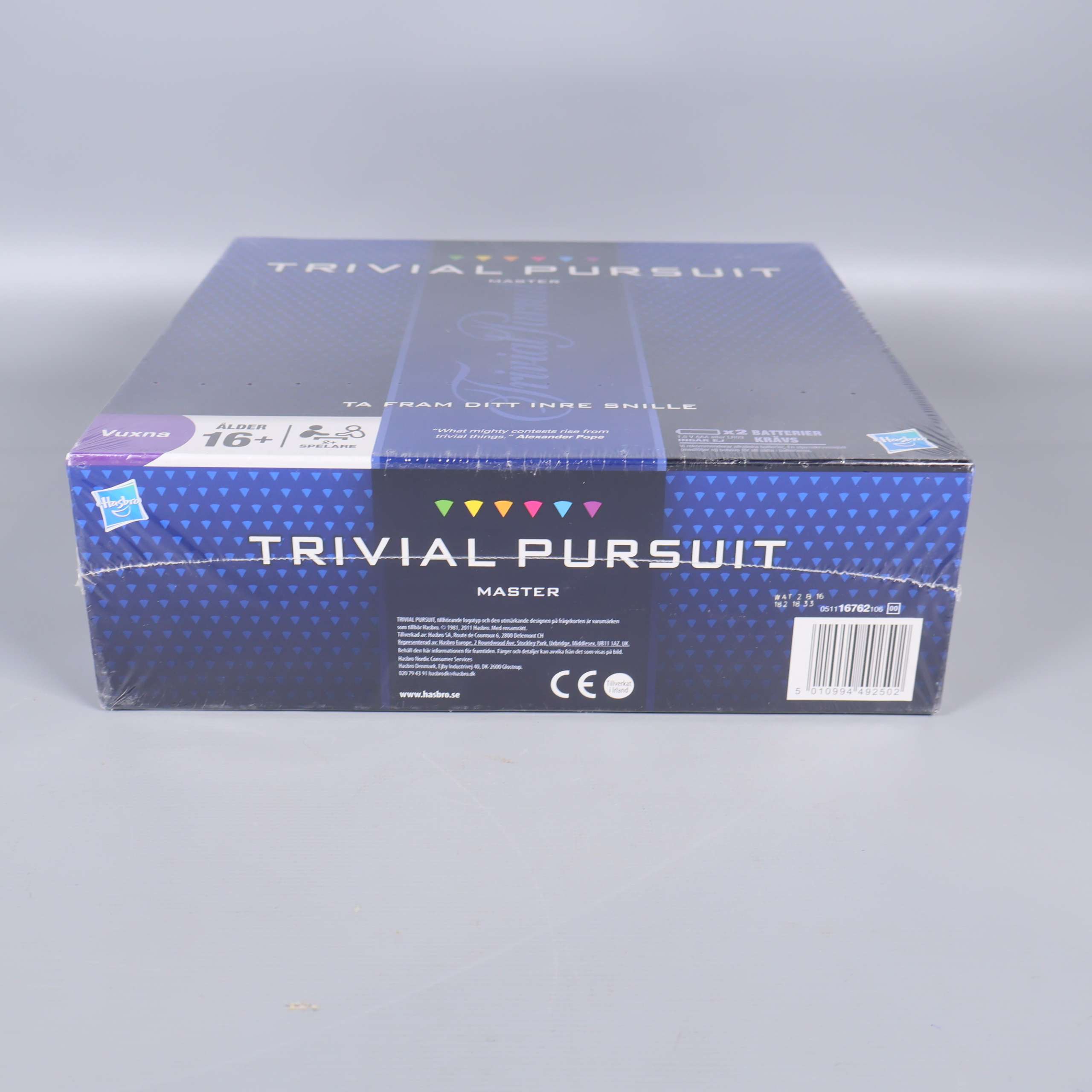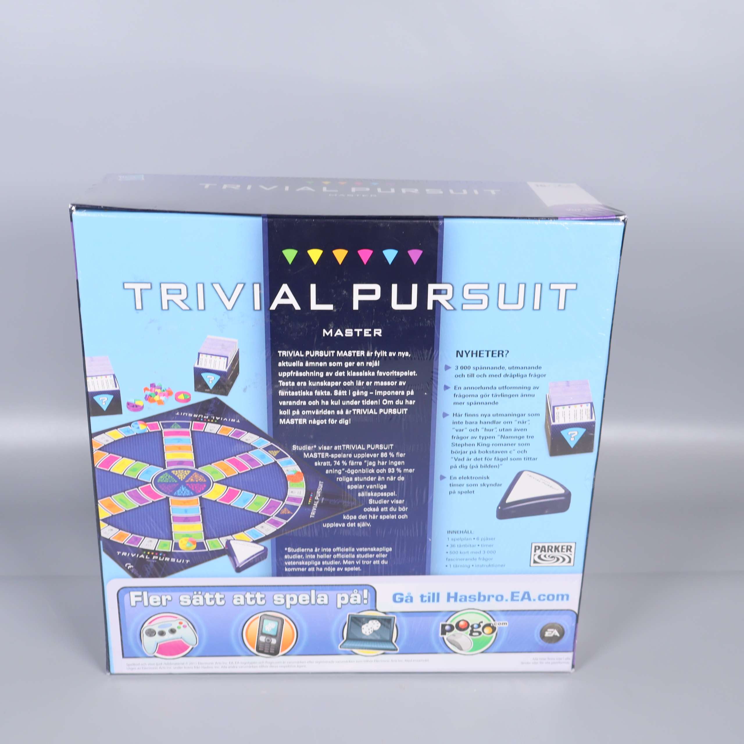 Hasbro Sällskapsspel - Trivial Pursuit Master 129 kr Product variation Antal st Beskrivning Trivial Pursuit Master är ett populärt sällskapsspel med modern design och högkvalitativ låda i blå och lila toner. Visa all beskrivning Skick Nytt skick Produkten är som ny. Kan till och med ha orginalprislapp kvar eller ligga i originalförpackning. Läs mer om hur vi bedömer Number of players 2+ Age limit 16 Varumärke Hasbro Produkten är unik och finns enbart som 1 st i lager. Fri frakt på alla köp över 990 kr. 14 dagars ångerrät.