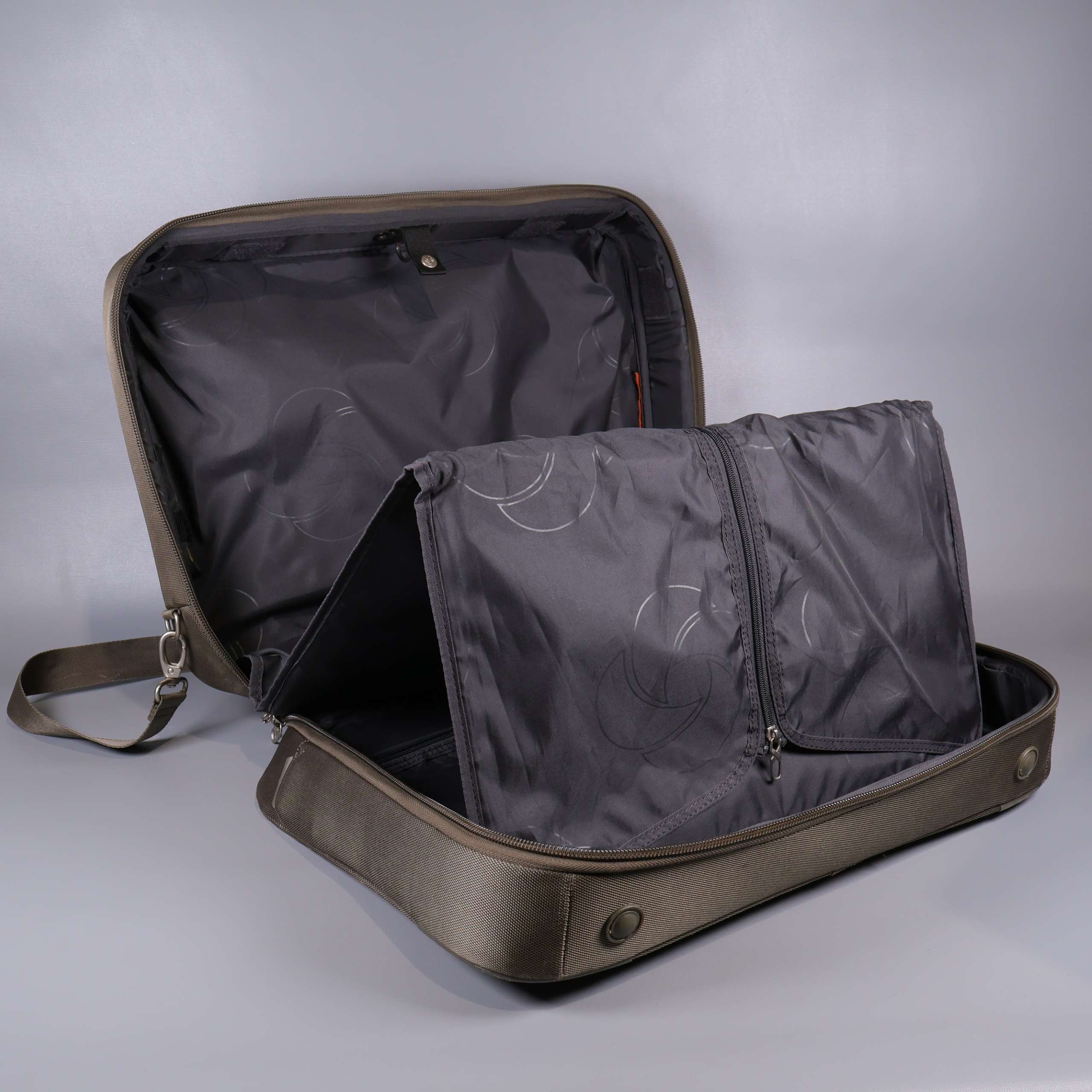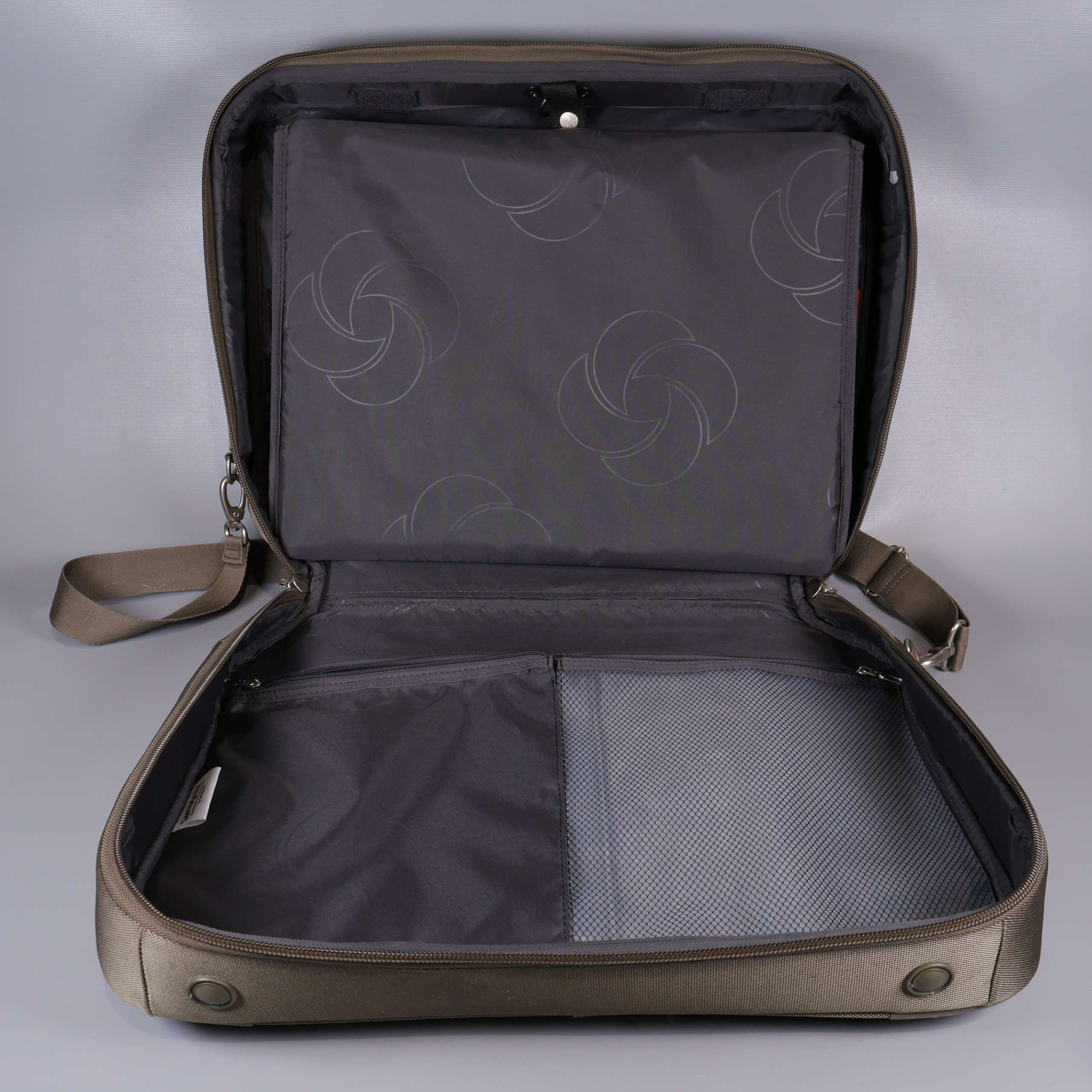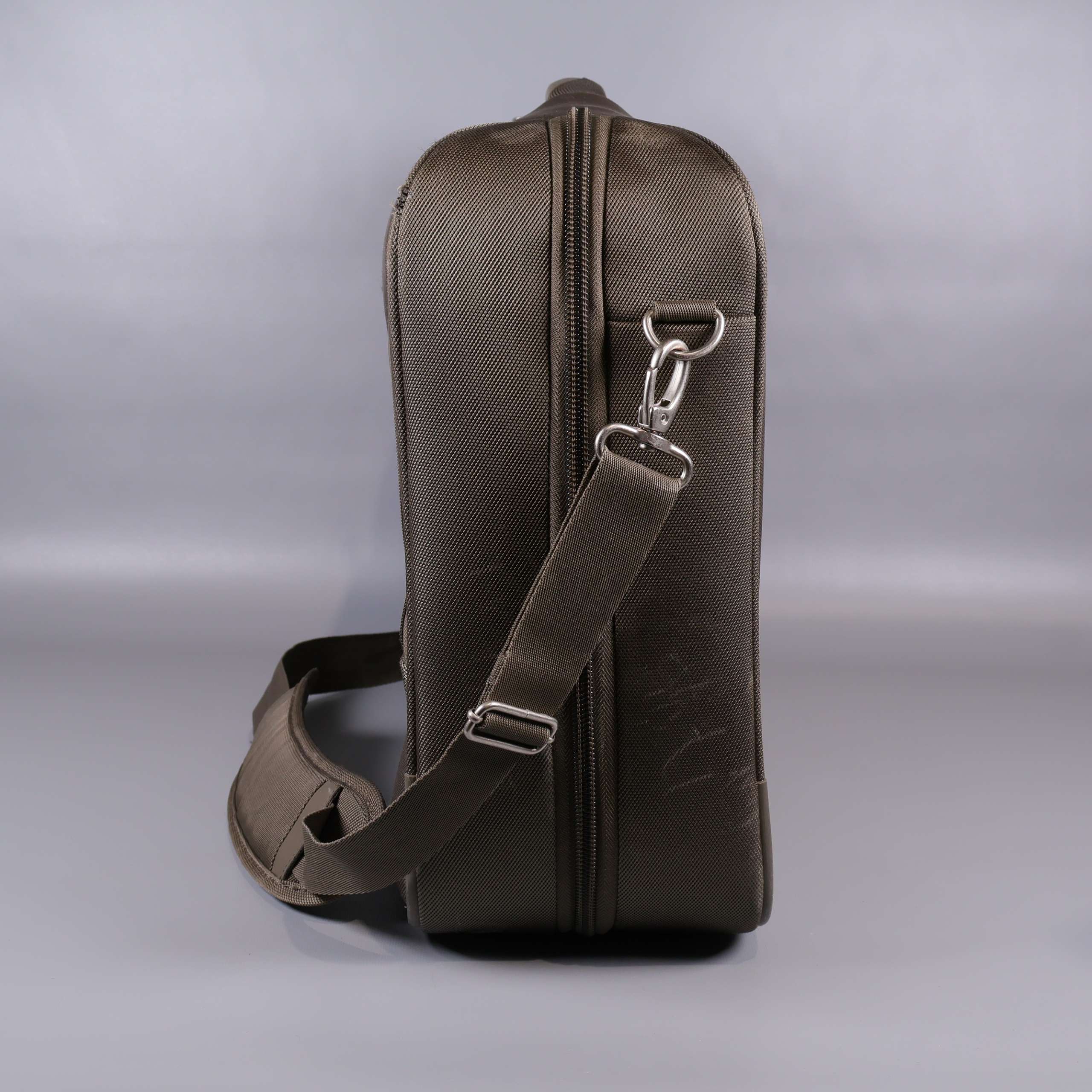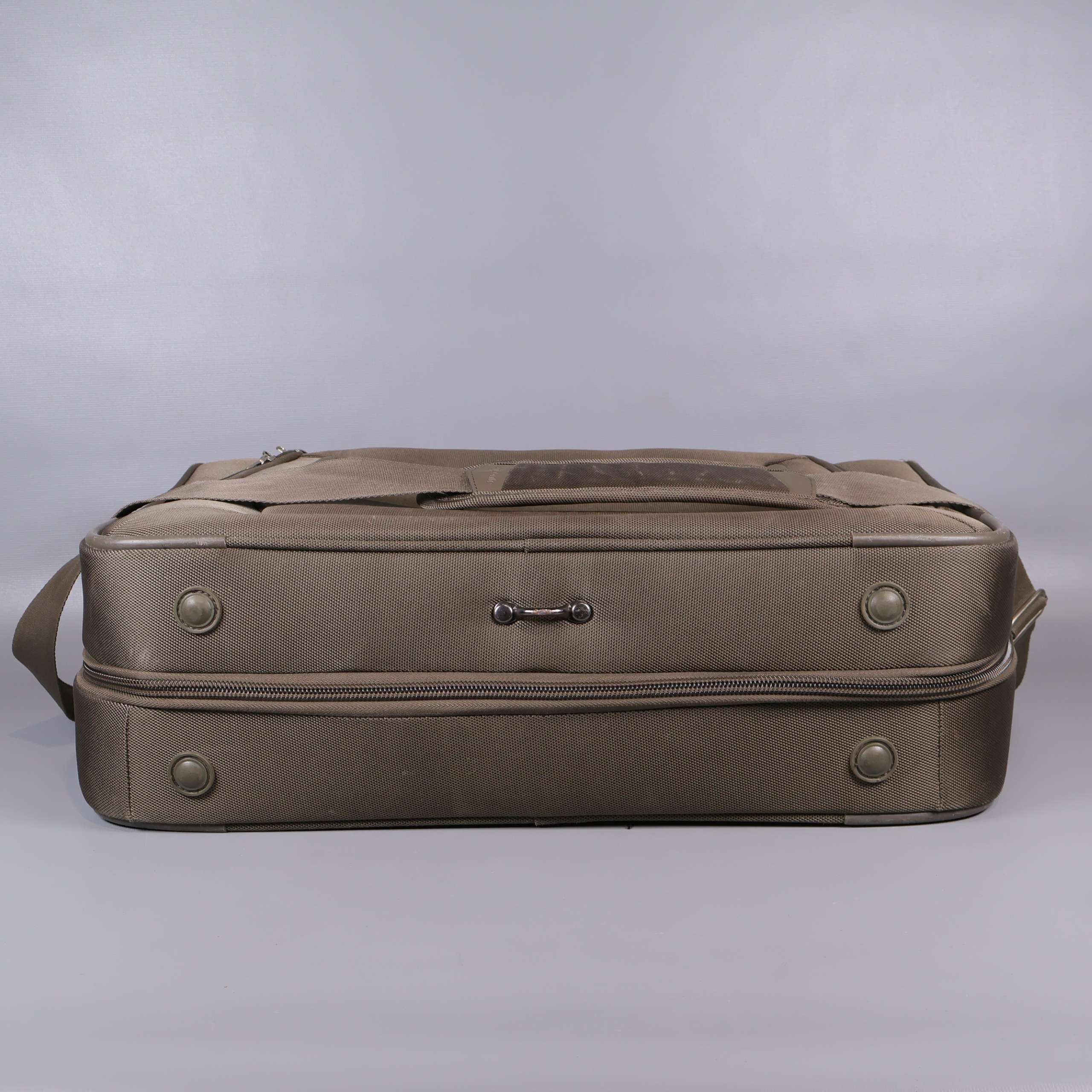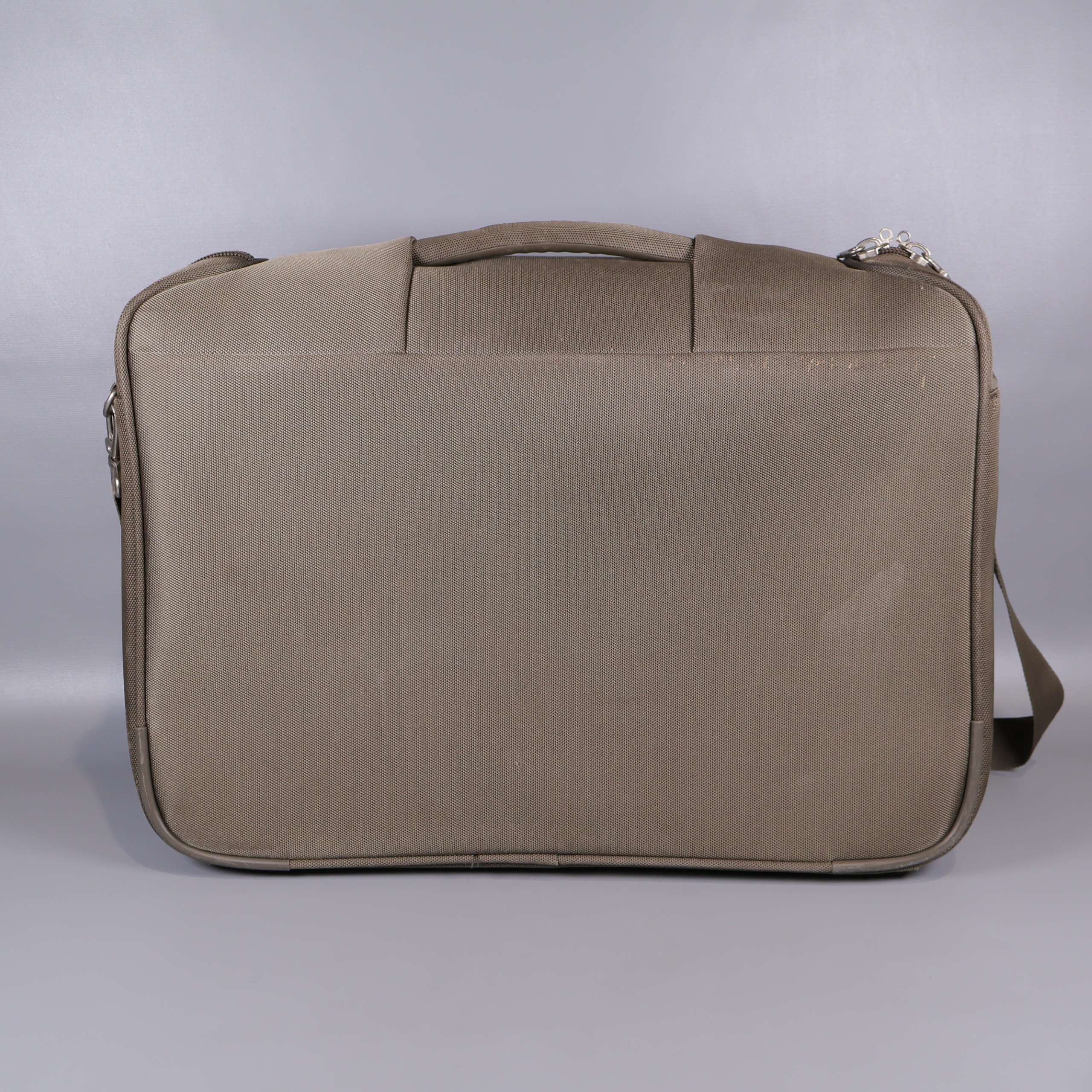 Rymlig portfölj med flera fack och justerbar axelrem för bekväm transport. Klassisk rektangulär design med förstärkt bärhandtag och slitstarkt yttertyg. Dragkedjor och innerfack gör det enkelt att organisera dina tillhörigheter, och distinkta metallknoppar på botten skyddar väskan. Passar perfekt både till jobbet och resan.