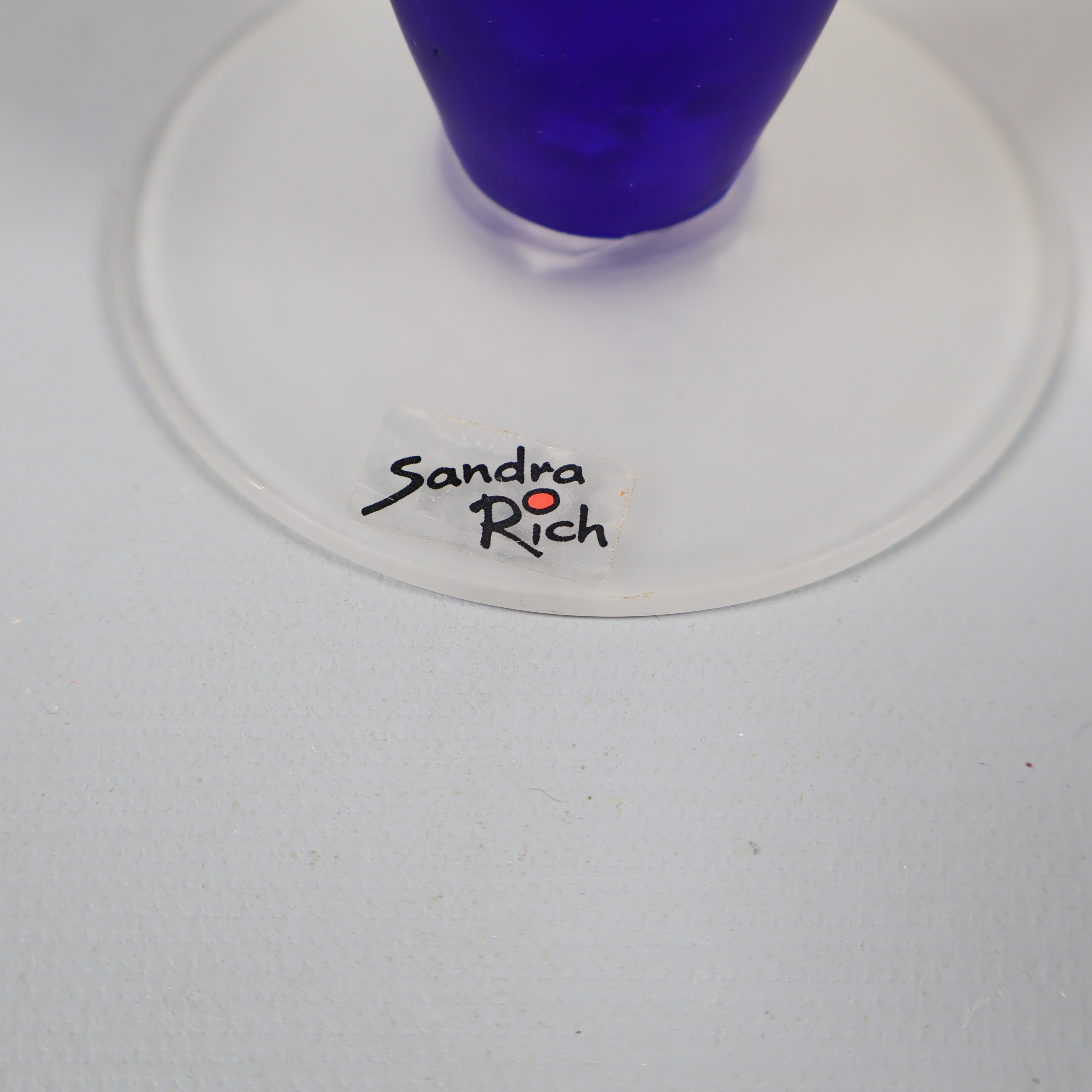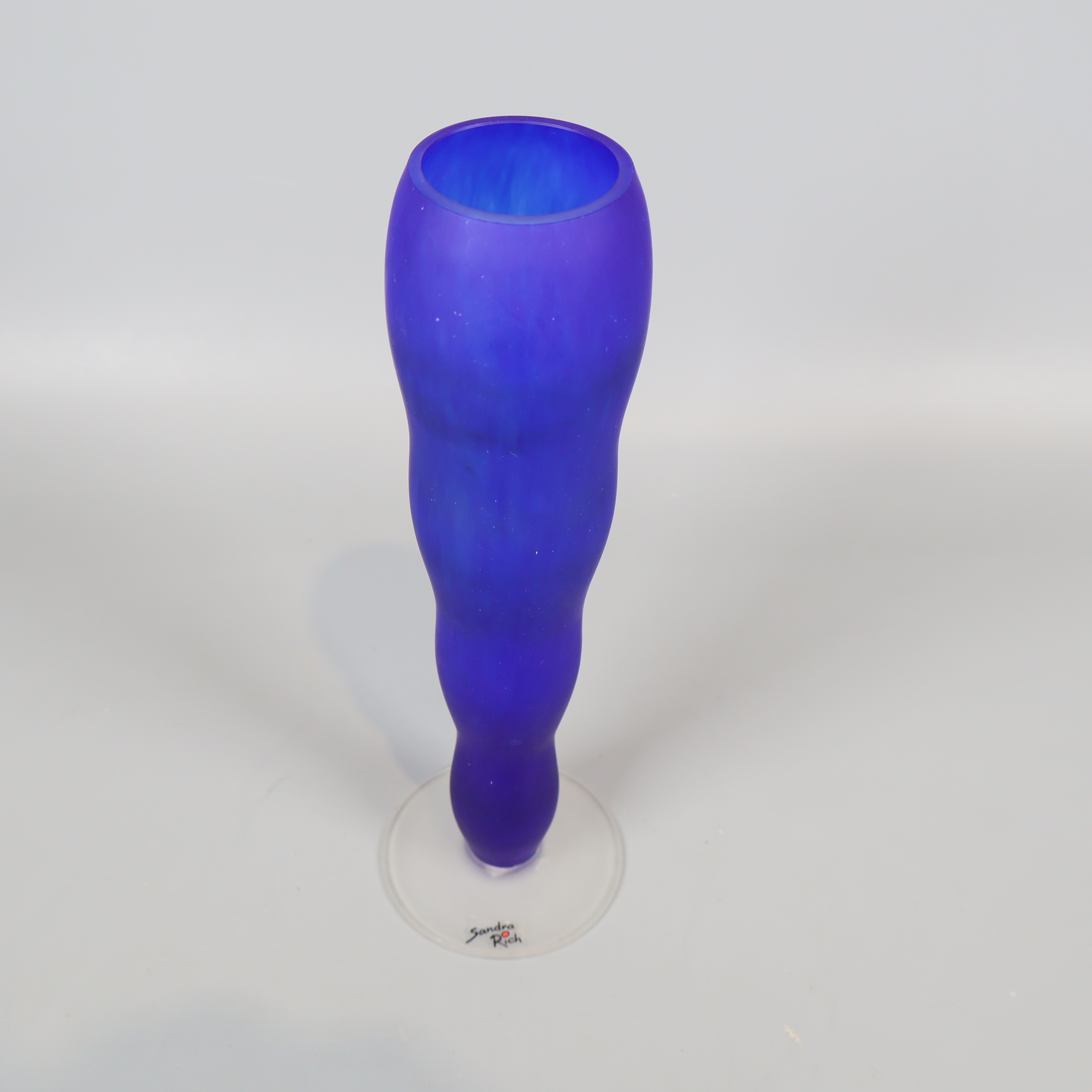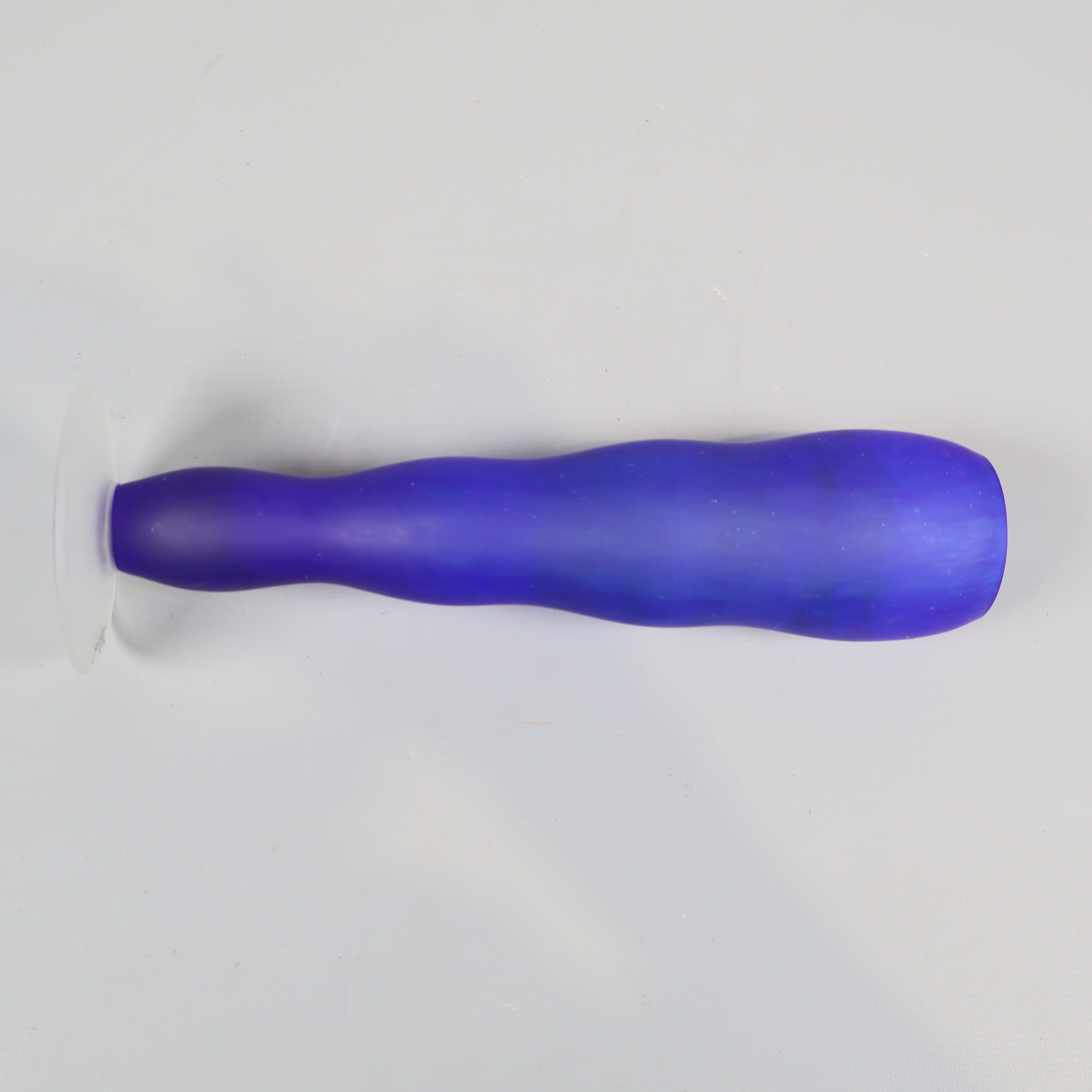 En hög, blå glasvas med unik vågform och matt finish. Designen skapar en modern look samtidigt som den transparenta glaskanten ger ett fräscht intryck.