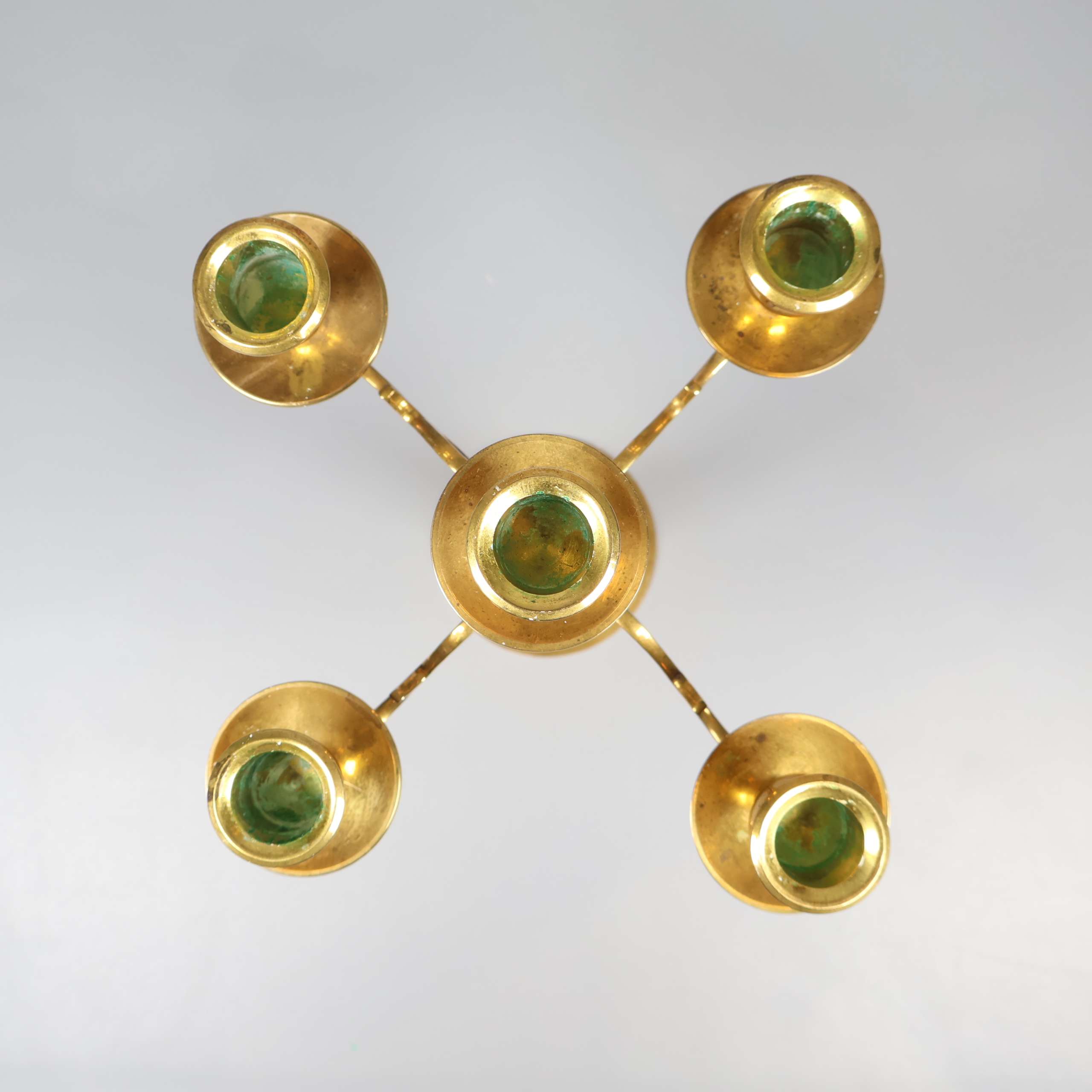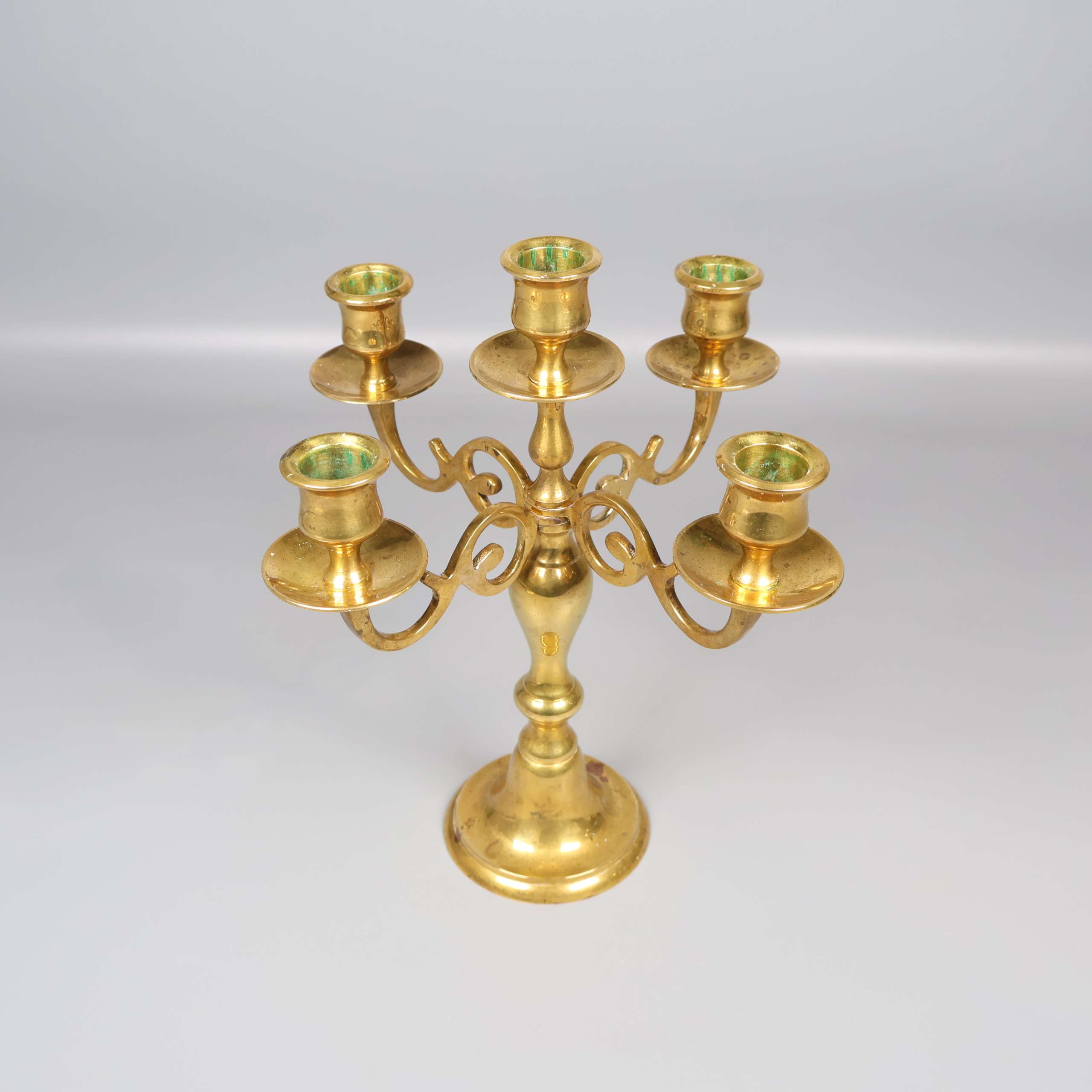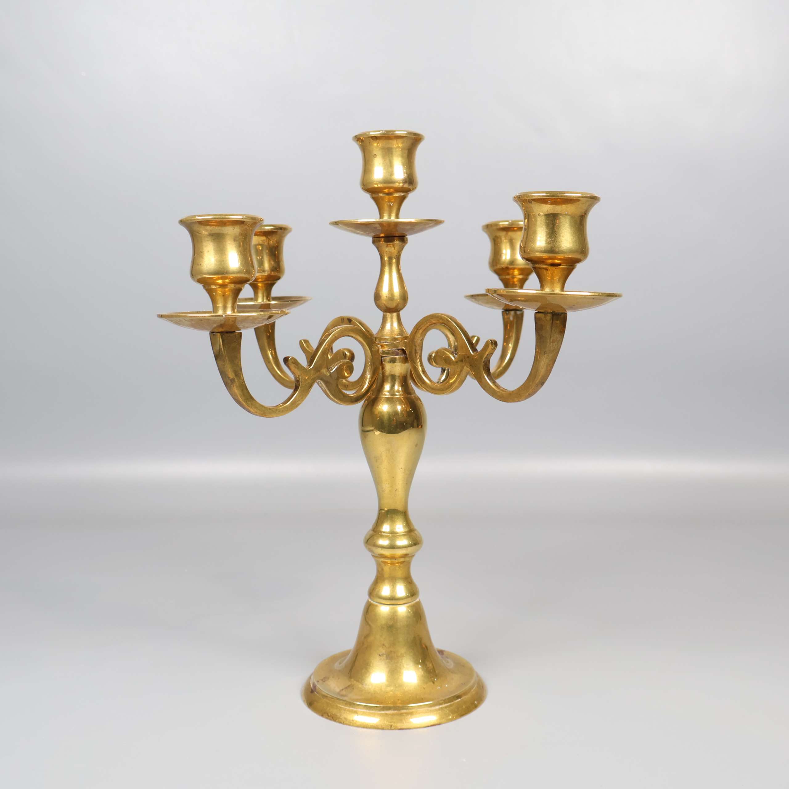 Elegant femarmad ljusstake i klassisk design med vackra svängda armar i blank mässing. Ytan har en härlig vintage vibe med charmiga patineringar och detaljer som skapar en unik känsla. Perfekt som statement piece både till vardags och till fest.