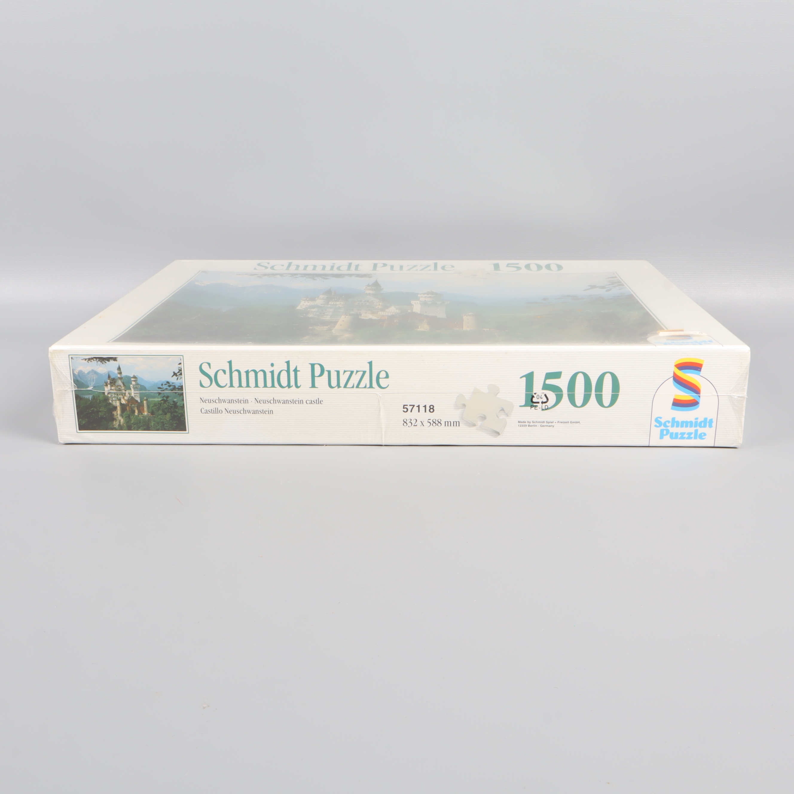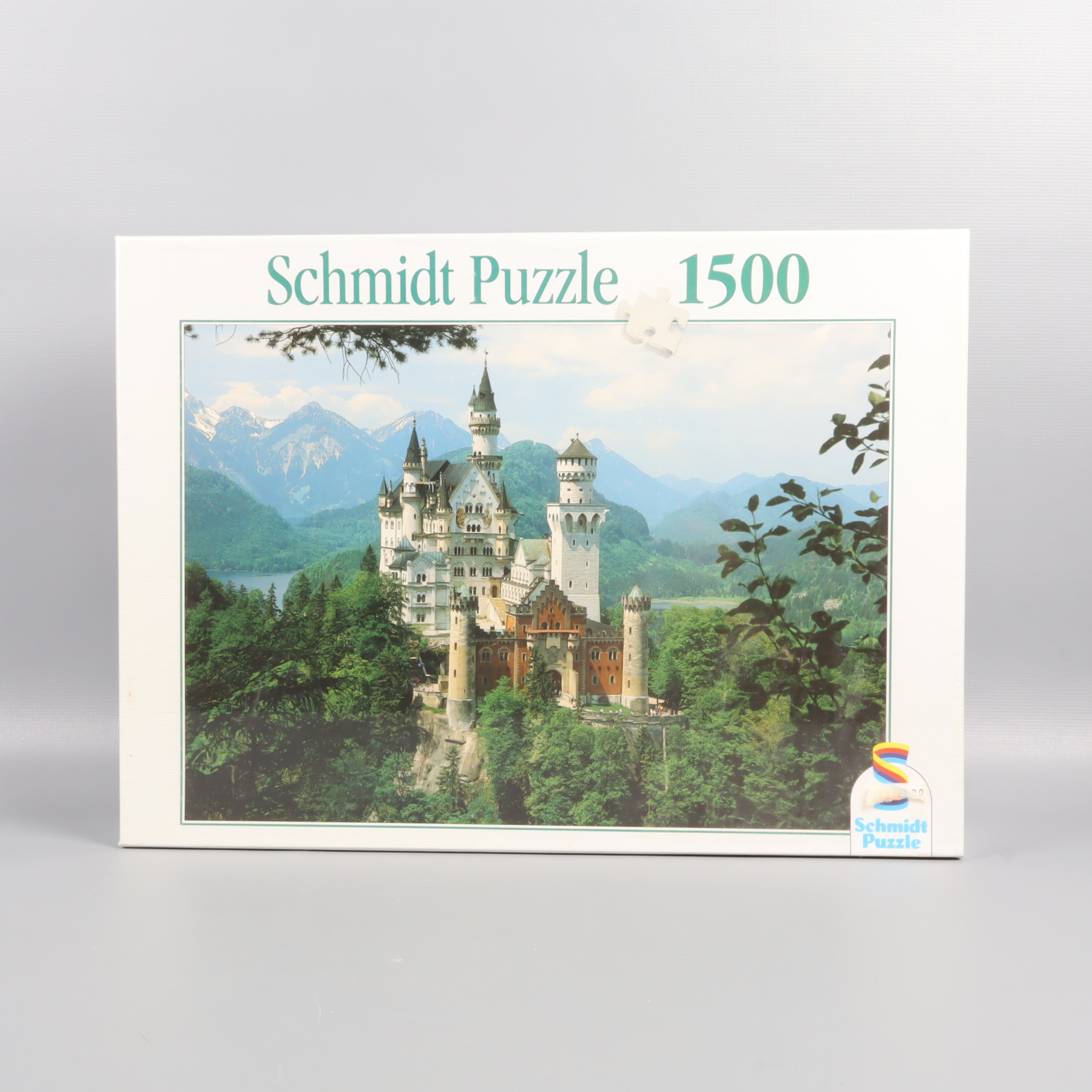 Stort pussel med 1500 bitar och motiv av det ikoniska Neuschwanstein-slottet i ett naturskönt landskap. Locket pryds av en färgstark Schmidt Puzzle-logotyp och klassiska gröna detaljer. Perfekt storlek för dig som gillar ett utmanande pussel som ger riktigt härlig vintage vibe till pysselstunden.