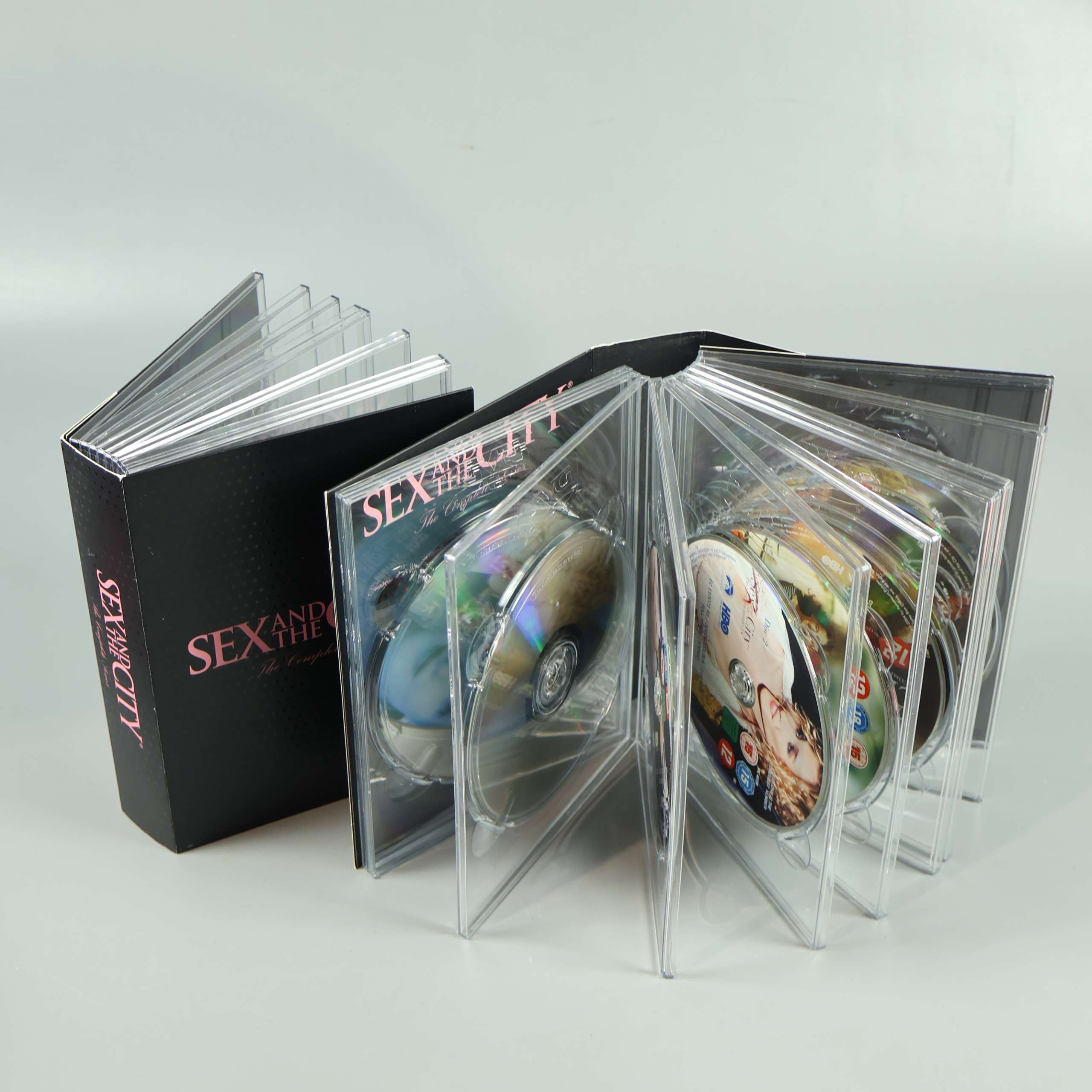 Sex and the City: The Complete Series är en storslagen dvd-box perfekt för alla som älskar smart och underhållande drama med humoristiska vardagsbetraktelser. Boxen innehåller hela serien förpackad i två klassiska fodral med lyxig känsla och tydlig design i svart och rosa. Praktiska genomskinliga plastfickor gör det enkelt att hålla ordning på skivorna och skydda dem från repor. Omslagen har exklusiv prägel och samlarvänlig look – passar perfekt som gåva eller prydnad i hyllan. Engelskt tal framgår av uppgifter och total åtta skivor ger många timmars seriemaraton eller återbesök till favoritavsnitten. För dig som söker enkel tillgång till hela Sex and the City-universumet i fysisk form är detta ett komplett och snyggt paket.