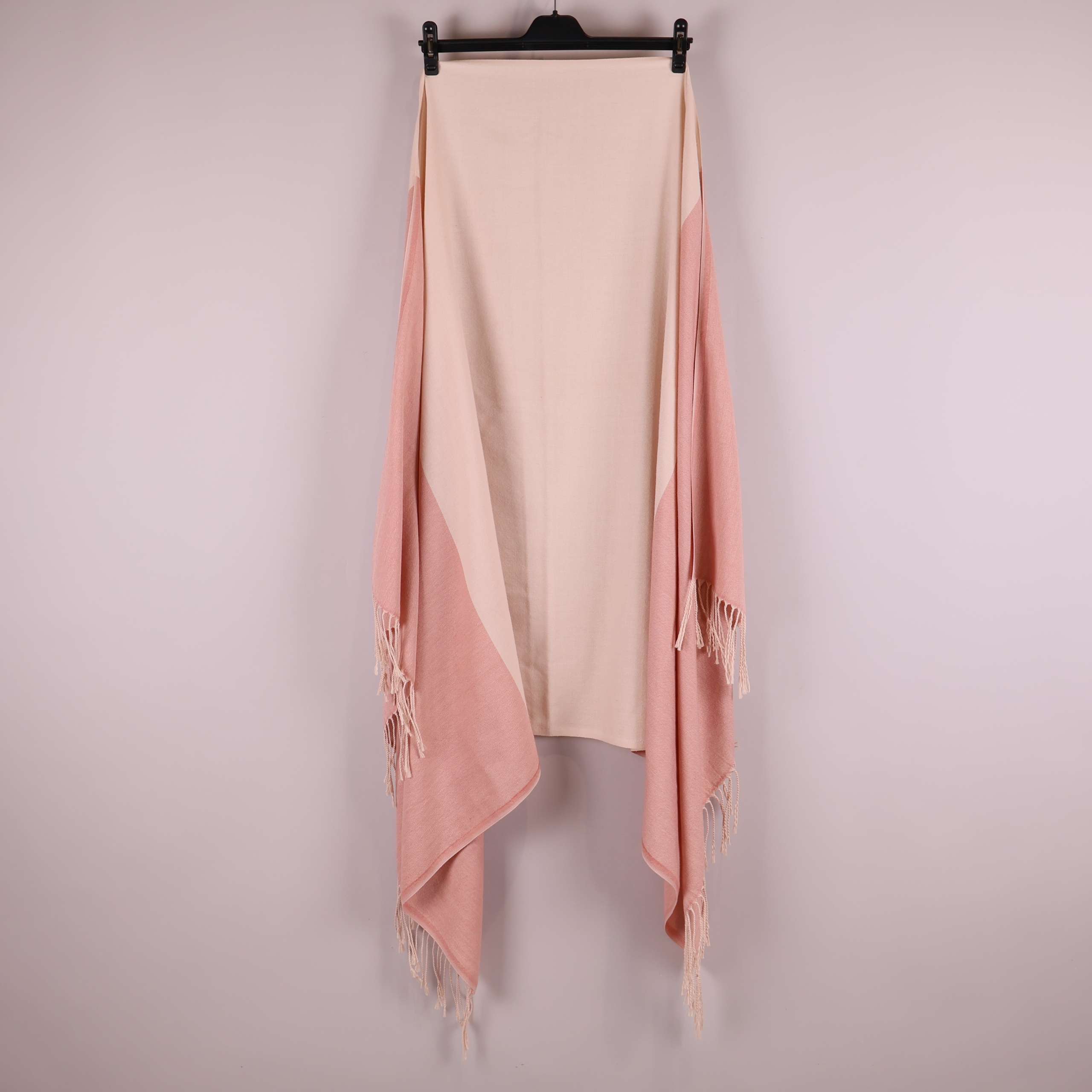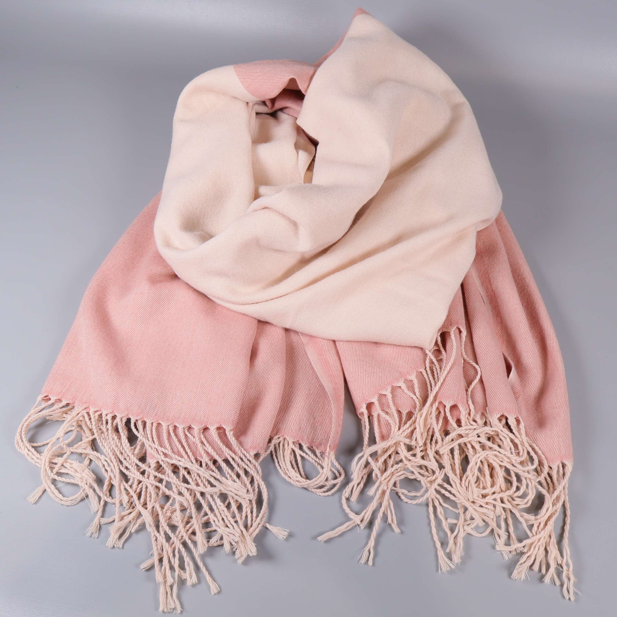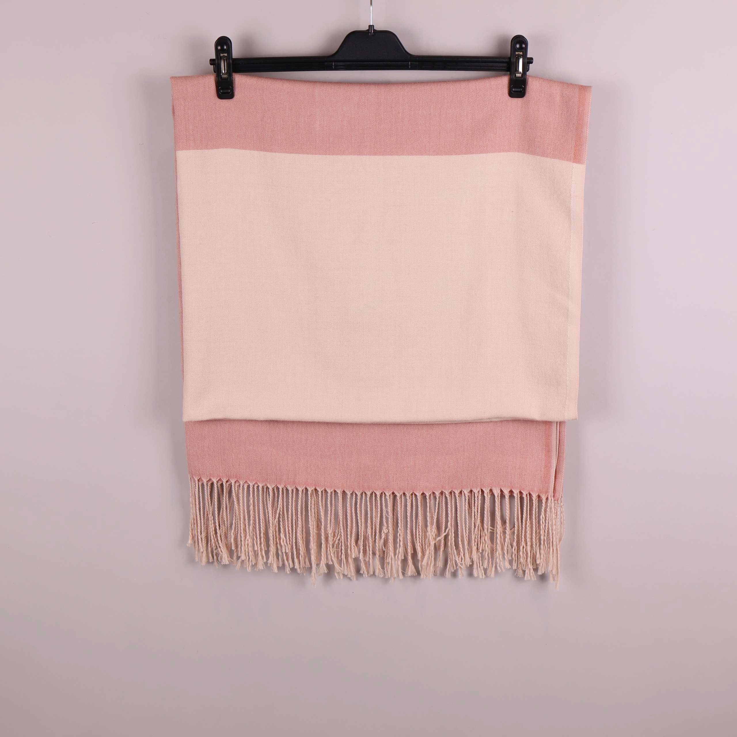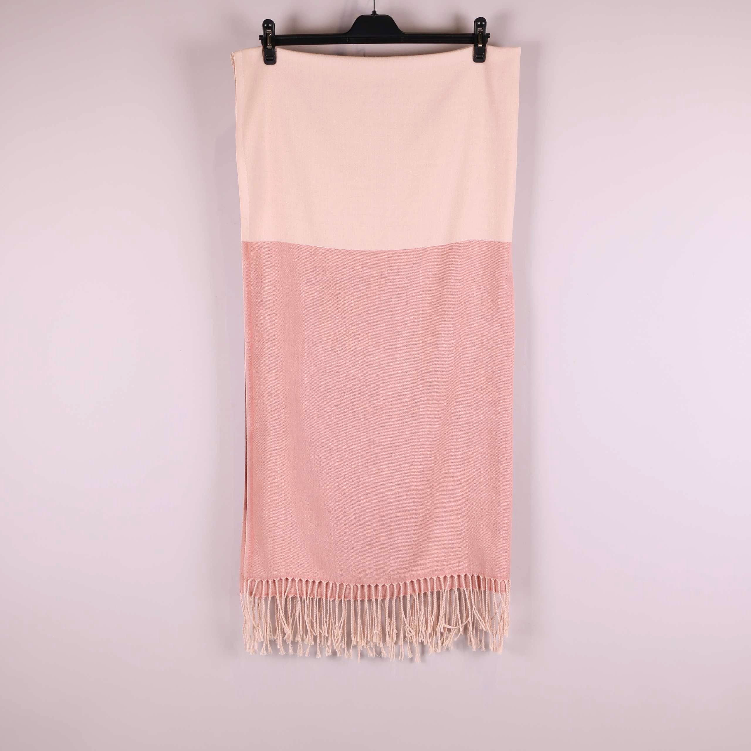 Mått: ca 100 x 190 cm. En mjuk och stilren halsduk med breda block i ljusrosa och puderfärgad ton. En tydlig tvåfärgad design med långa dekorativa fransar i ändarna ger en klassisk touch. Tyget har en slät och ombonad känsla som passar perfekt till vardags. Blockfärg och tidlöst uttryck gör denna accessoar enkel att matcha.