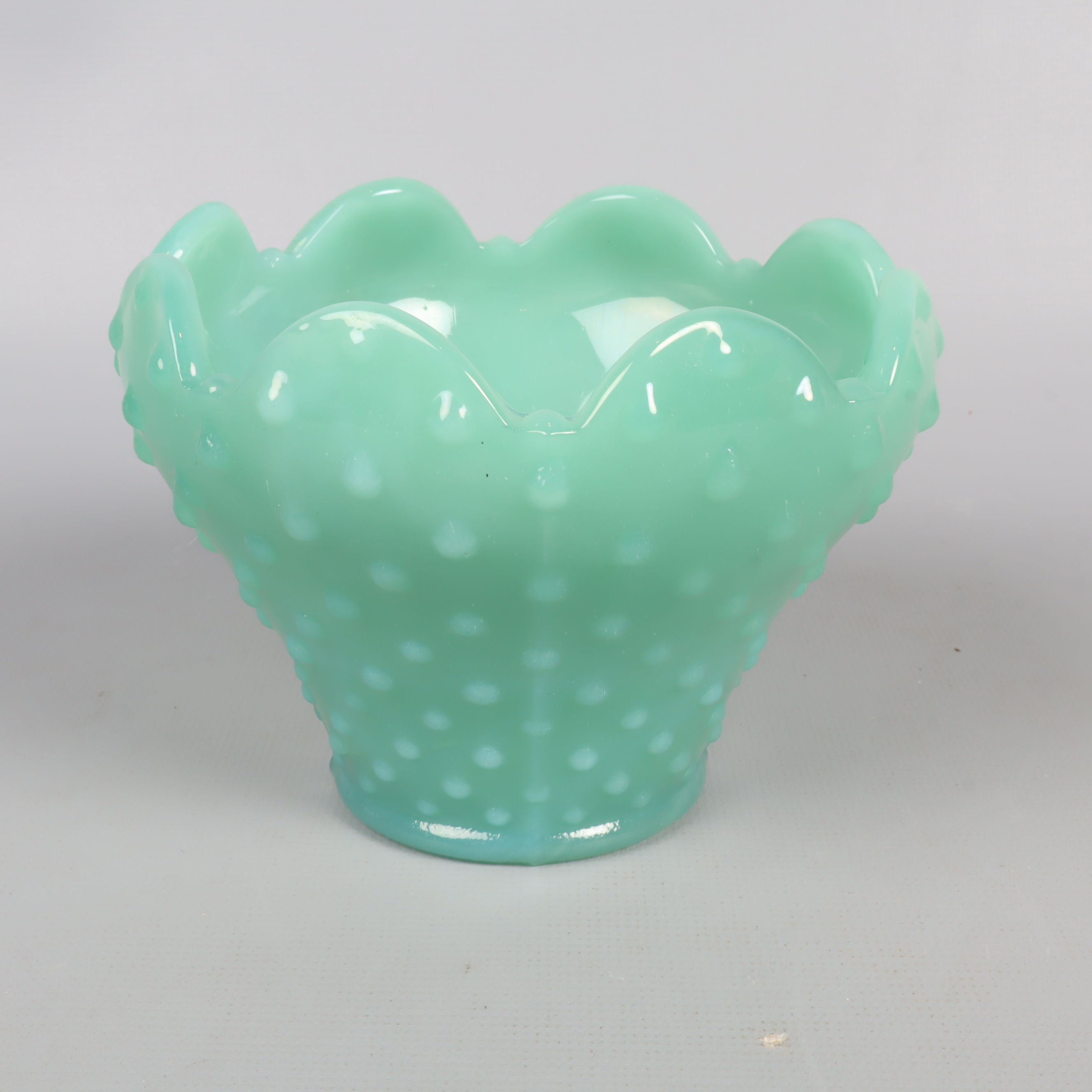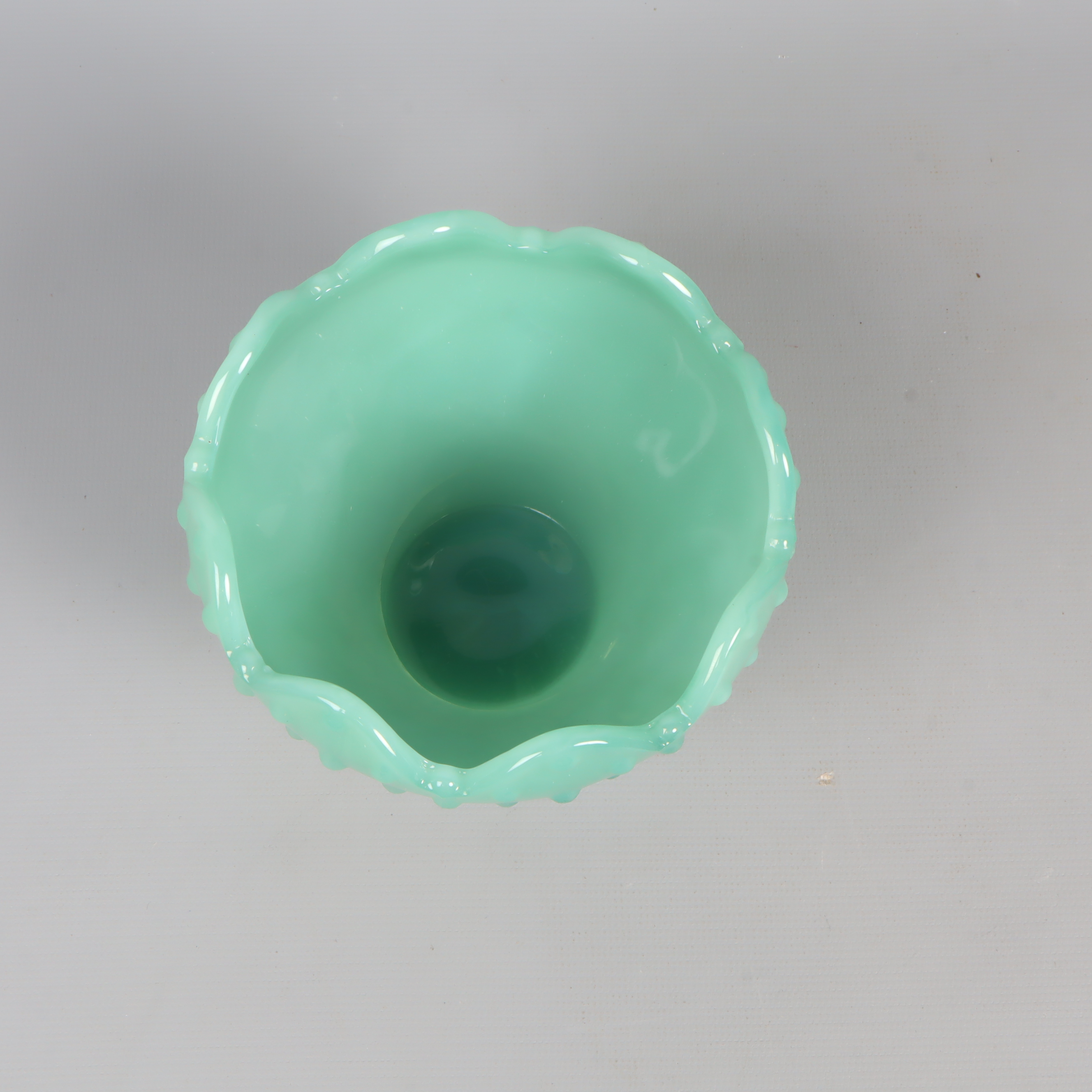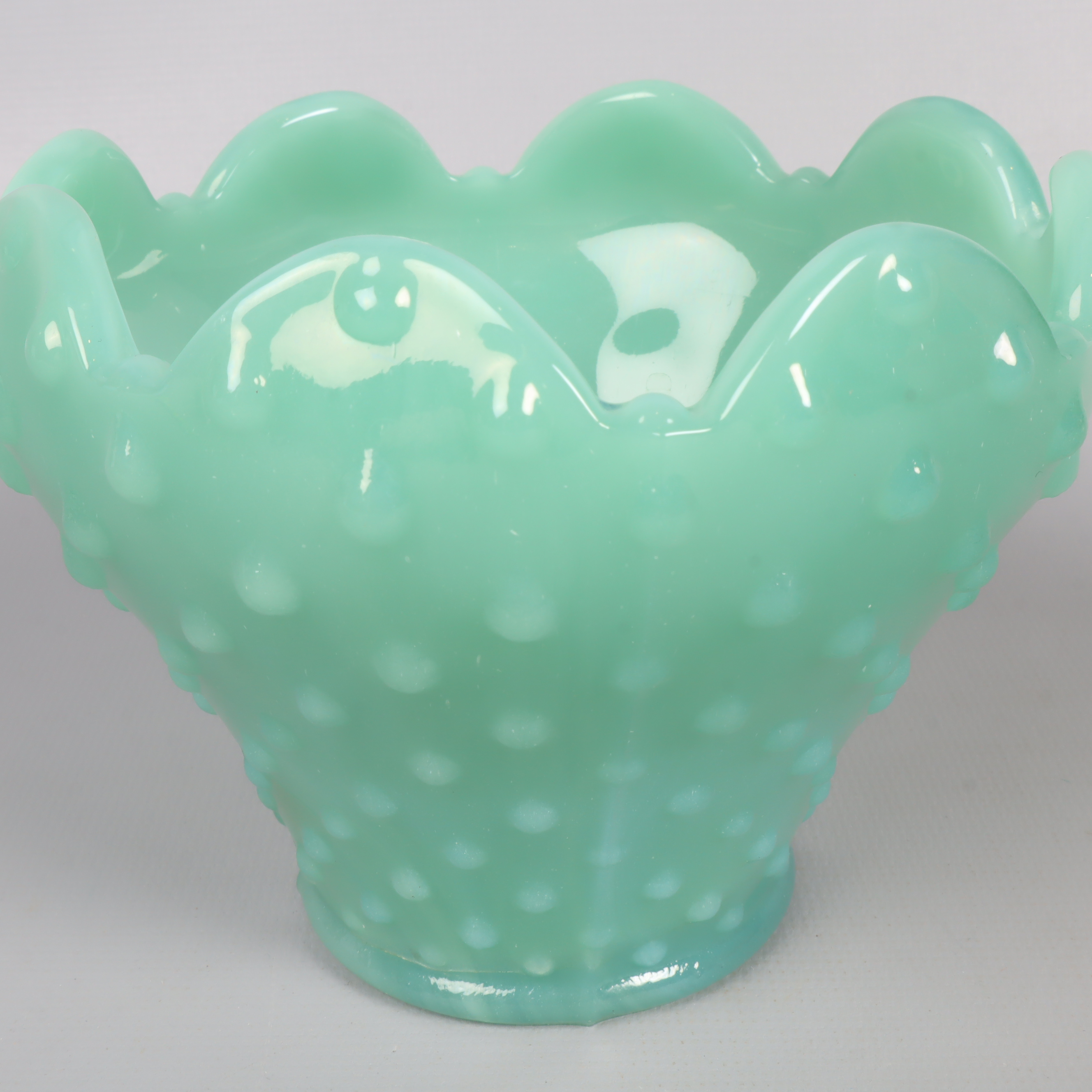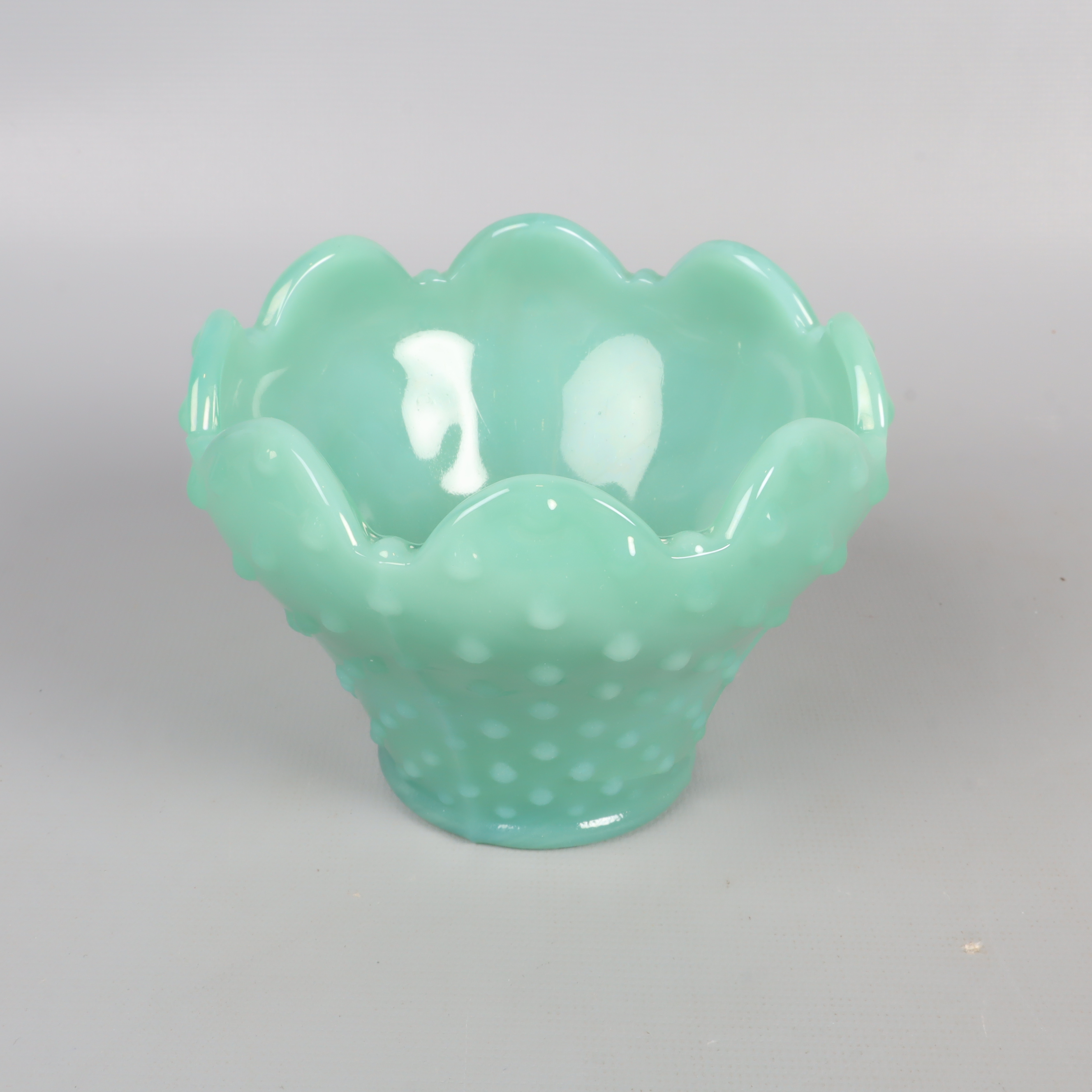 Mintgrön skål i Opalinglas med bubbligt mönster och mjukt vågig kant.