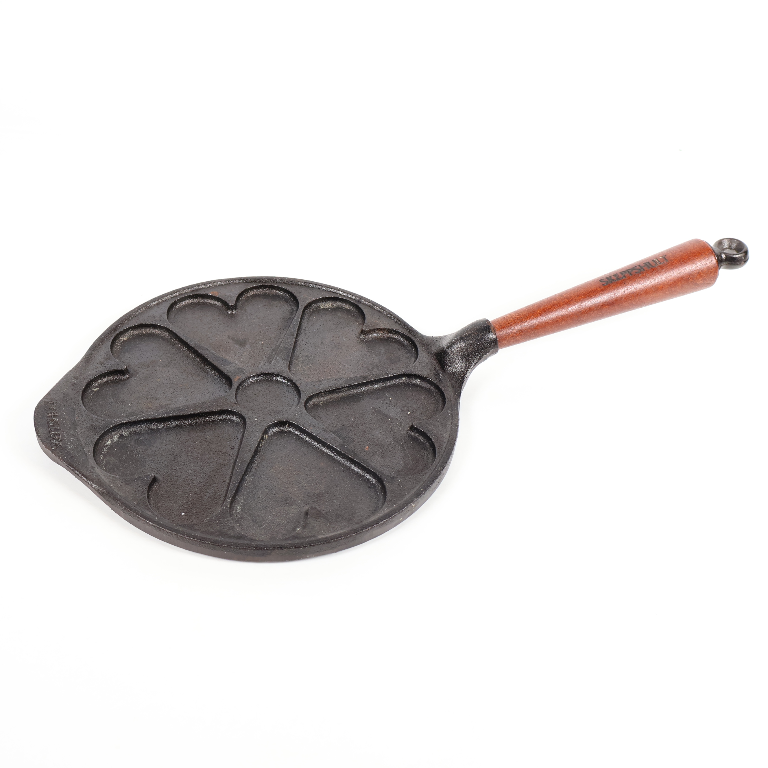 Skeppshult Skeppshult plättjärn av gjutjärn med trähandtag 349 kr Product variation Antal st Beskrivning Plättjärn i massivt gjutjärn med trähandtag och klassisk hjärtformad design. Den robusta känslan och distinkta stilen passar perfekt i både moderna och retro-inspirerade kök och ger en genuin vintage vibe. Visa all beskrivning Skick Gott skick Produkten har använts men är av fin kvalitet och ska inte ha några skador eller förslitningar. Läs mer om hur vi bedömer Dimensions Diameter: ca 23cm, Längd: ca 47cm (inklusive handtag) Färg Brun Material Gjutjärn Varumärke Skeppshult Produkten är unik och finns enbart som 1 st i lager. Fri frakt på alla köp över 990 kr. 14 dagars ångerrät.