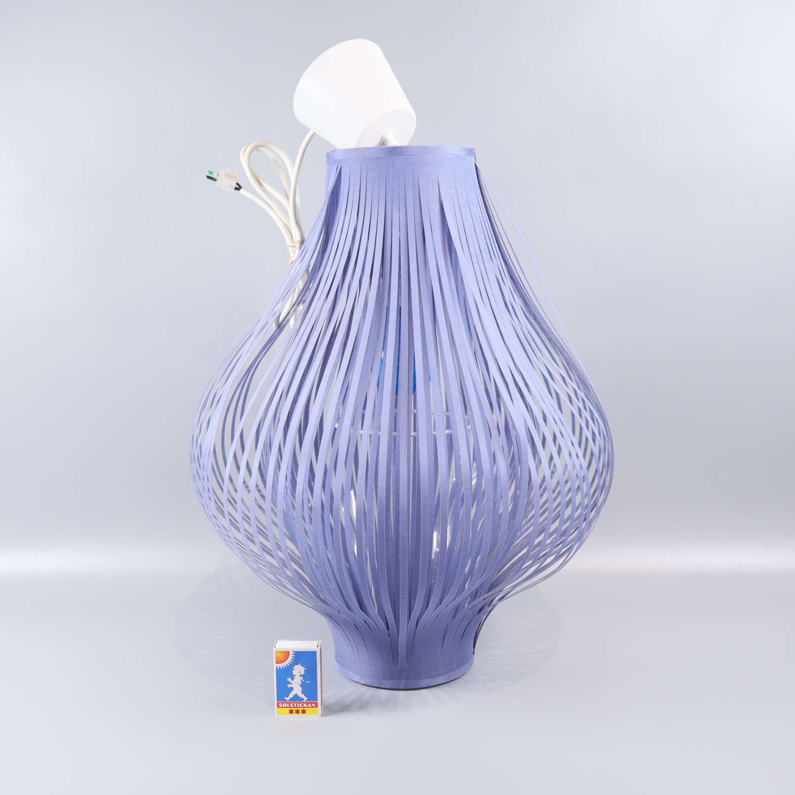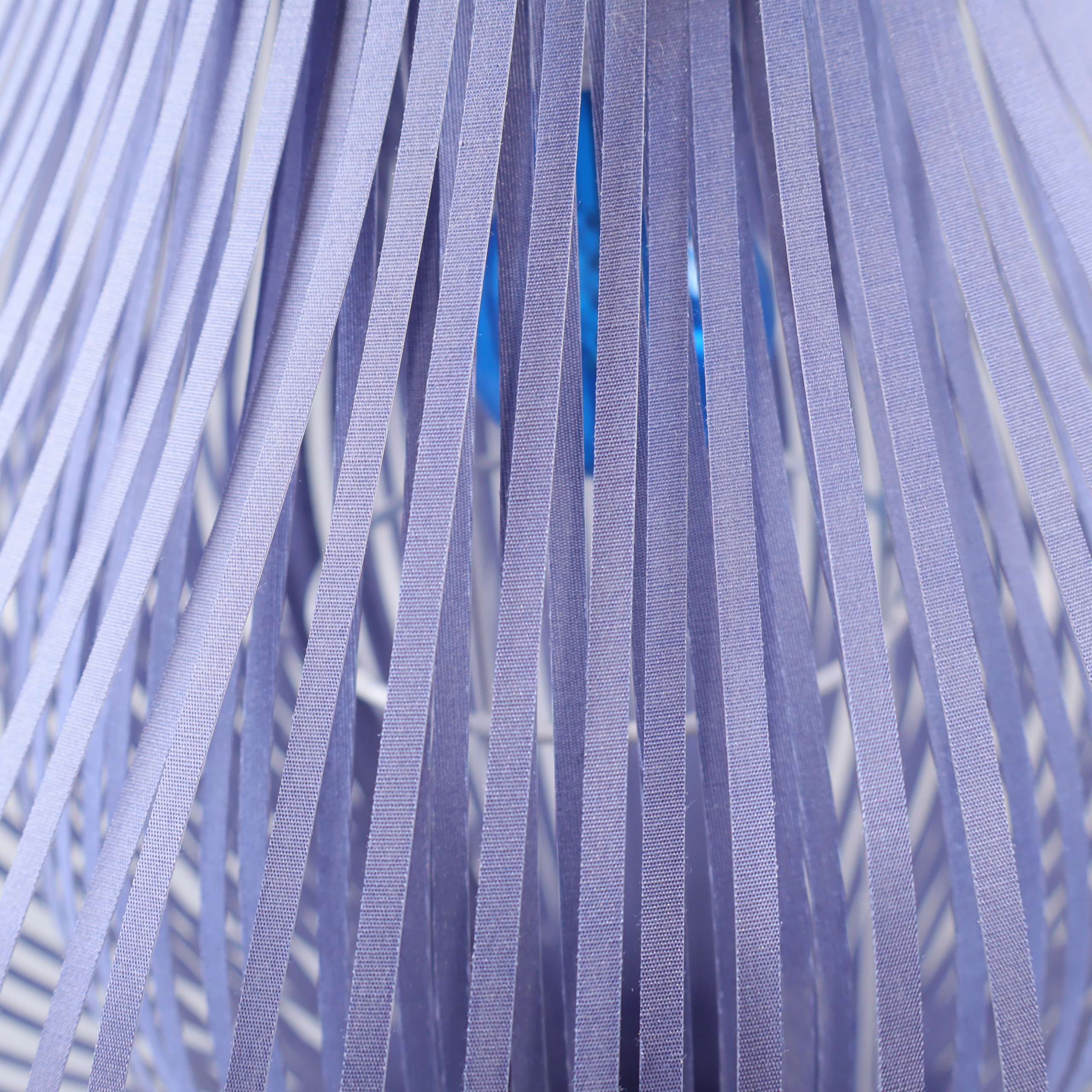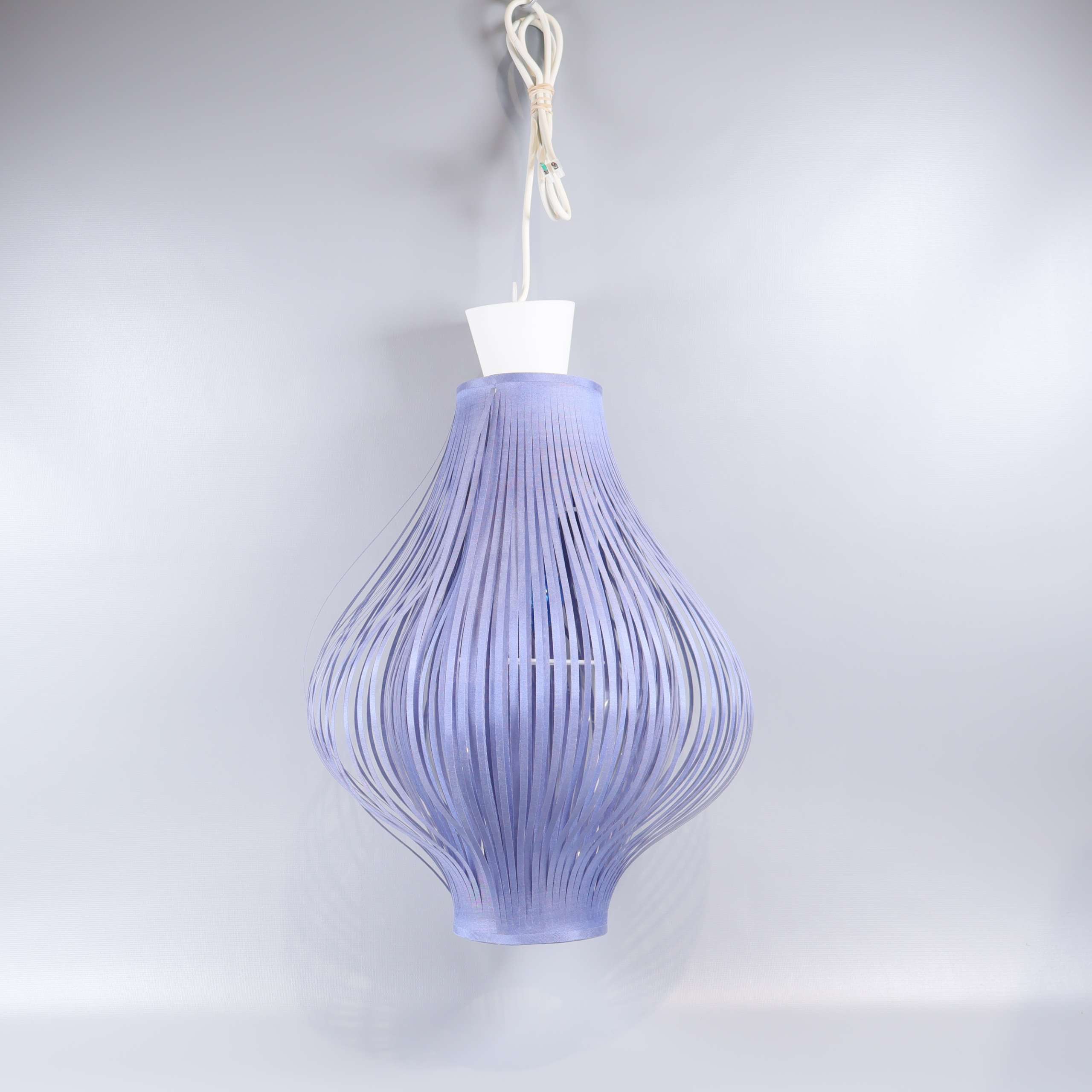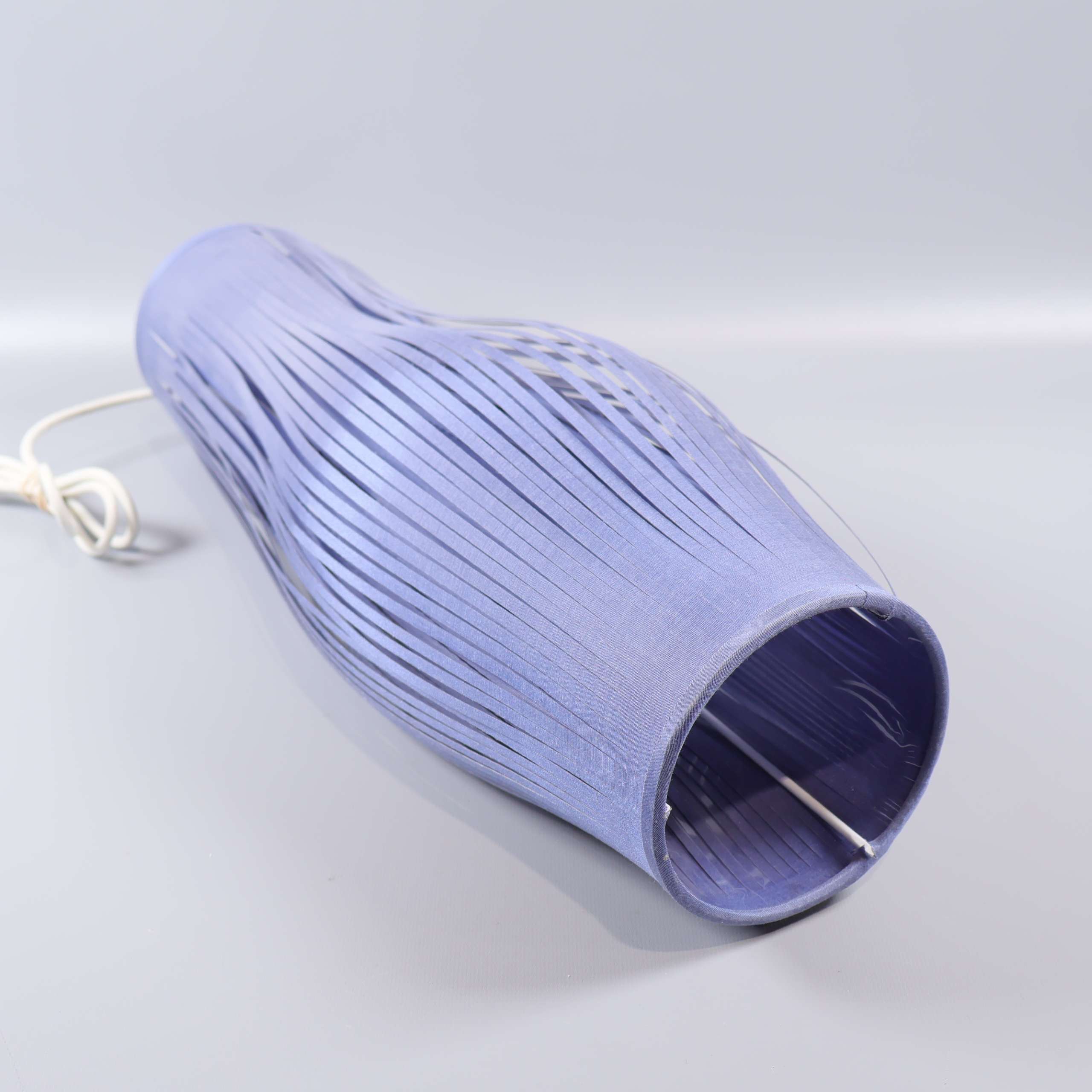 Taklampan har en spännande, luftig design med böljande blå tunna band som ger en modern och mjuk känsla till rummet. Den dekorativa konstruktionen tillför en lätt och samtida look, perfekt för dig som vill ha något unikt och stilrent.