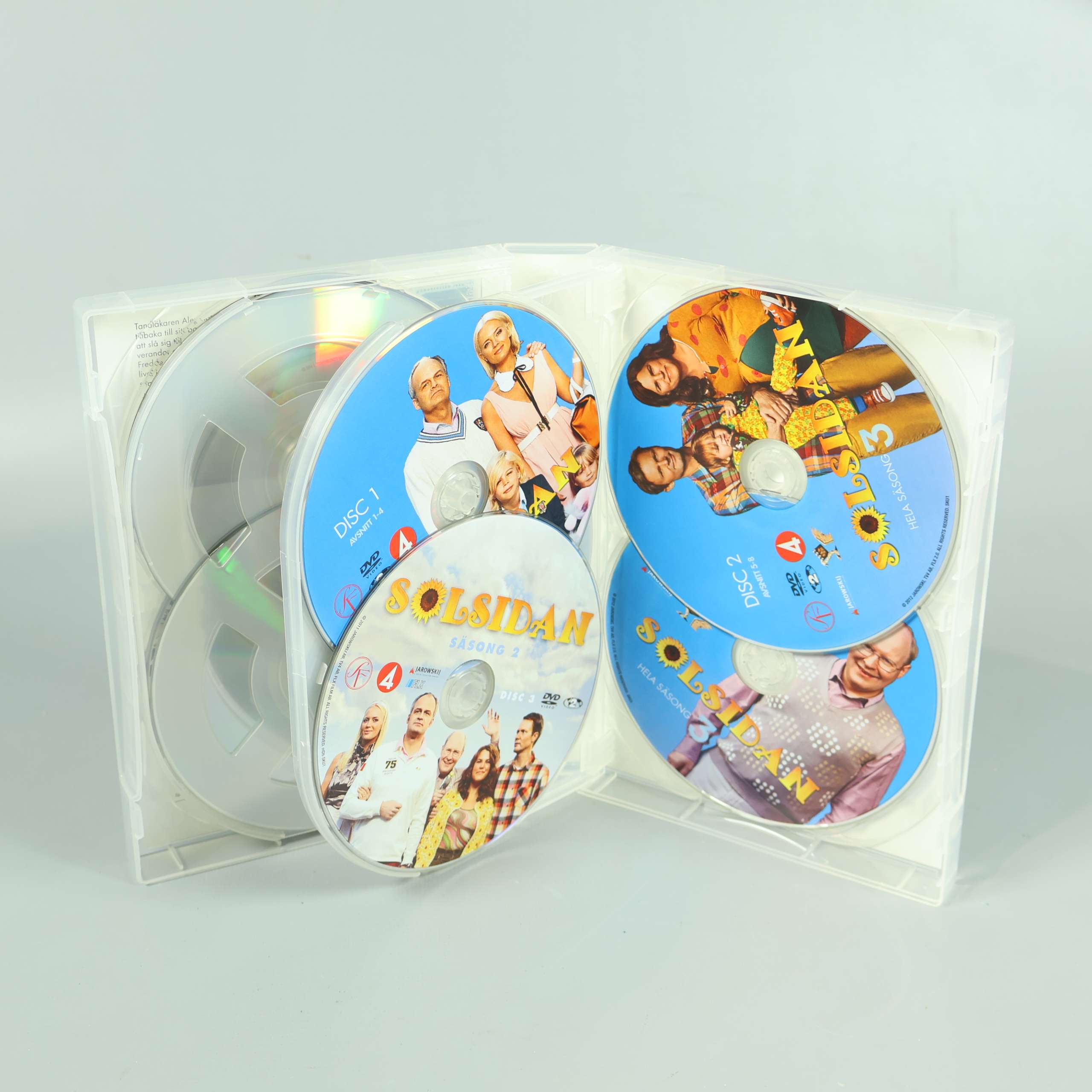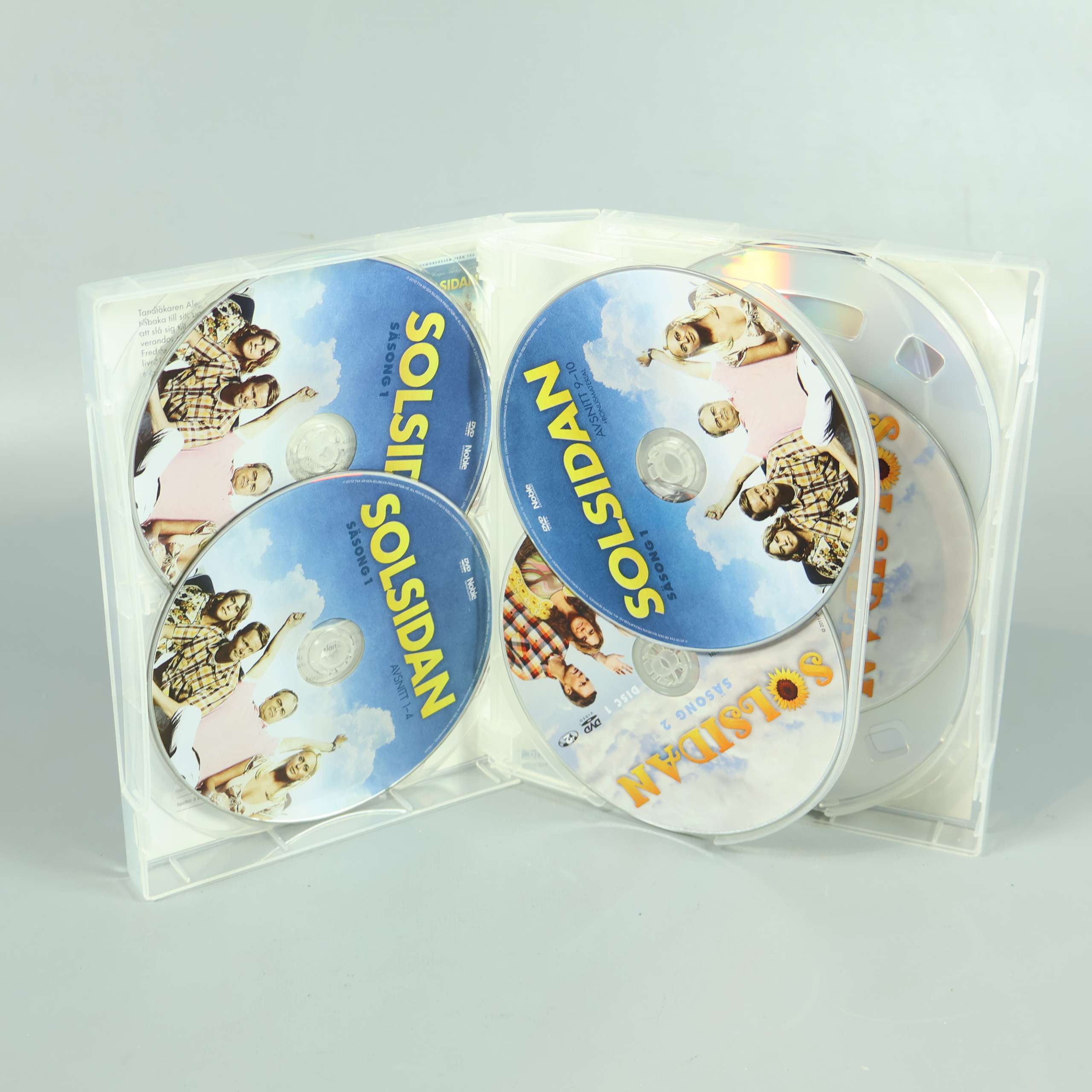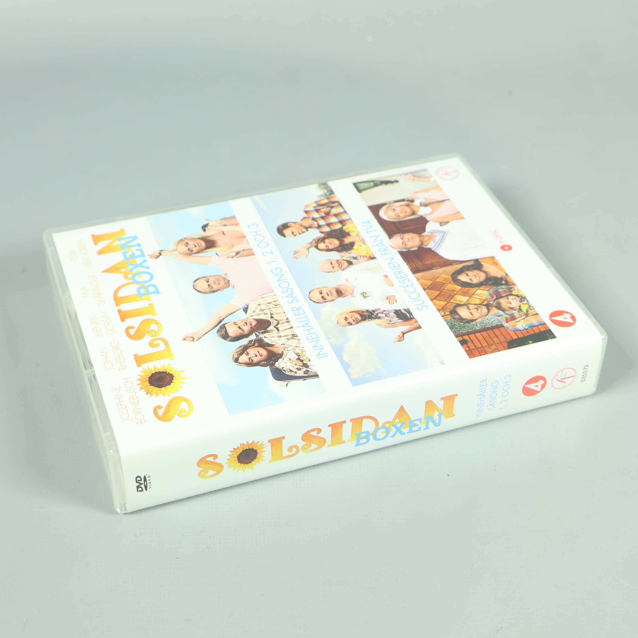 Solsidan boxen samlar säsong 1 till 3 av den populära svenska komediserien, perfekt för dig som vill njuta av många skratt och underhållning tillsammans med vänner eller familj. Boxen innehåller totalt nio skivor, där varje disc är tydligt märkt med säsong och avsnitt för enkel navigering. Omslaget har färgglada bilder på seriens kända karaktärer och tydlig märkning både fram och på rygg, vilket gör den enkel att hitta i hyllan. Förpackningen är en klassisk DVD-box i tålig plast med insatser som håller alla skivor stadigt på plats. Designen är modern och lekfull med tydliga referenser till serien. Ljud och bild är anpassade för svenska användare och språket är helt på svenska. En perfekt box för både nya tittare och Solsidan-fans som vill se om alla avsnitt bekvämt hemma när helst du har lust att slappna av och skratta. Säsongerna bjuder på humoristiska och igenkännande vardagssituationer, där både karaktärer och miljöer känns autentiska.