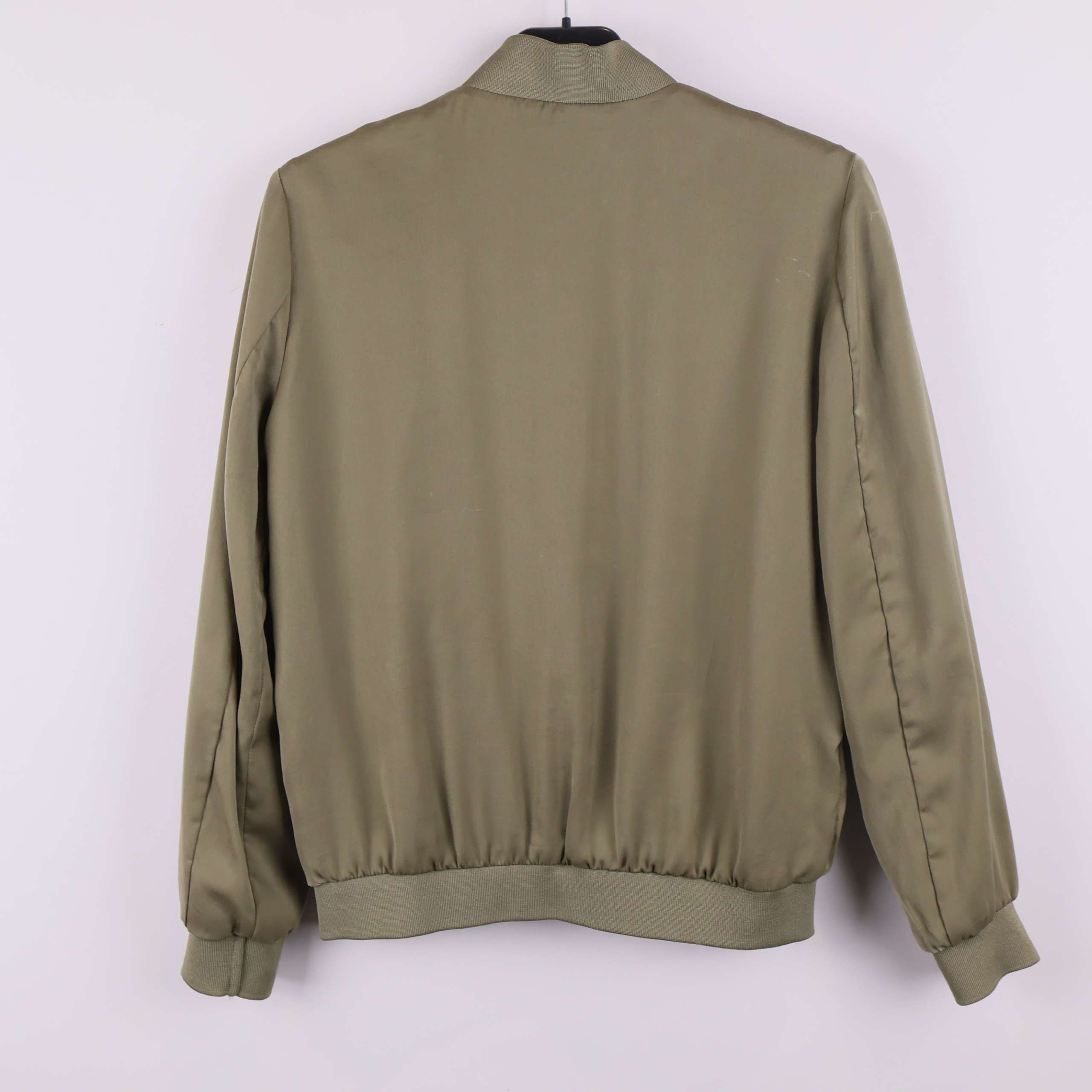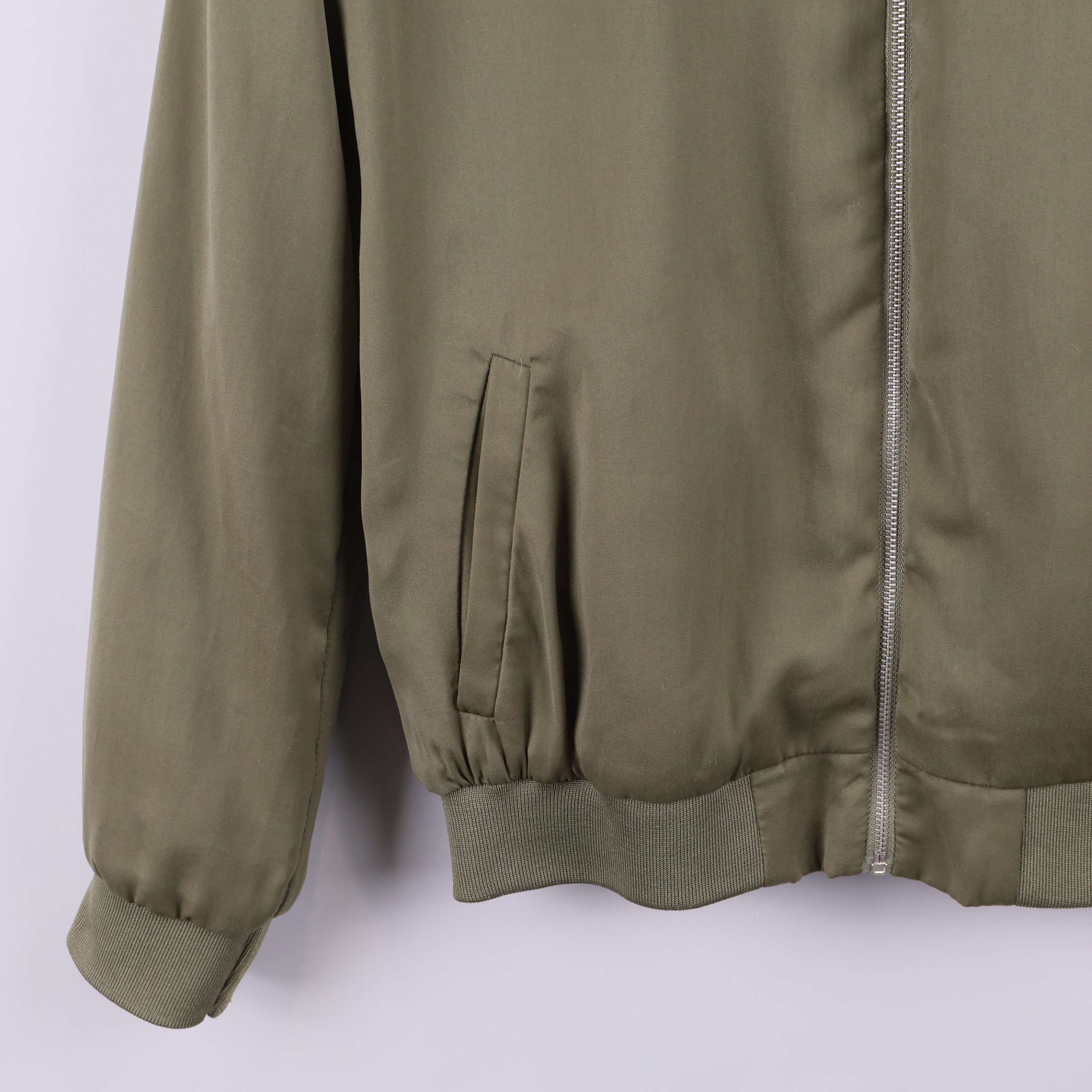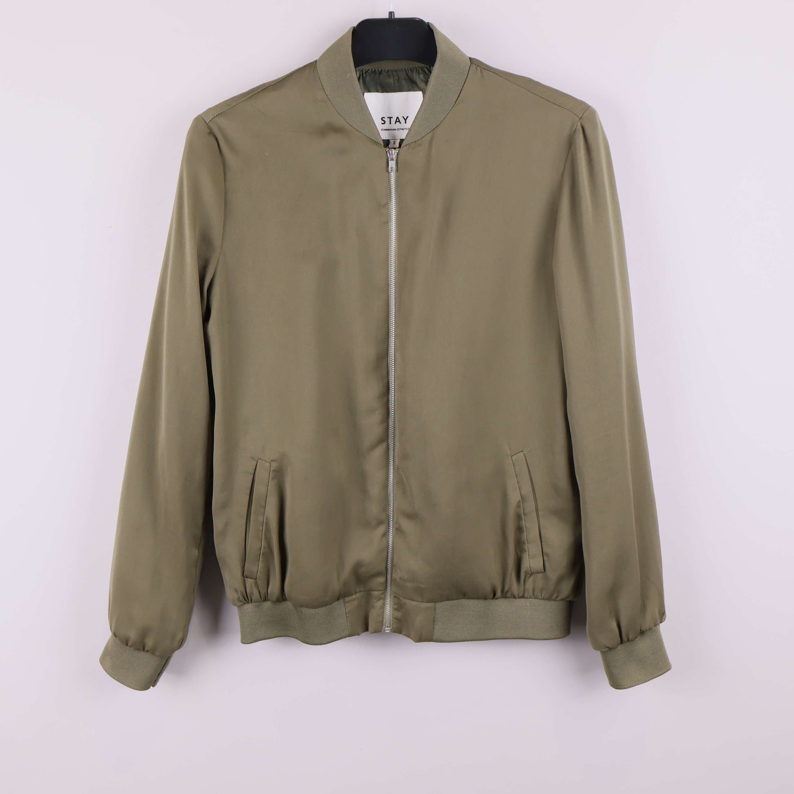 Bomberjacka i tunn modell med snygg ribbad mudd vid ärmslut och nederkant. Stängs med silverfärgad dragkedja och har två fickor framtill.