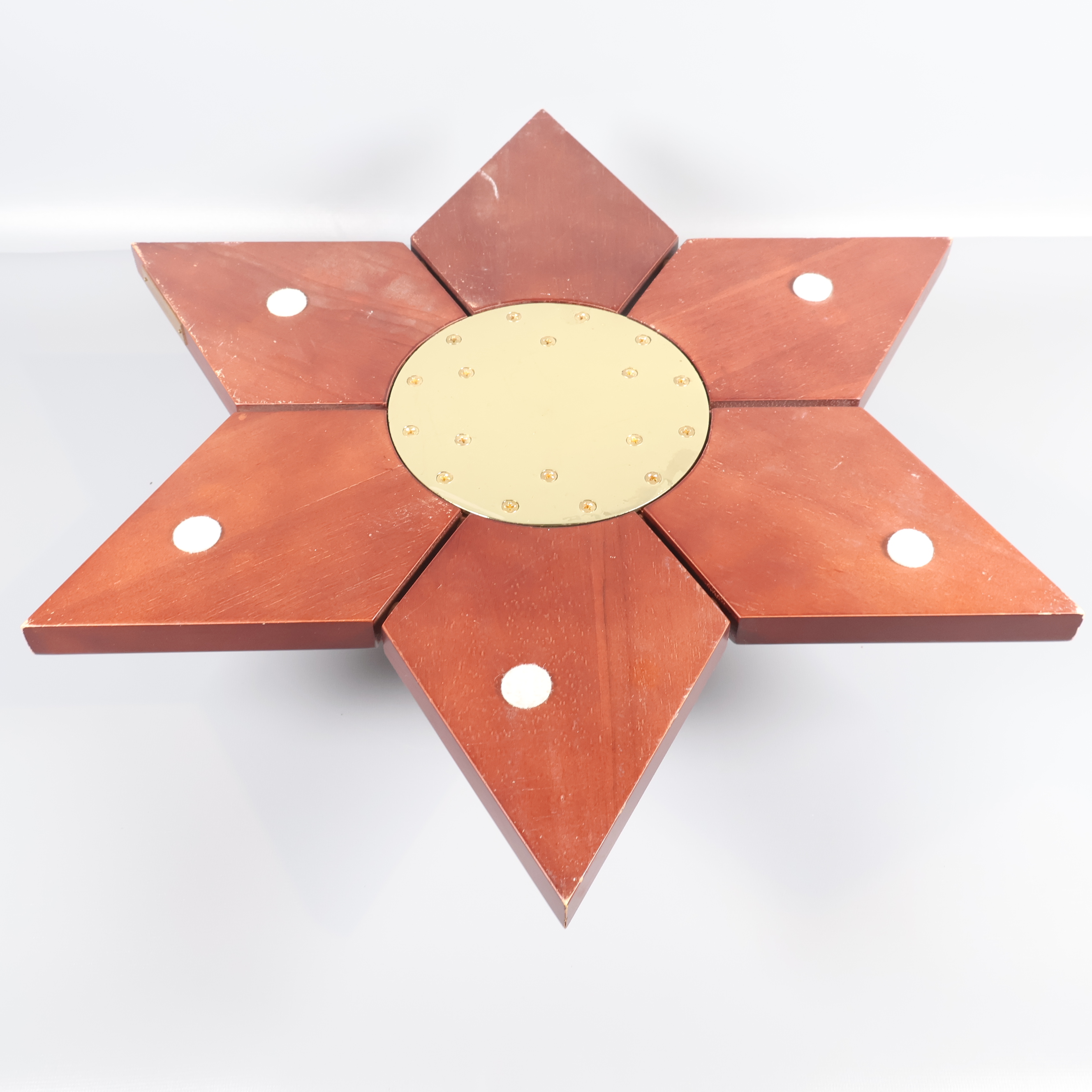 Stjärnformad julgransfot i trä 299 kr Product variation Antal st Beskrivning En stjärnformad julgransfot med en varm trälook och detaljer i blank guldfärgad metall som ger ett stilrent intryck. Visa all beskrivning Skick Använt skick Produkten har blivit använd och kan ha slitits eller ha mindre skador Läs mer om hur vi bedömer Dimensions Höjd: 15 cm Bredd: 55 cm Färg Brun Material Trä Produkten är unik och finns enbart som 1 st i lager. Fri frakt på alla köp över 990 kr. 14 dagars ångerrät.