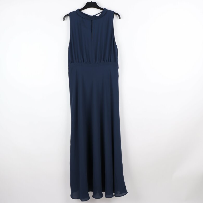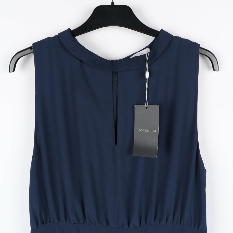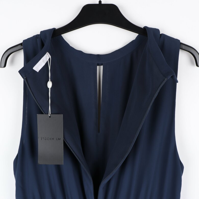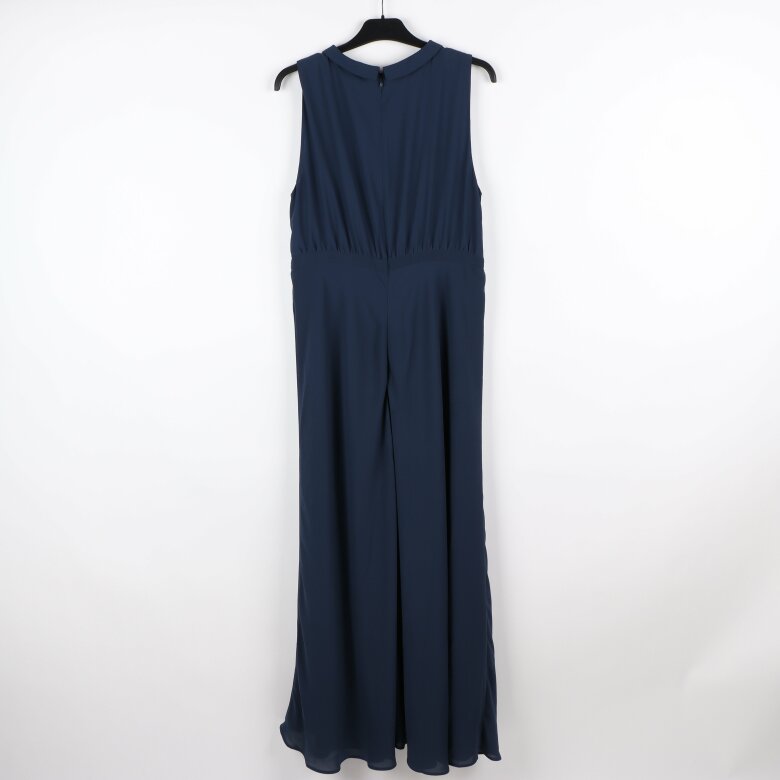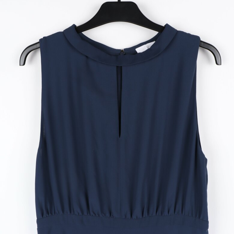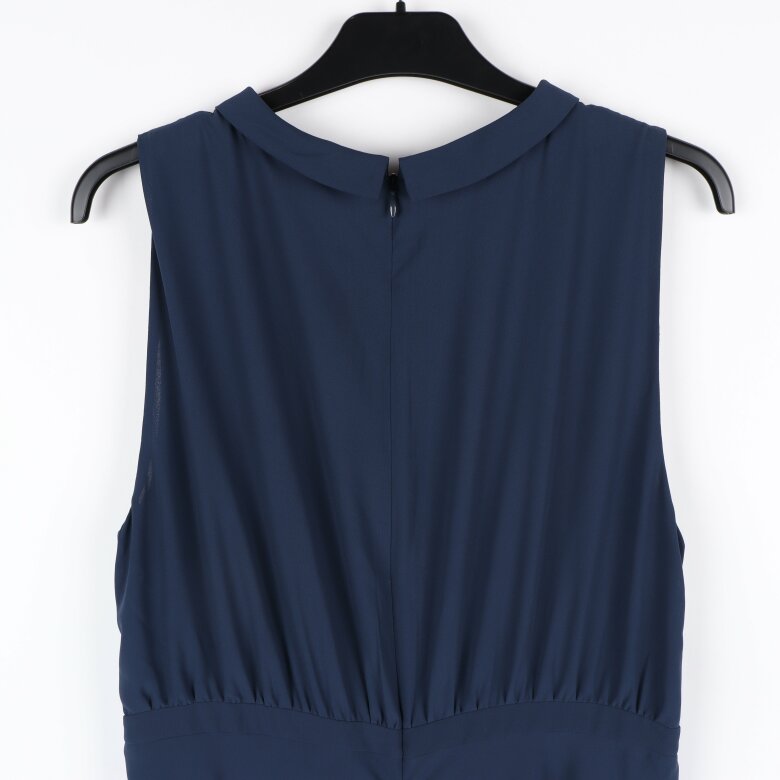 Elegant ärmlös långklänning i en djup blå nyans med subtila veck. Klänningen ger ett luftigt och elegant intryck med en rund hals och en dragkedja i ryggen.