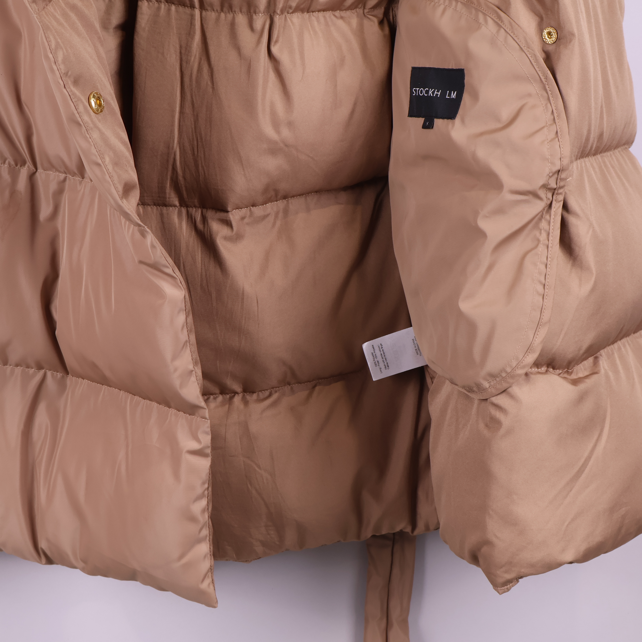 Den här quiltade jackan från Stockh LM har en snygg, beige ton och en vadderad känsla som ger både värme och stil. Den har en bred krage, knytskärp i midjan och är tillverkad i mjuk polyester. Lätt oversized passform för en relaxed vibe.
