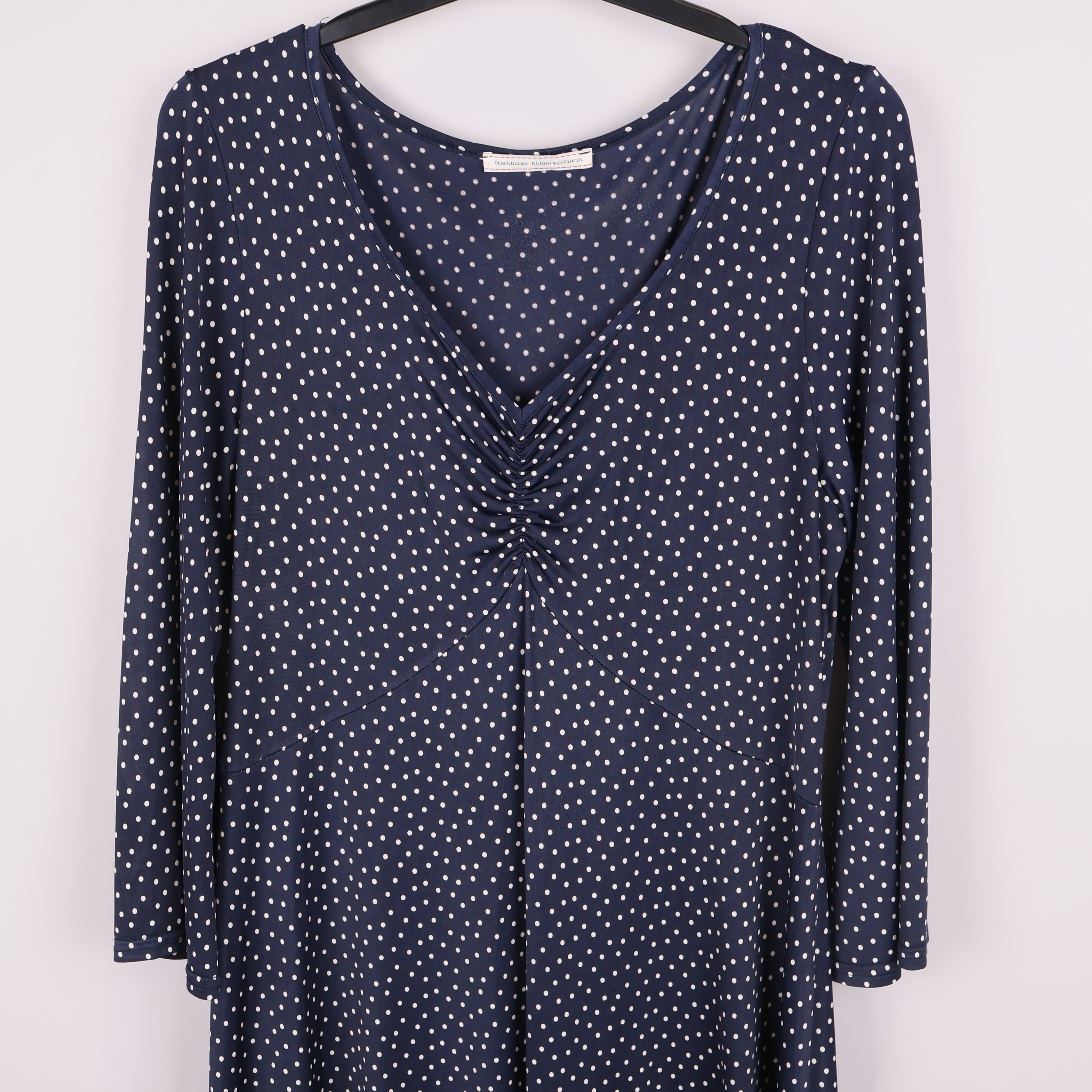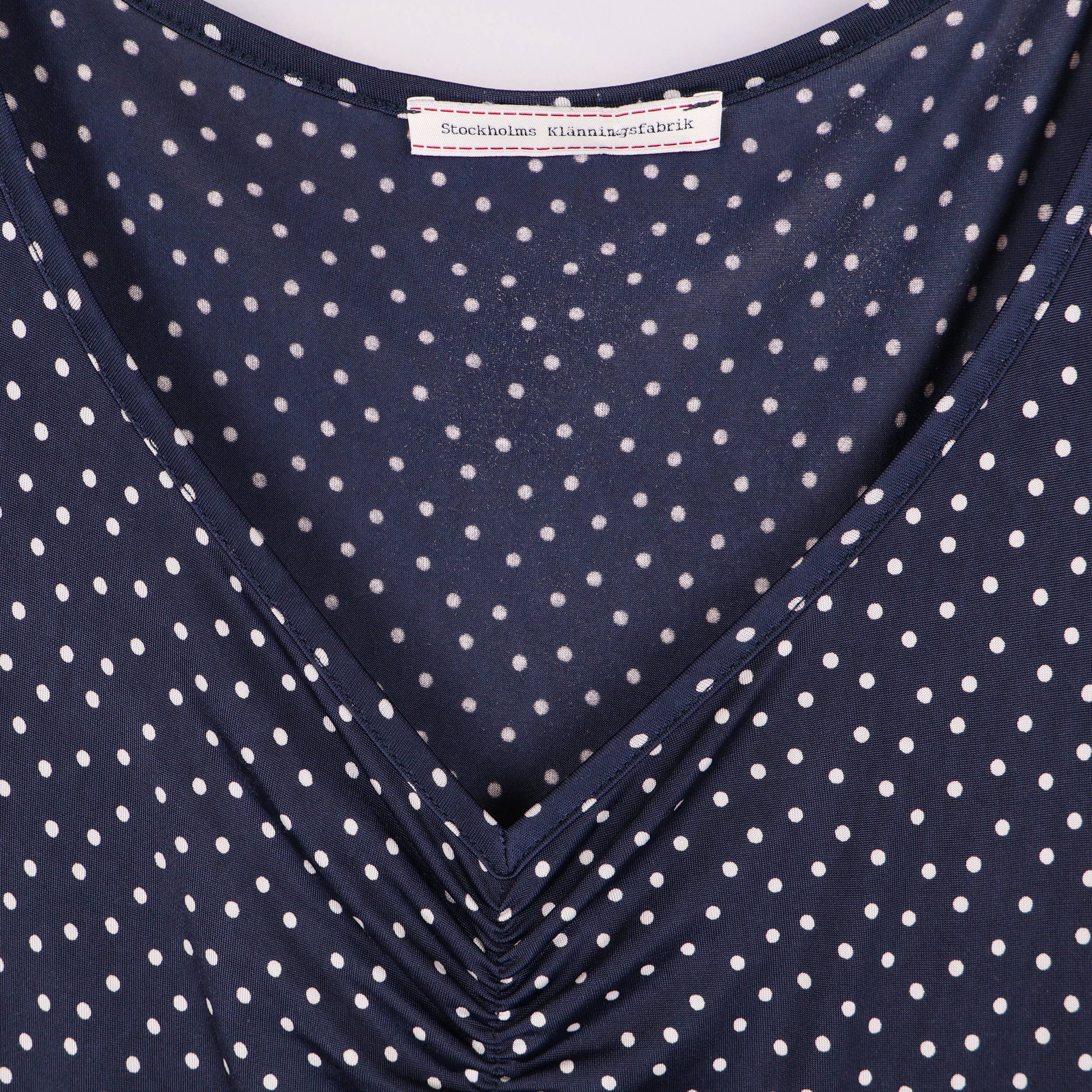 Stockholms Klänningsfabrik prickig midiklänning med v-ringning