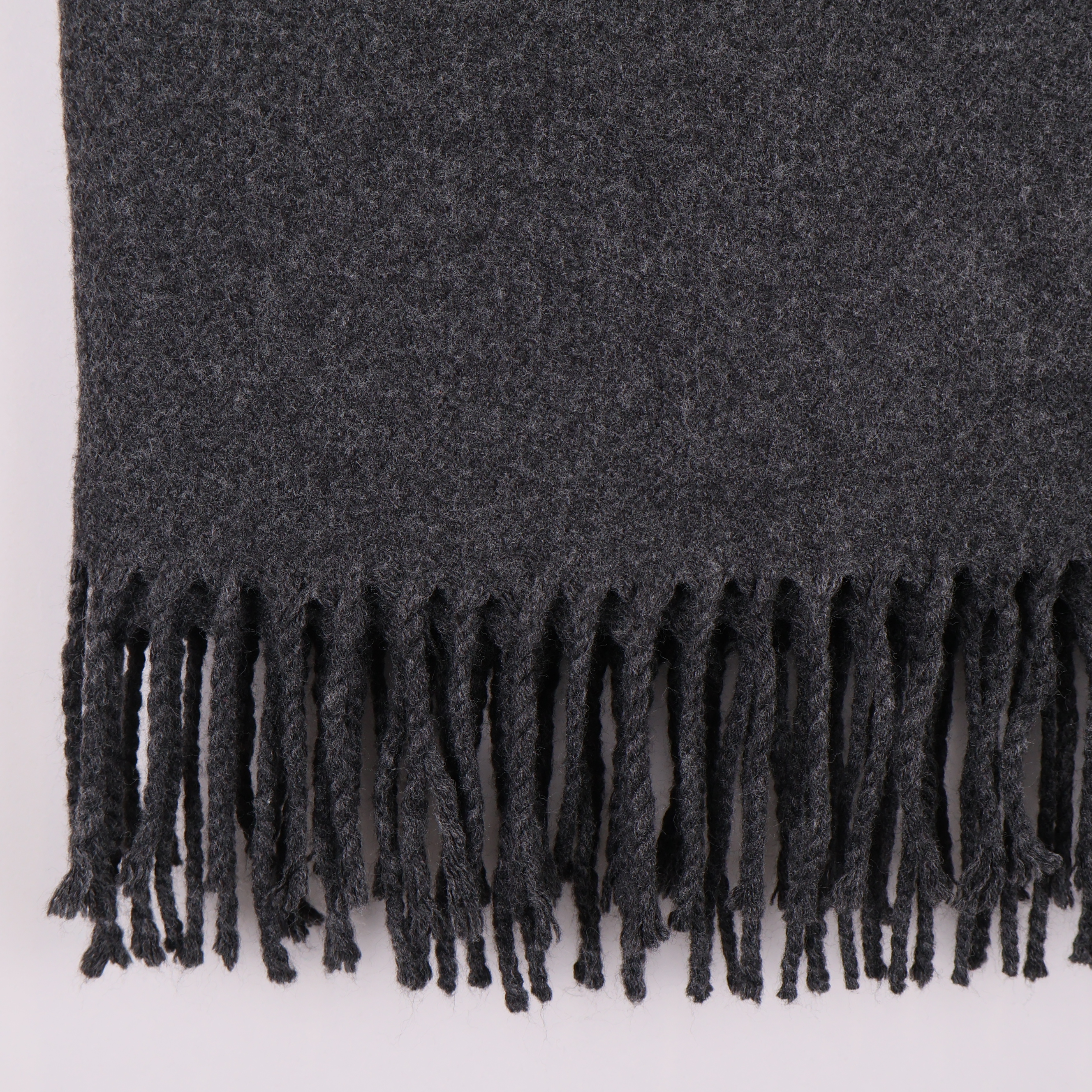 Mjuk och stilren halsduk i mörkgrå ton med långa dekorativa fransar. Perfekt att svepa runt halsen för extra värme och stil. En tidlös accessoar som enkelt kan matchas med olika outfits.