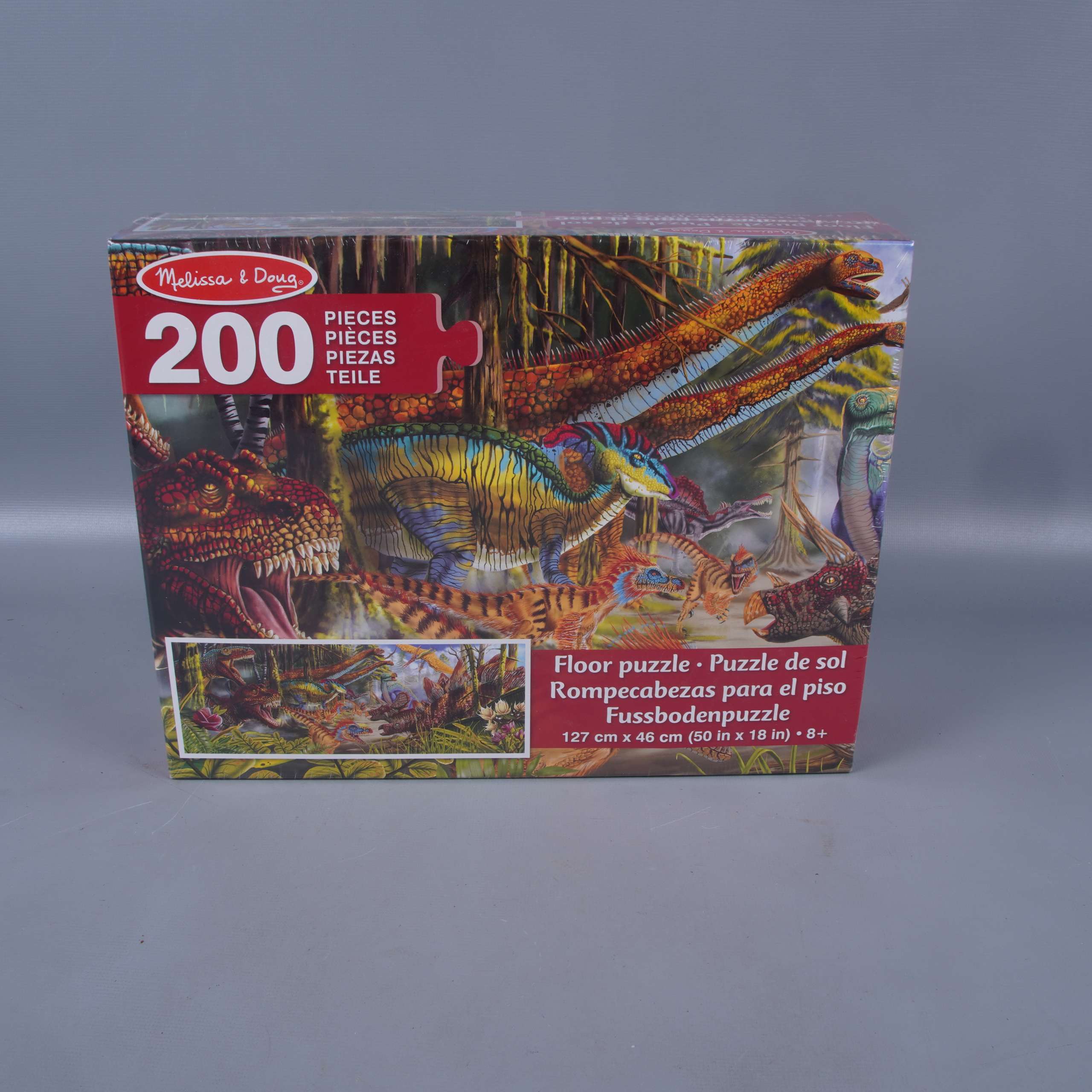 Melissa & Doug Stort golvpussel med dinosaurier 99 kr Product variation Antal st Beskrivning Imponerande golvpussel med färgstarka dinosaurier som motiv. Perfekt för dig som gillar större pussel. Visa all beskrivning Skick Nytt skick Produkten är som ny. Kan till och med ha orginalprislapp kvar eller ligga i originalförpackning. Läs mer om hur vi bedömer Number of pieces 200 Dimensions 127 cm * 46 cm Age 8+ Varumärke Melissa & Doug Produkten är unik och finns enbart som 1 st i lager. Fri frakt på alla köp över 990 kr. 14 dagars ångerrät.