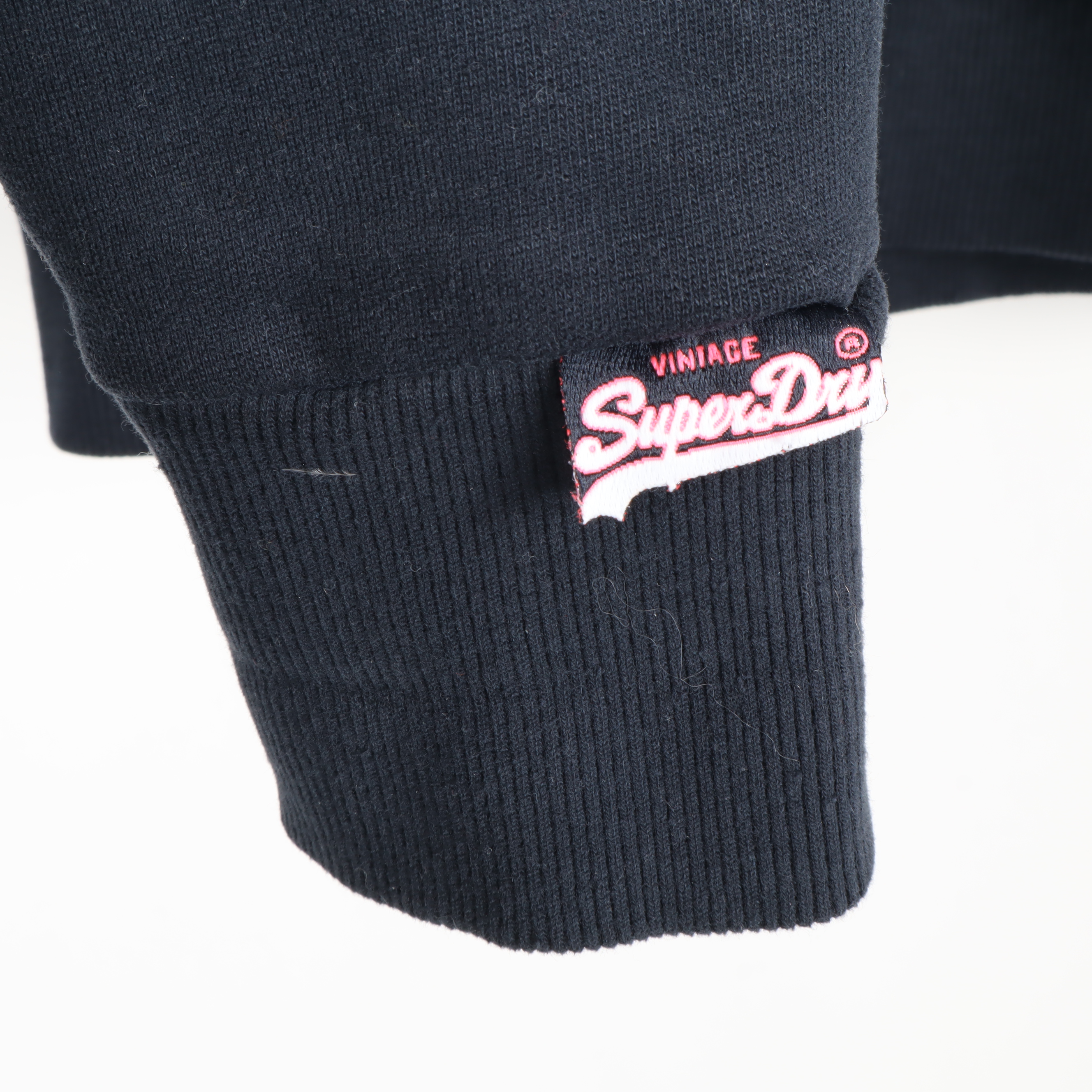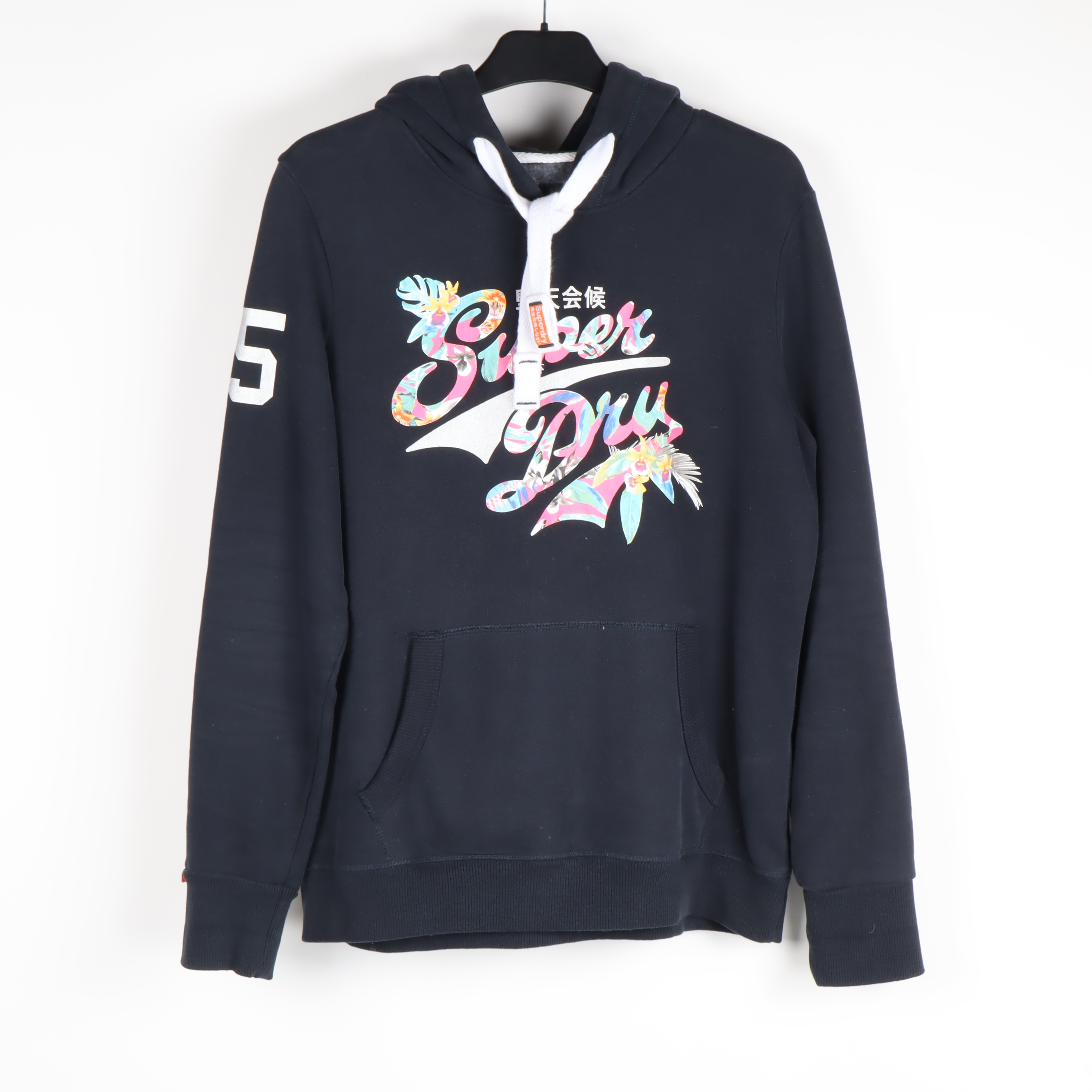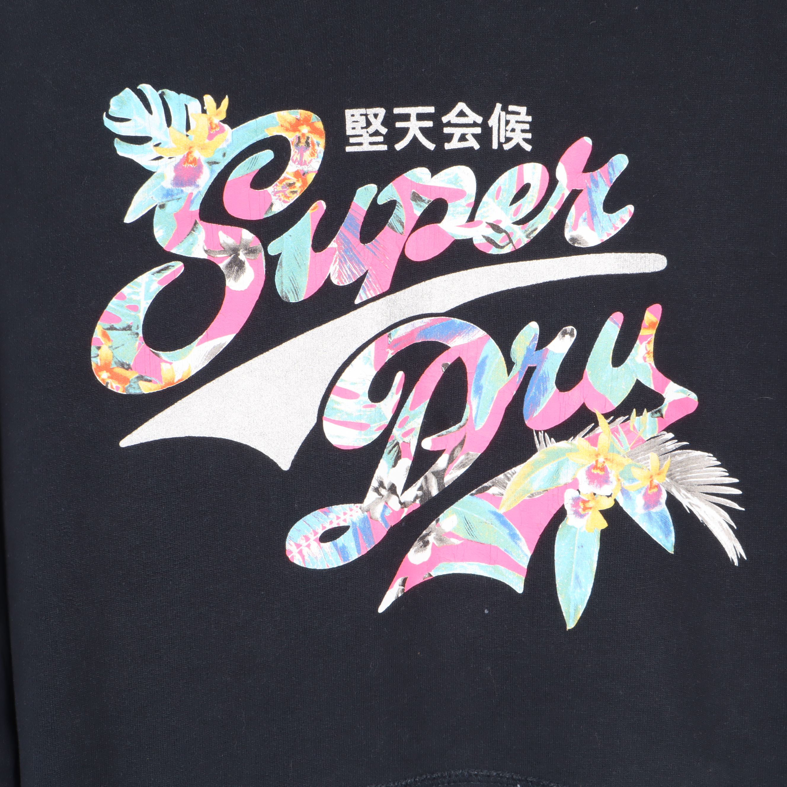 Denna hoodie från Superdry har en mörk bas och en lekfull, färgglad logotyp framtill. Ribbstickade muddar och nederkant ger en skön passform, och den rymliga huvan har kontrasterande vita snören.
