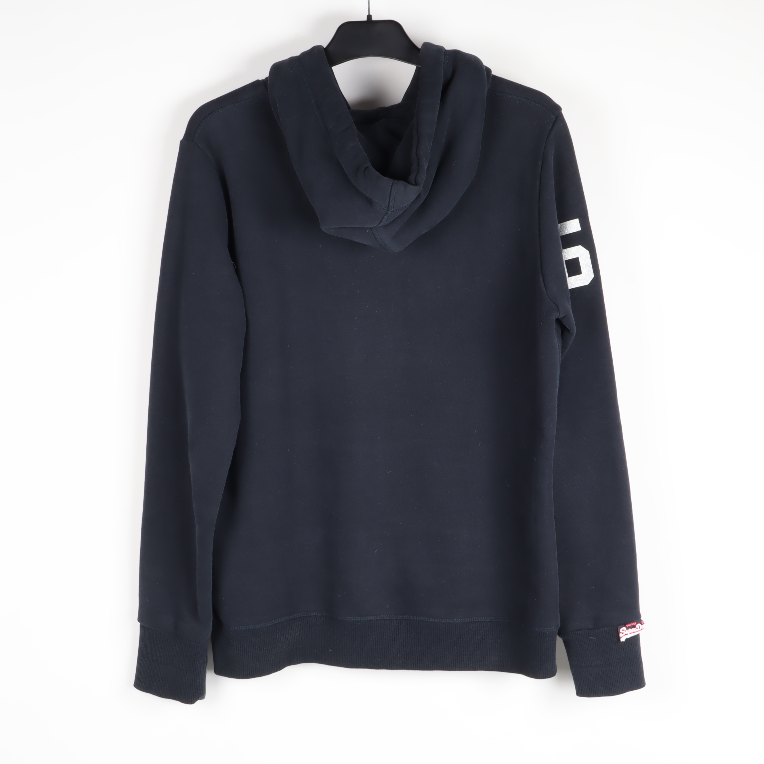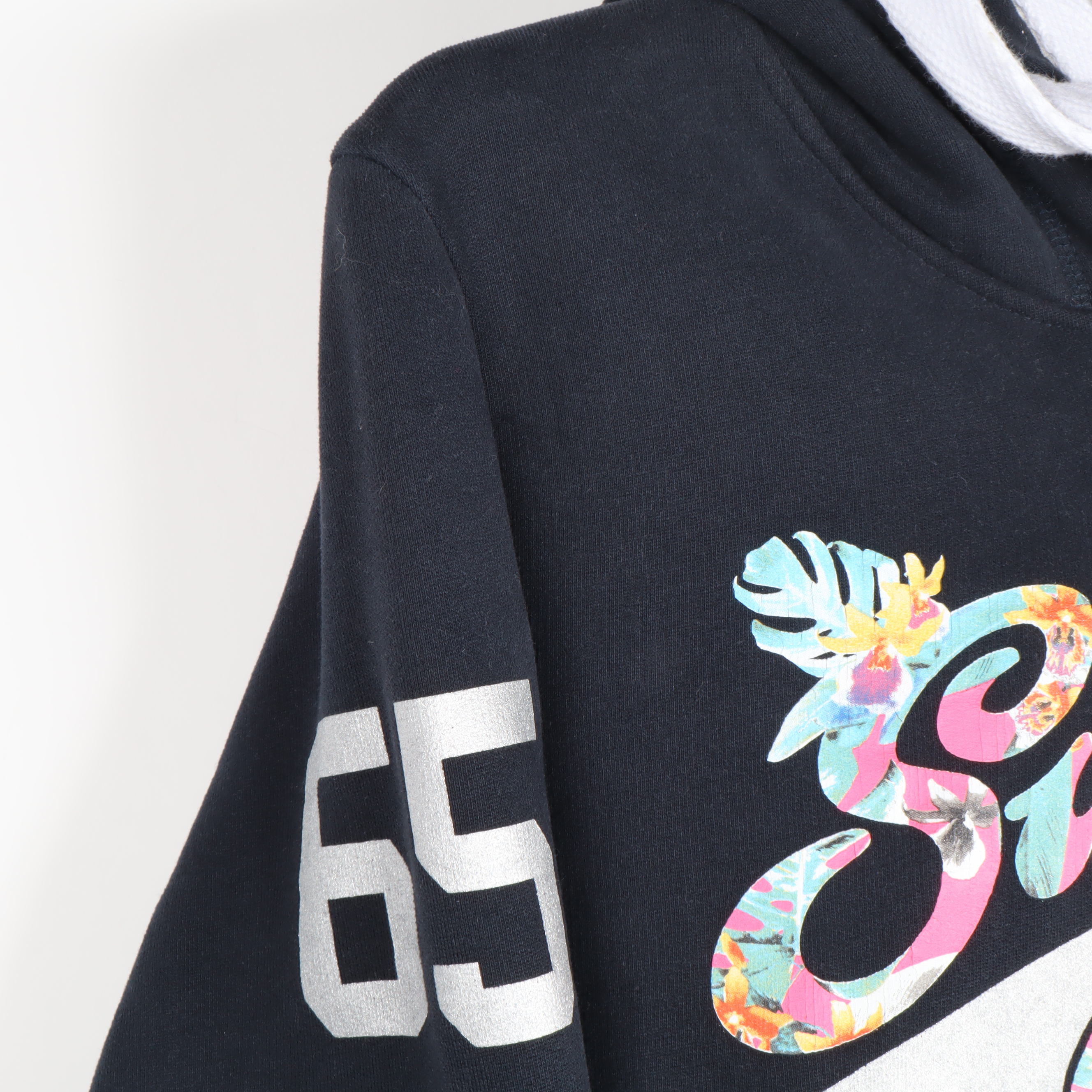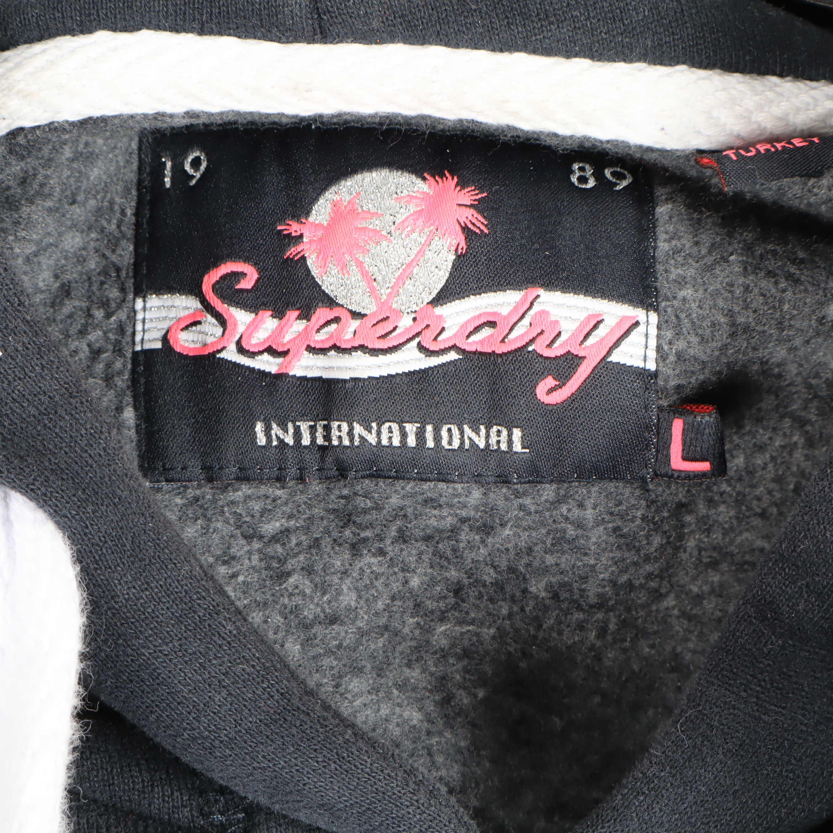 Denna hoodie från Superdry har en mörk bas och en lekfull, färgglad logotyp framtill. Ribbstickade muddar och nederkant ger en skön passform, och den rymliga huvan har kontrasterande vita snören.