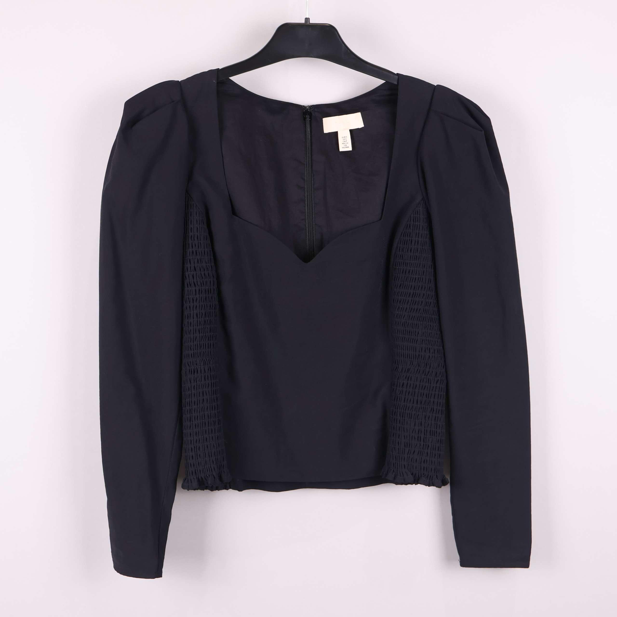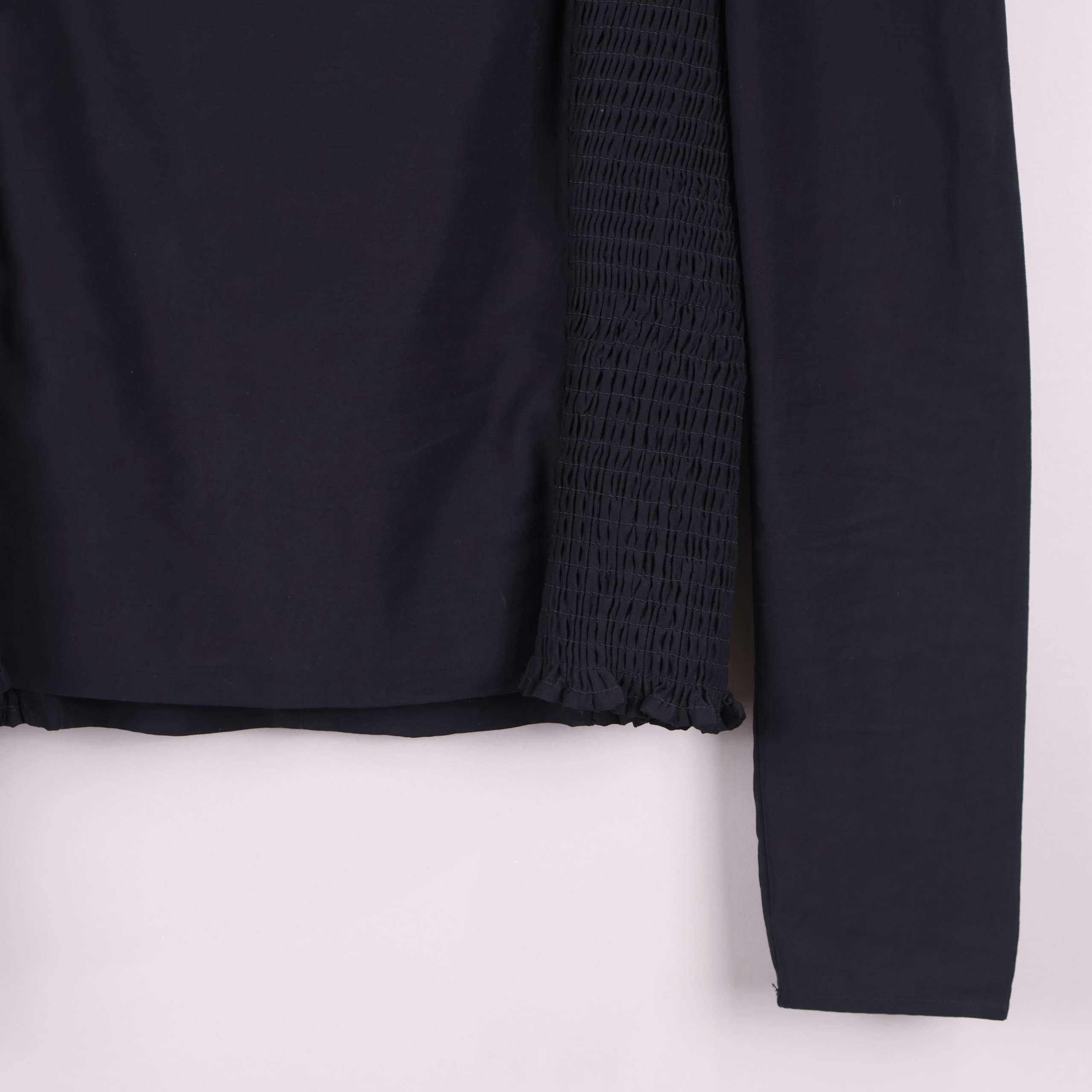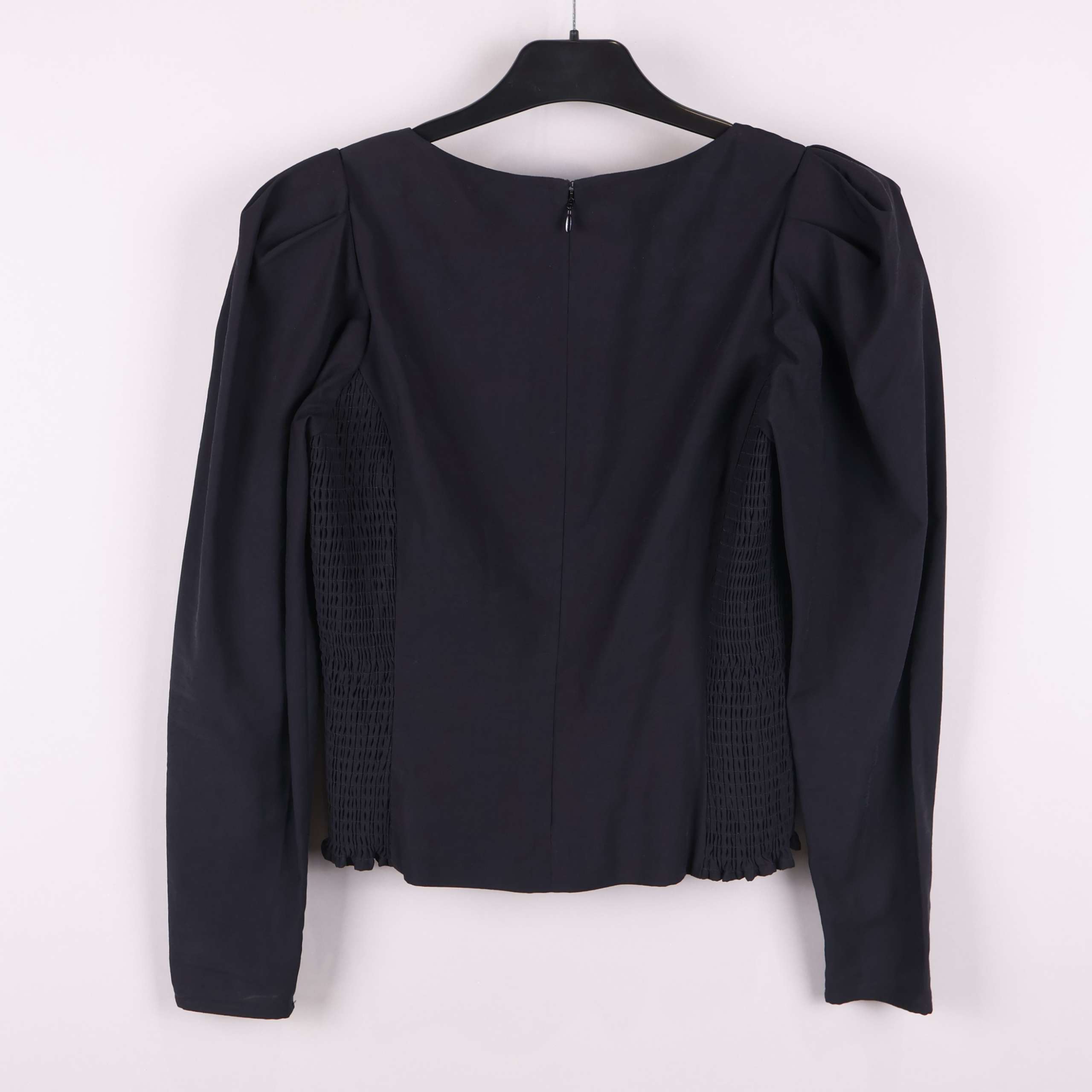 Elegant svart topp med långa ärmar och strukturdetaljer på sidorna. Denna topp har en smickrande passform som framhäver dina kurvor.