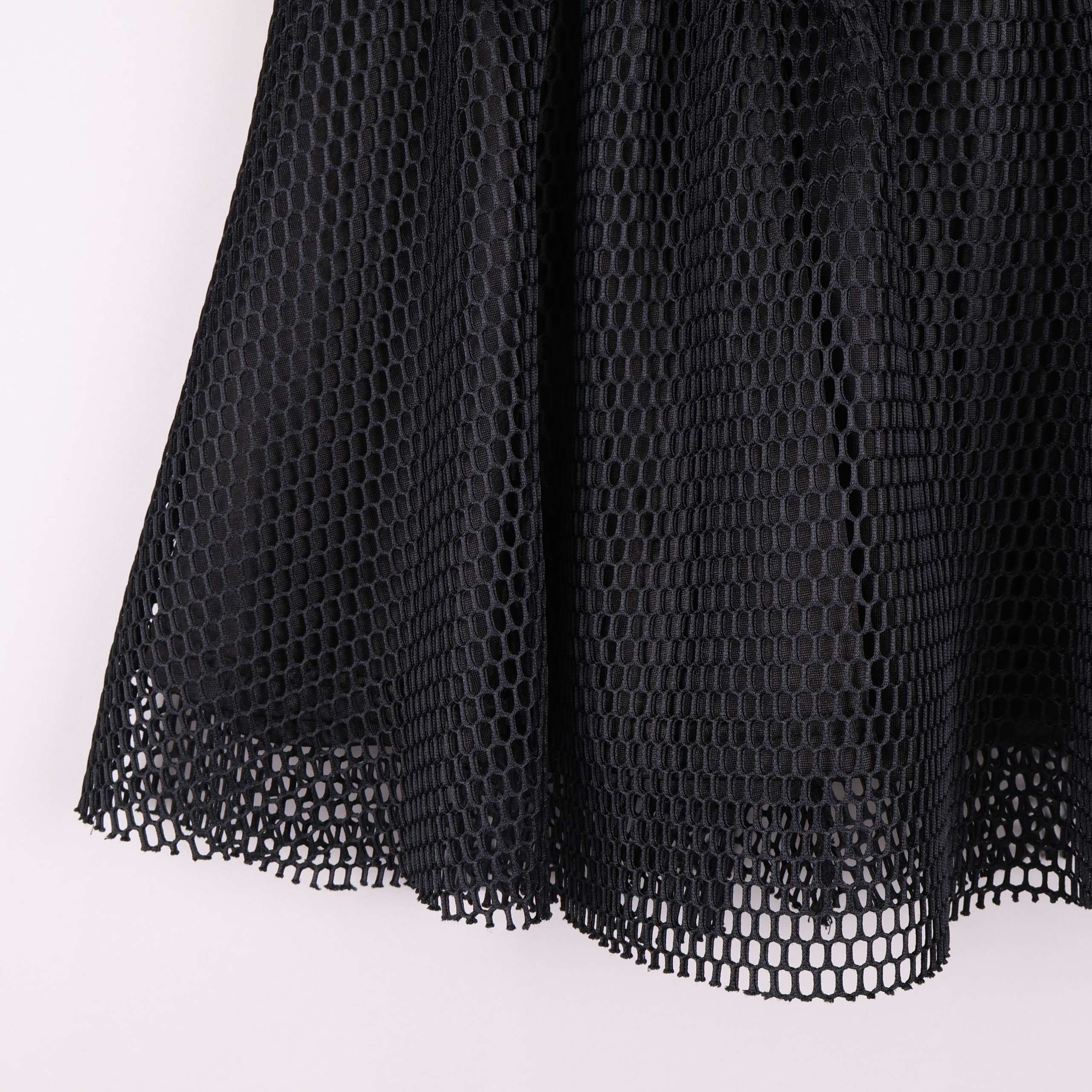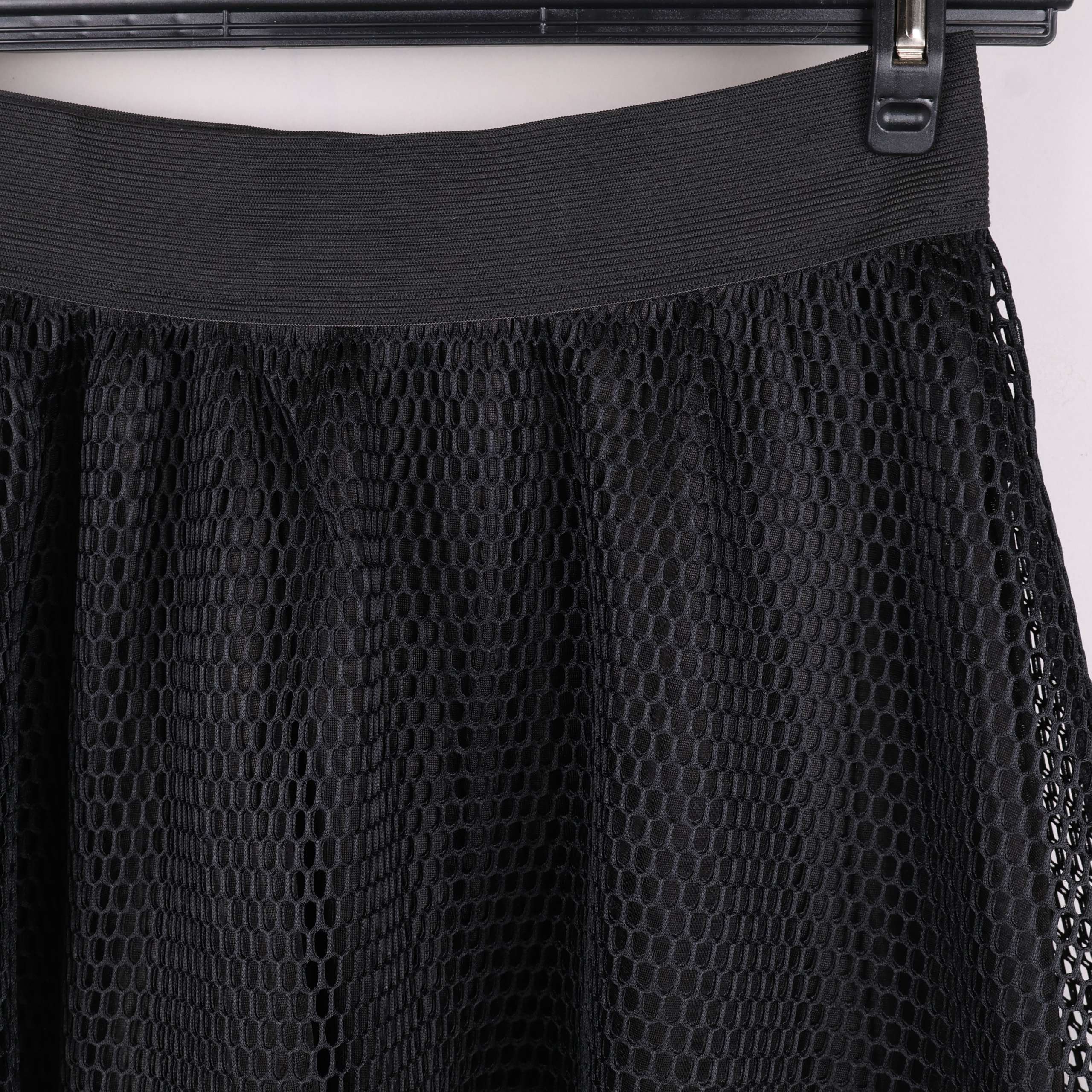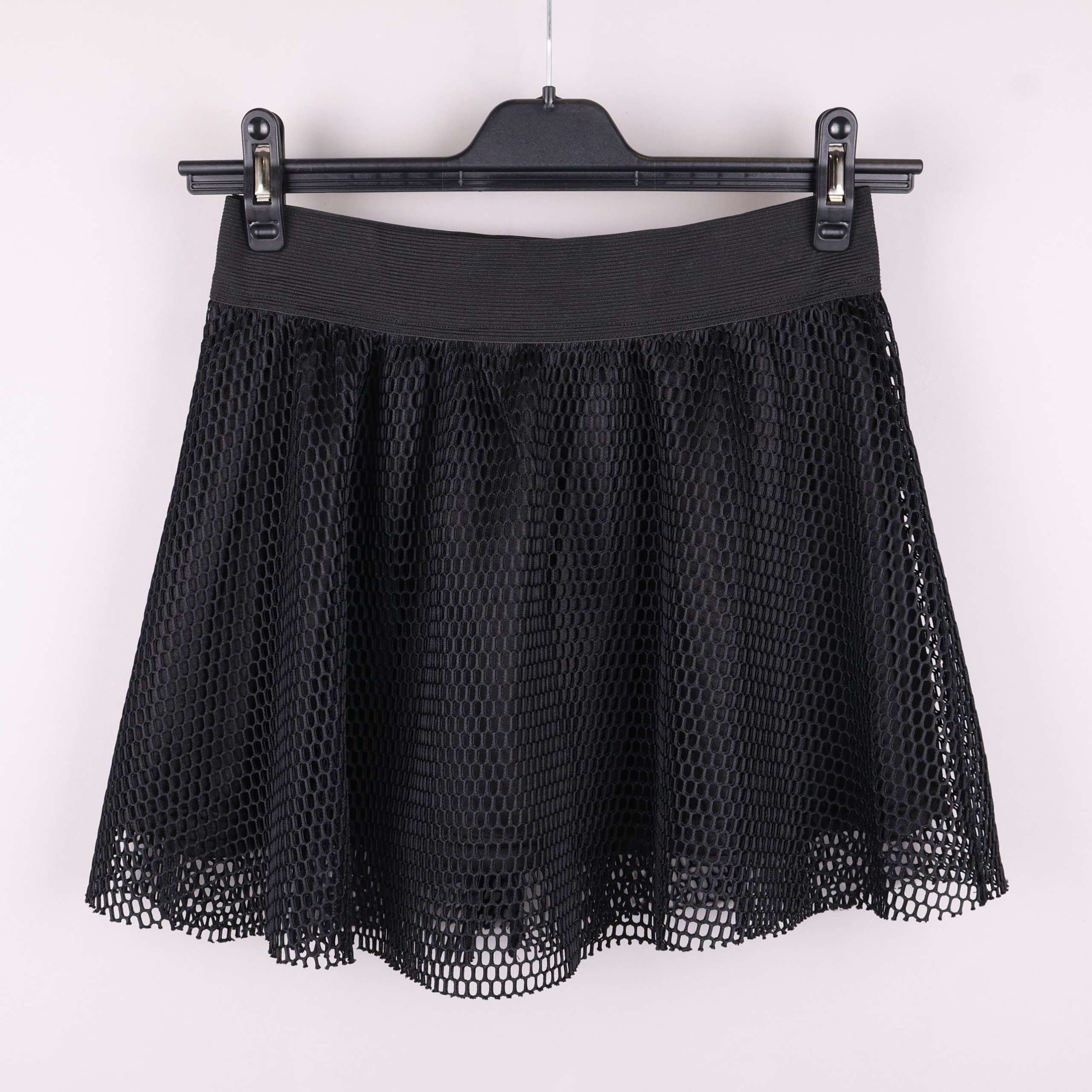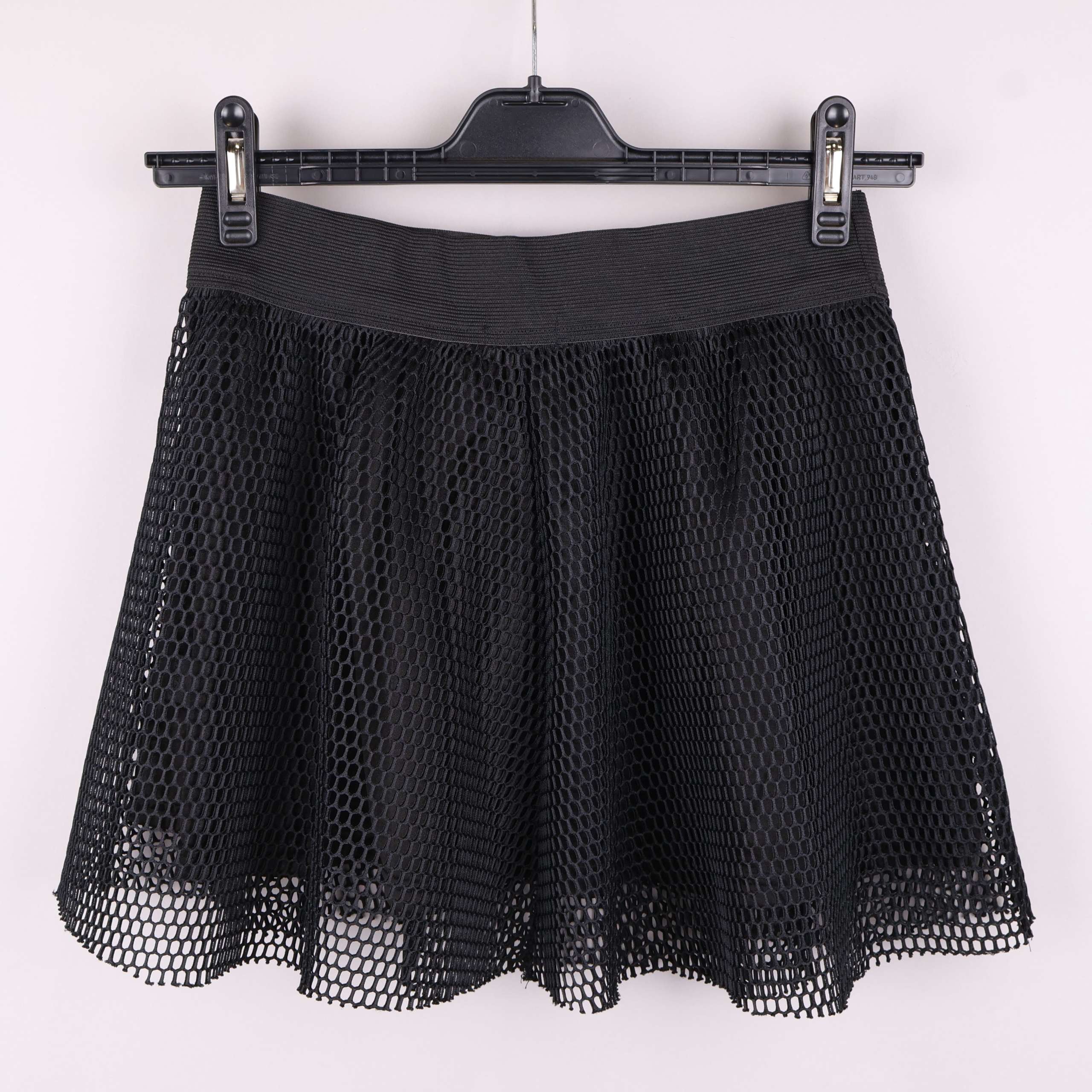 Denna korta kjol i svart har en modern nätstruktur med en bekväm elastisk midja. Perfekt för en stilren och chic look, denna kjol kan enkelt matchas med andra plagg för både avslappnade och formella tillfällen.