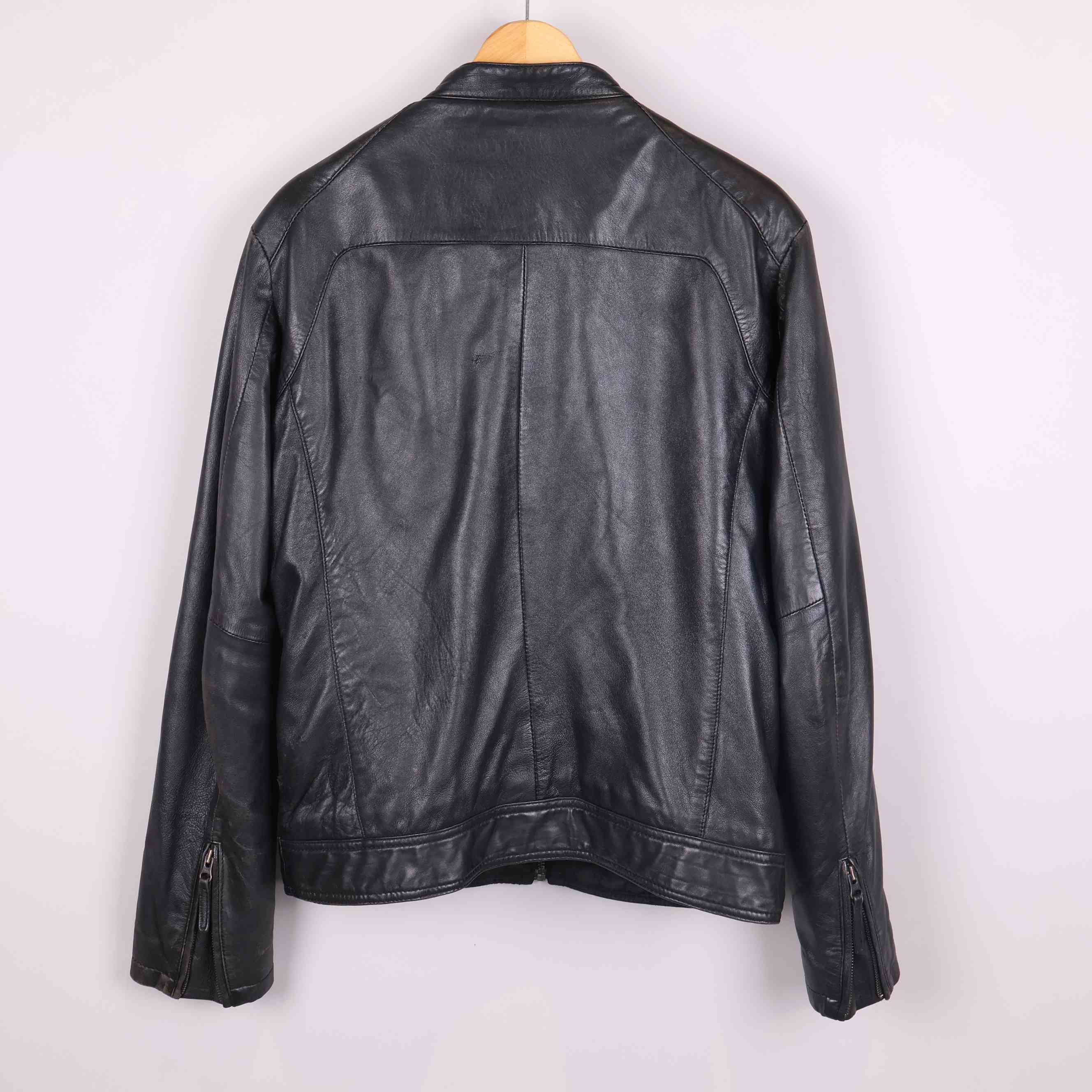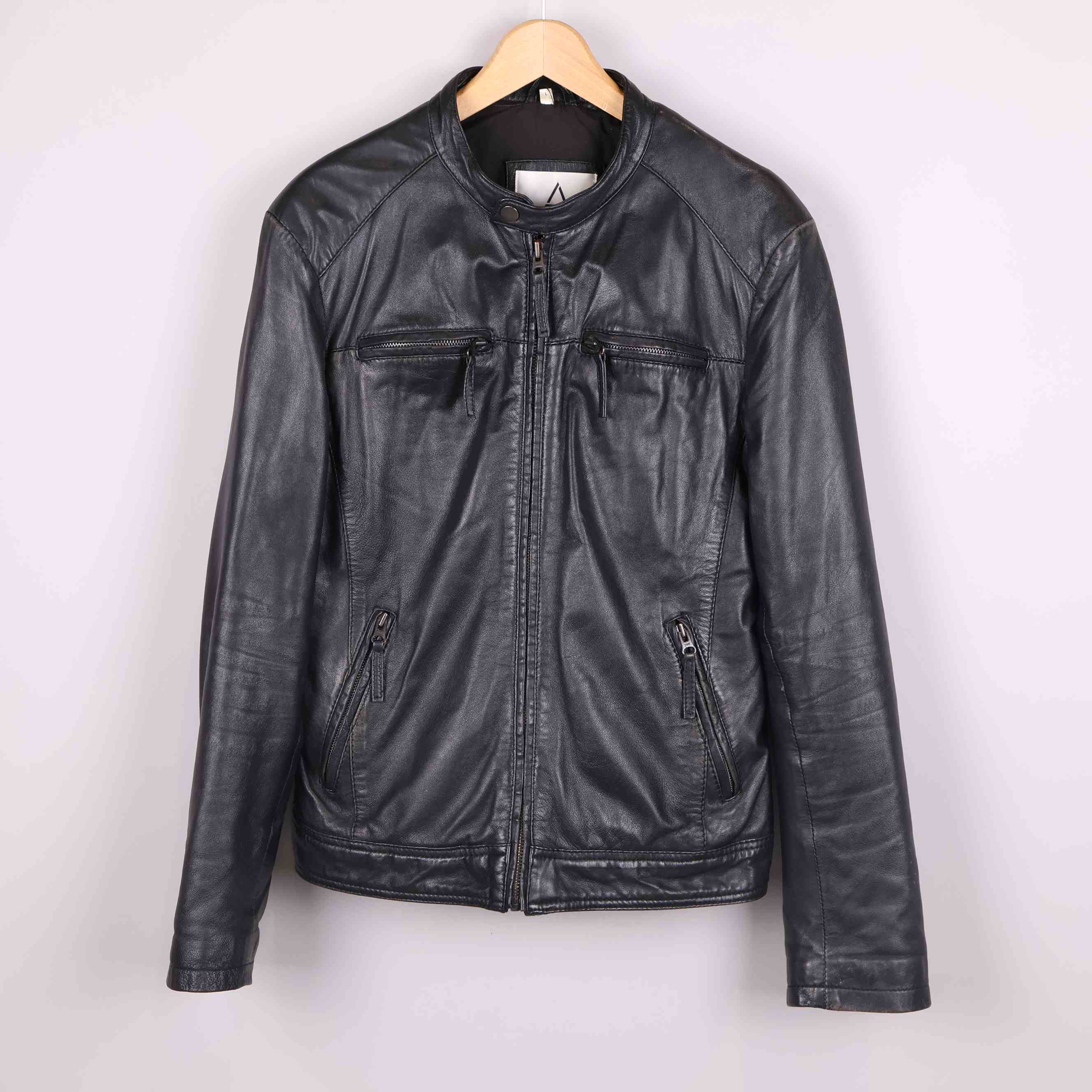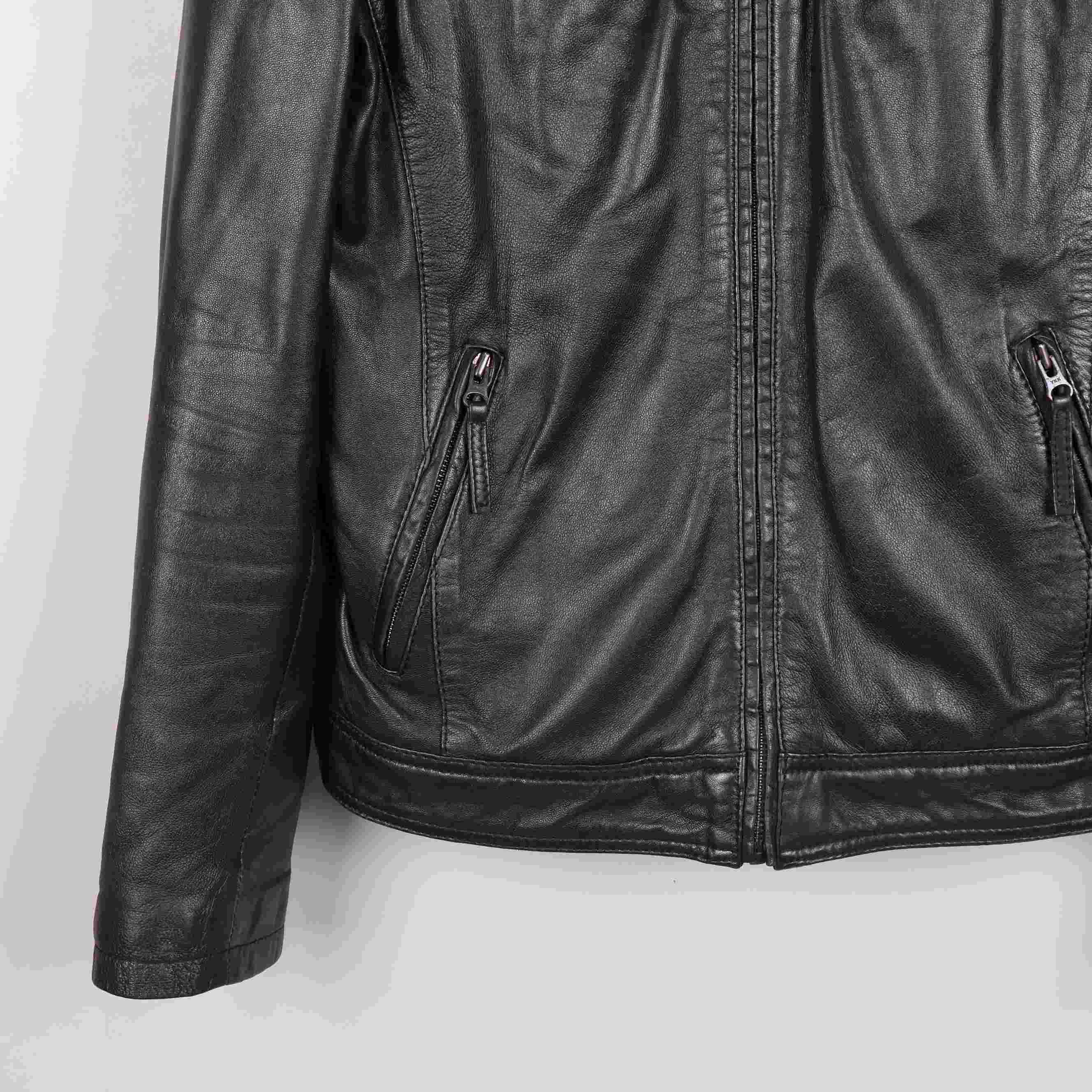 Stilren svart skinnjacka från Serge Pariente med hög krage, fyra dragkedjefickor framtill och något slimmad passform. Jackan har slät yta och diskreta sömdetaljer.