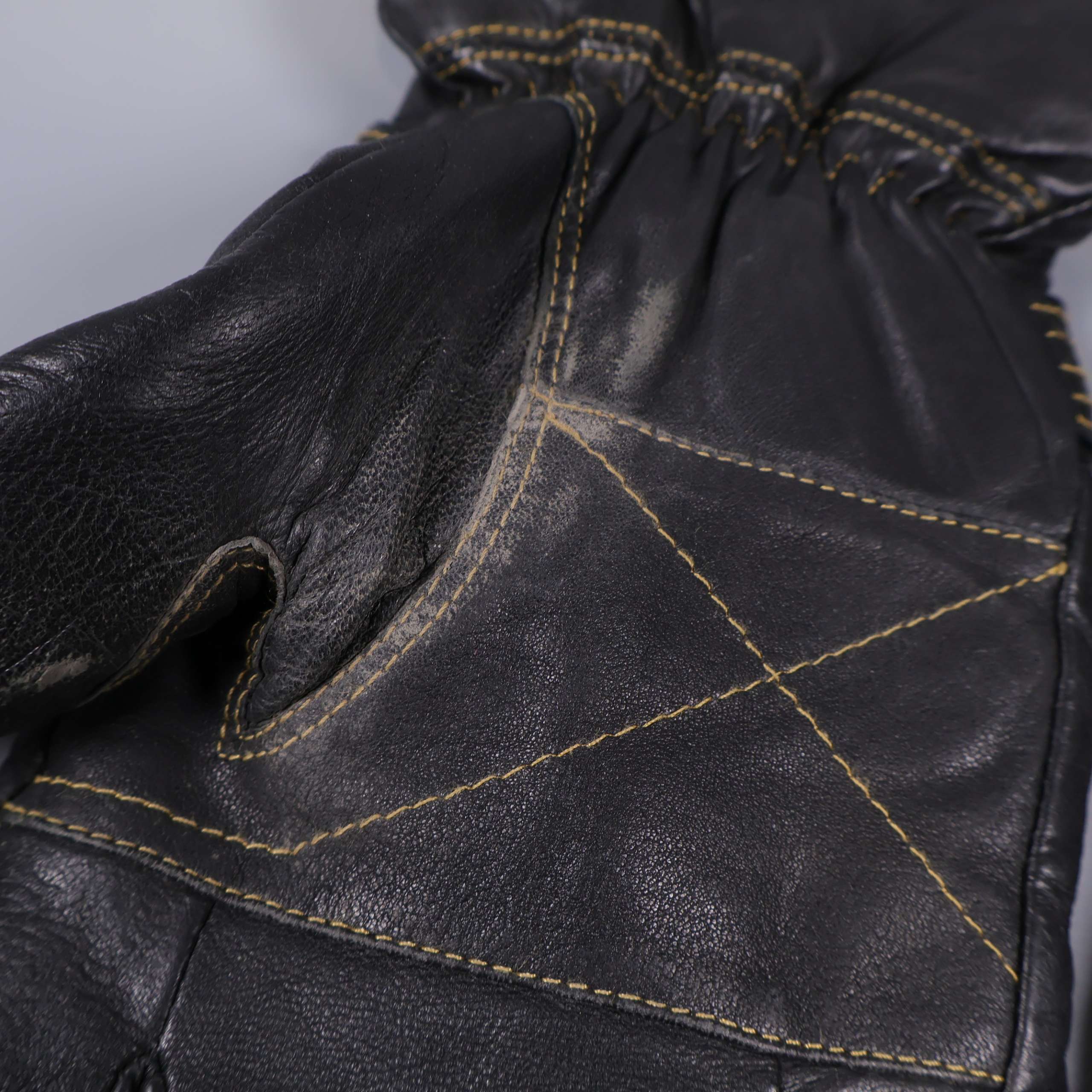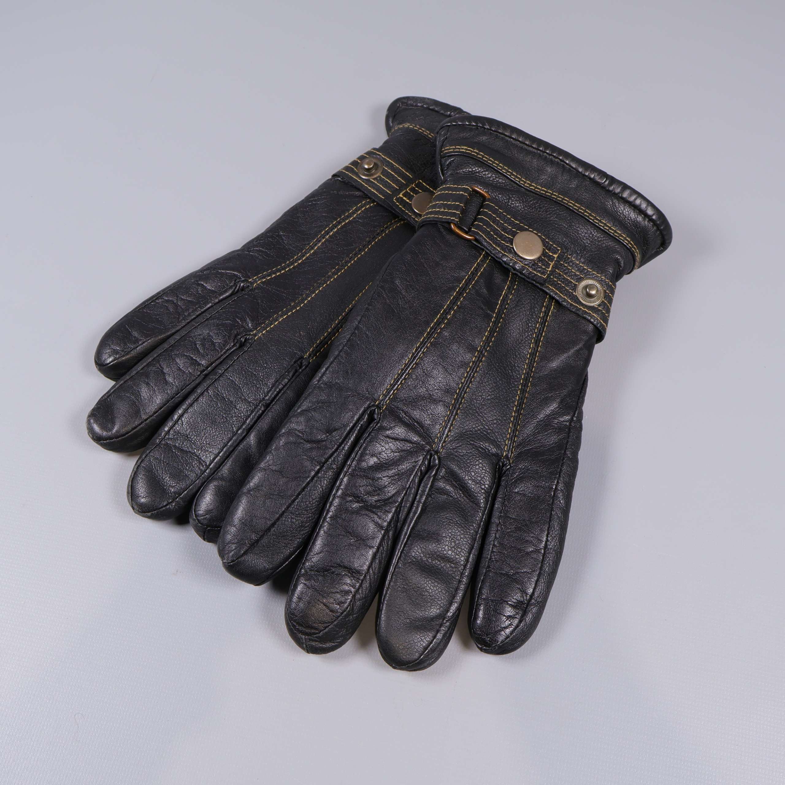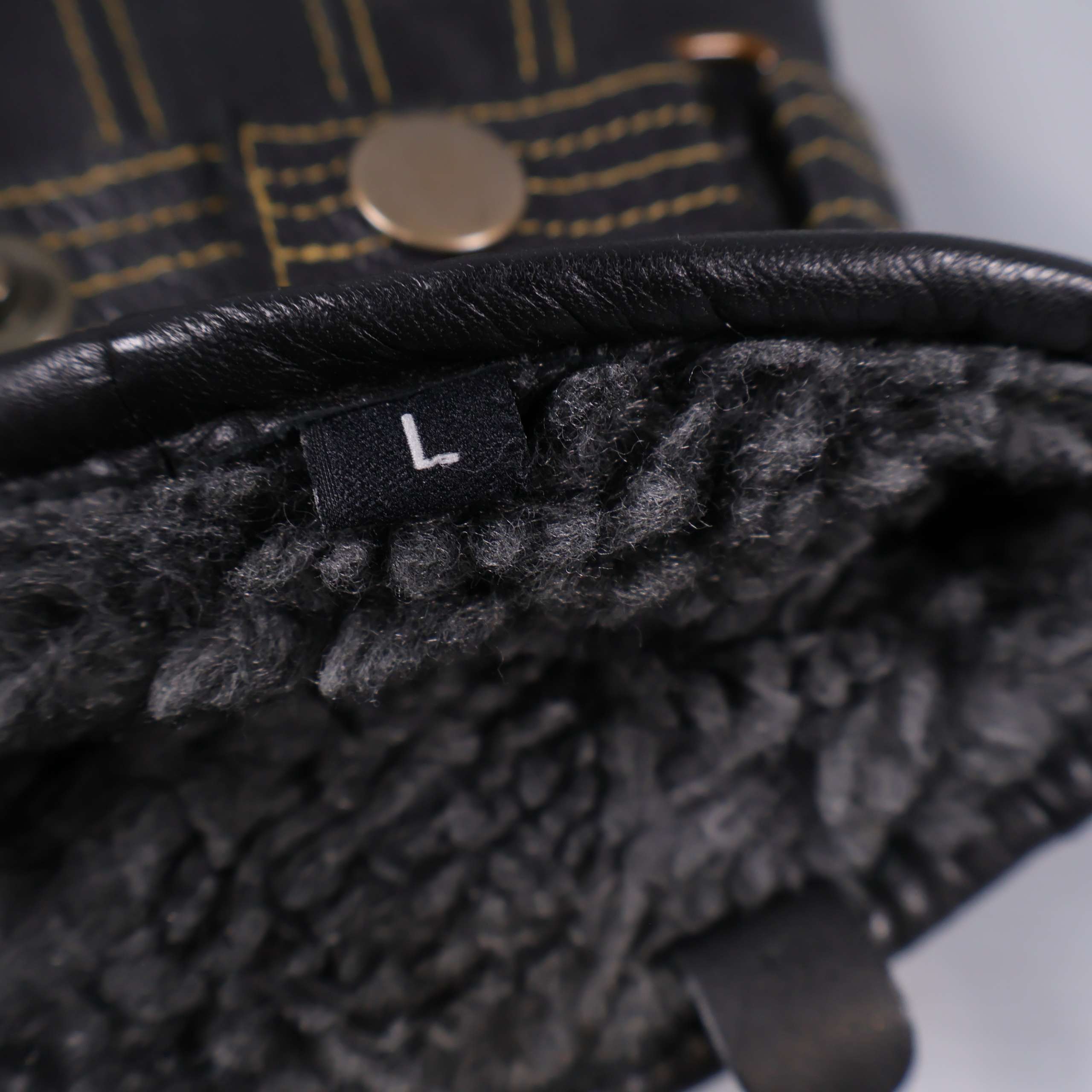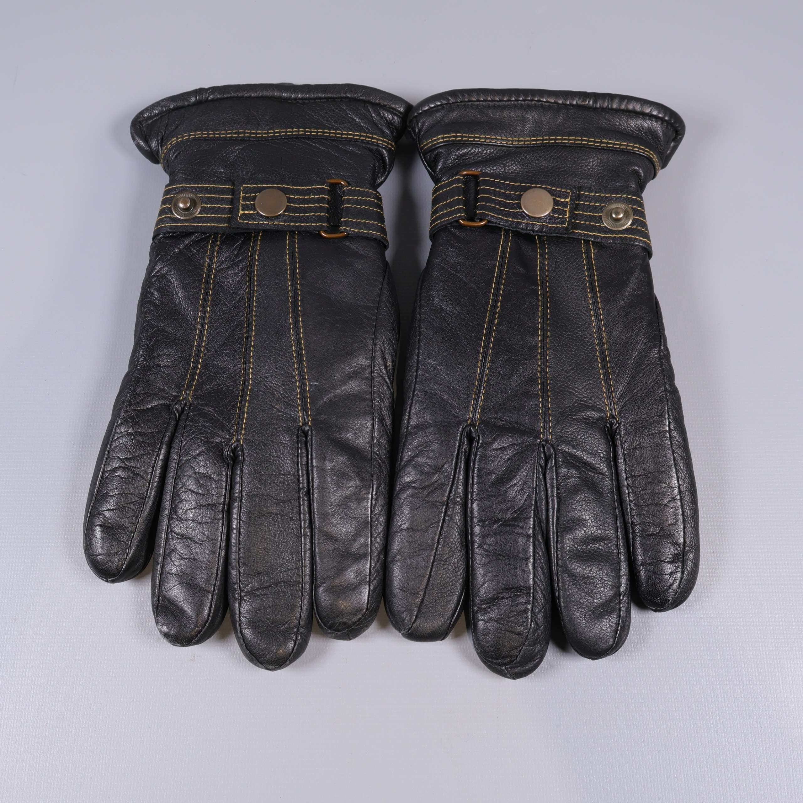 Bekväma handskar i svart med kontrasterande gul söm och dekorativa tryckknappar vid handleden. Utsidan i mjukt material och insidan fodrad med mjuk, grå fuskpäls för extra värme. Elastiskt parti för skön passform och säker känsla runt handleden. Perfekt accessoar med detaljer som ger ett snyggt och modernt intryck.